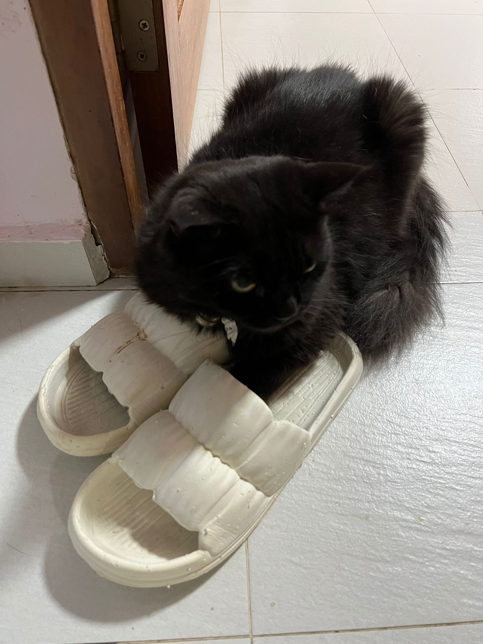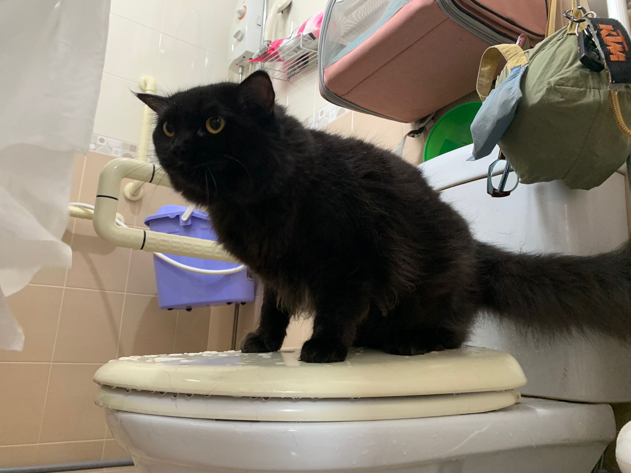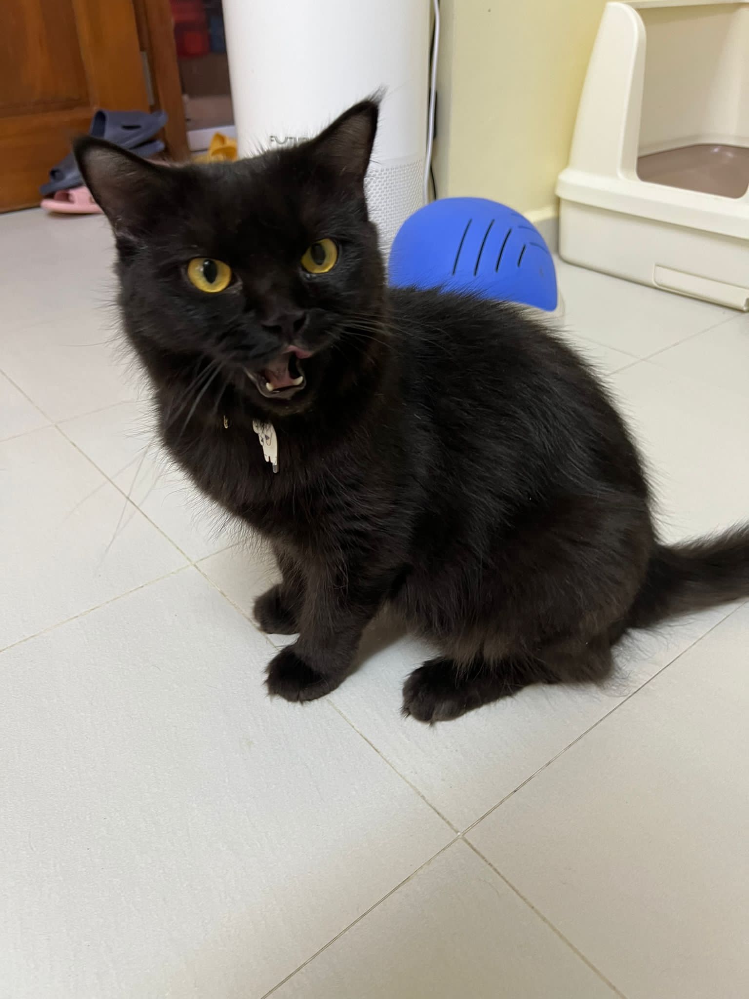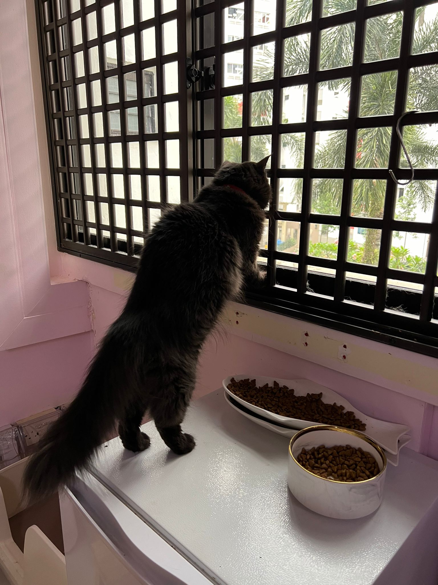 Morning; start to meow more recently. I know she can come out la. But wait till groom finish first.
