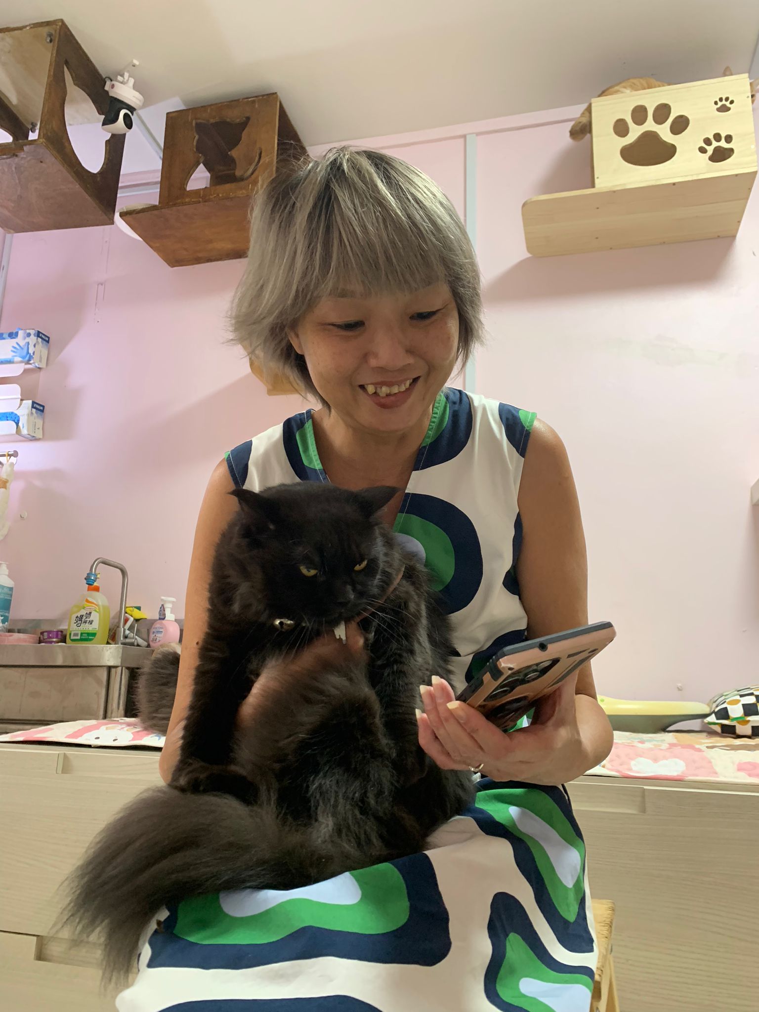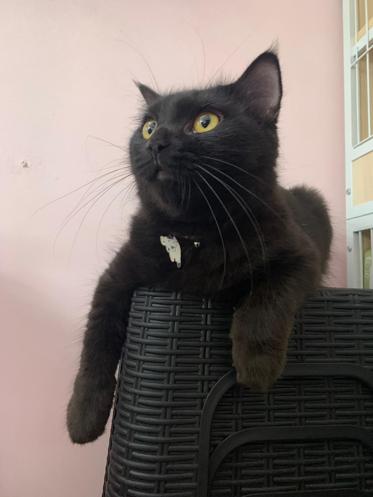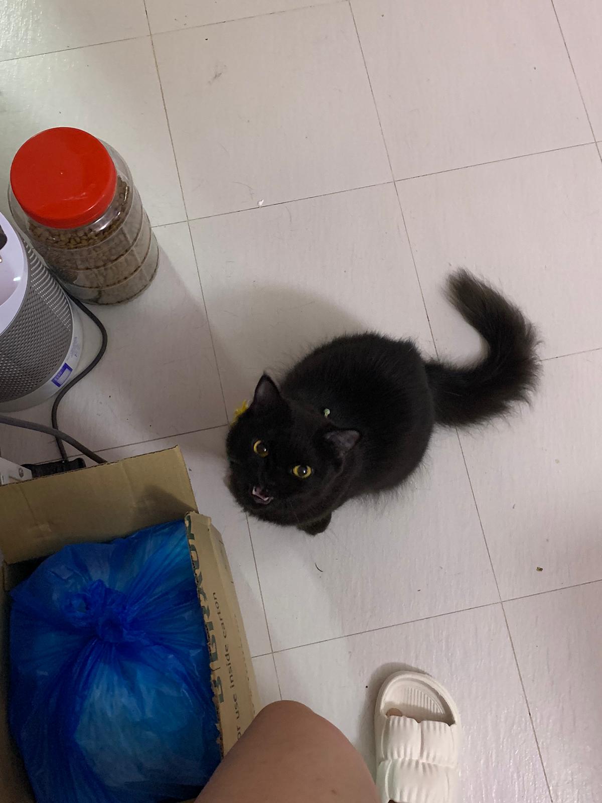 “Haha good that she got many fans, she is a princess 👑 She is playful, jump high and low, very sticky to us, will follow us everywhere so her nickname is 跟屁虫.