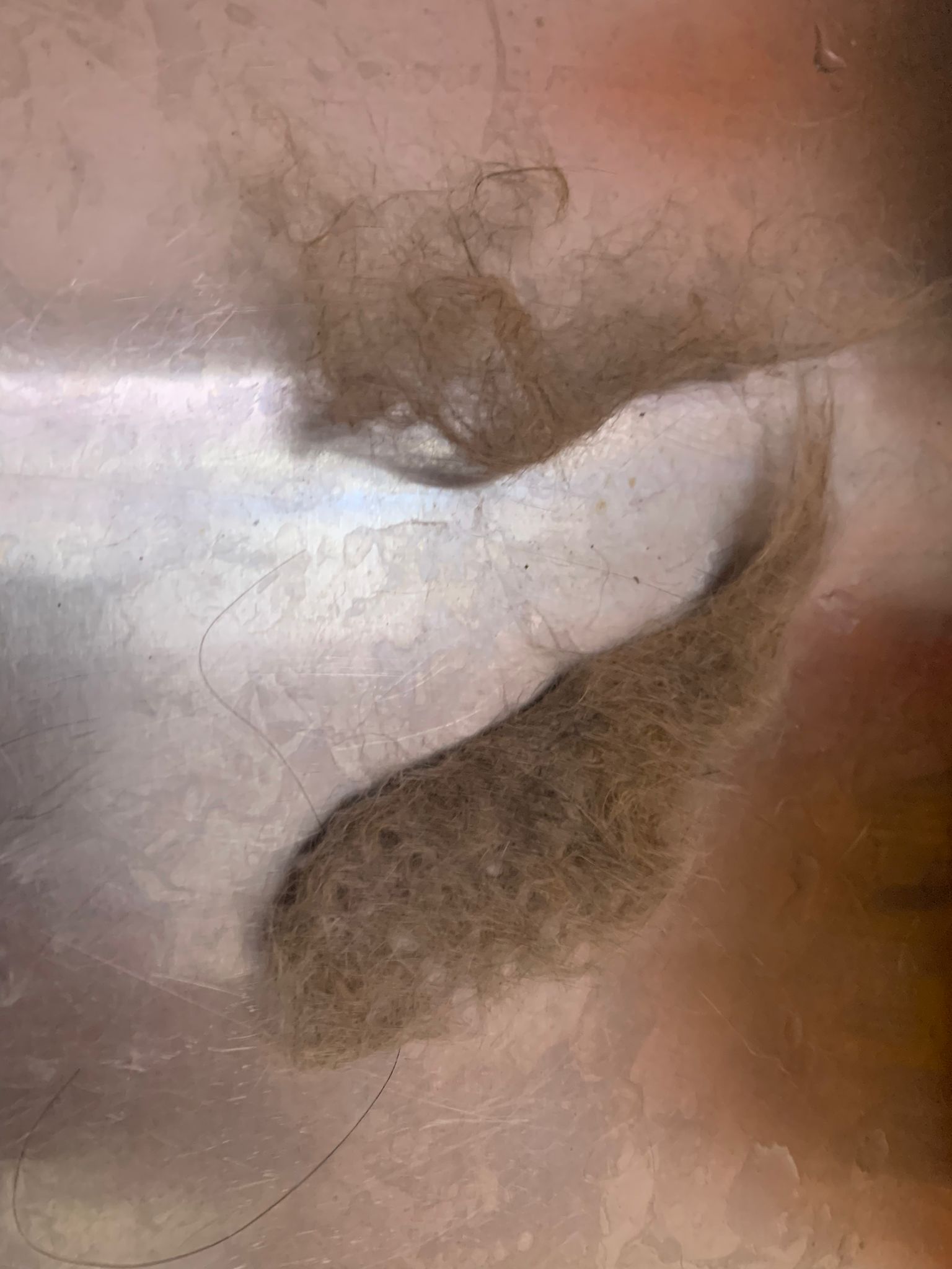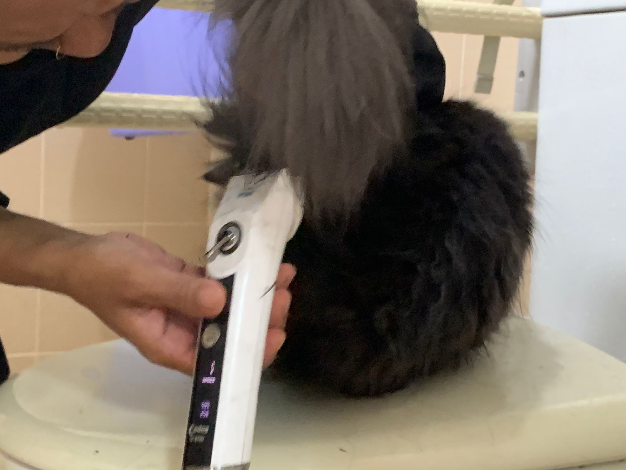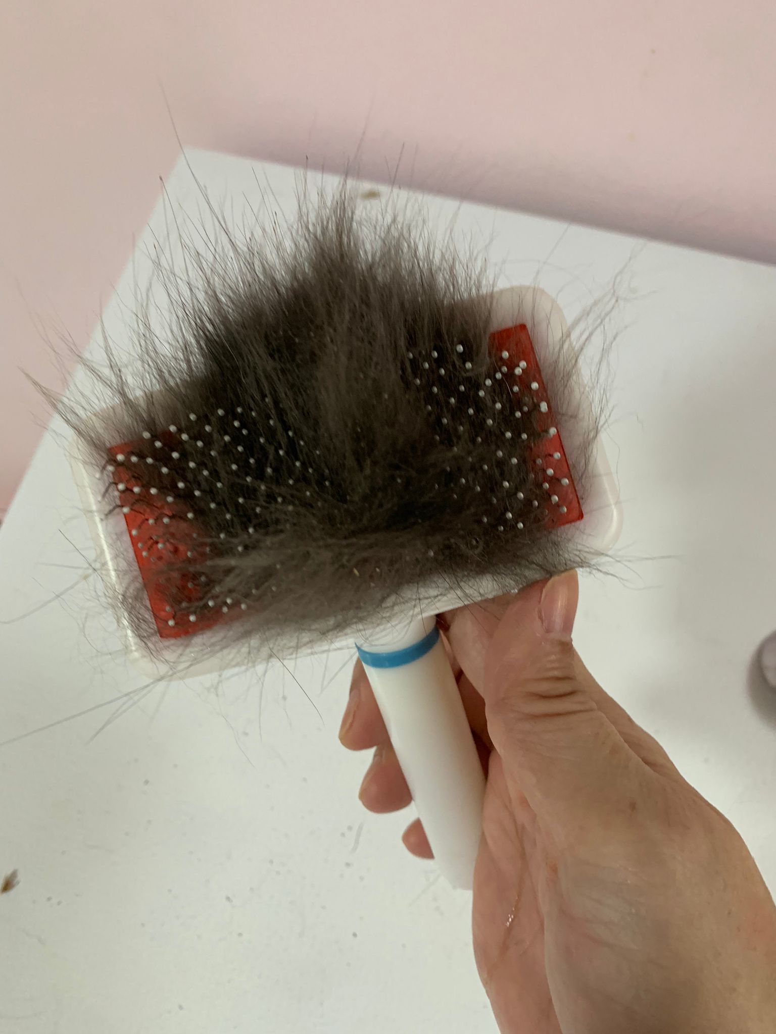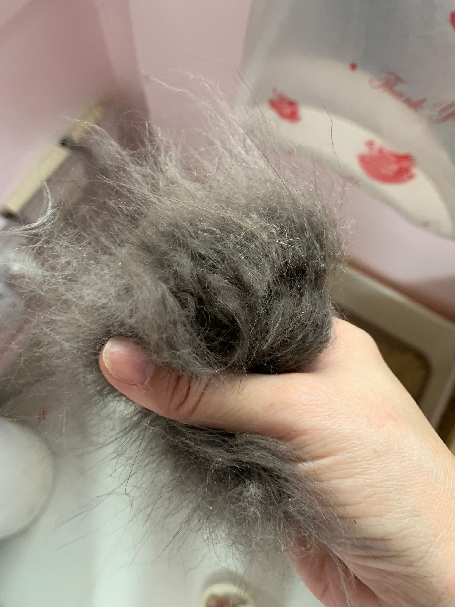 1.04pm: still blowing dry – comb out the dead fur