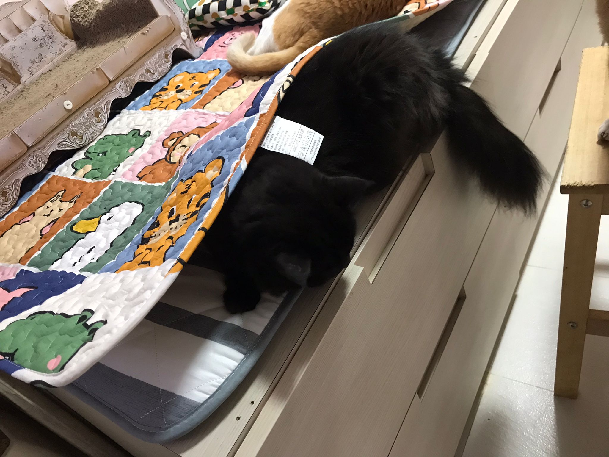 315-6pm: I’m packing 猫房 further to accommodate the new 2 cabinets coming …, I shifted the big big platform bed and packing the cage under hers and she keep pulling my hair siak. Get scolding n beating still do it. I should be happy. Cos 1) she playful type and main thing is I whack her le she still not scare of me … ha means she is slowly learning stuff from 猫房 oldies and jiejie gorgor. She will know I’m their ah mao.