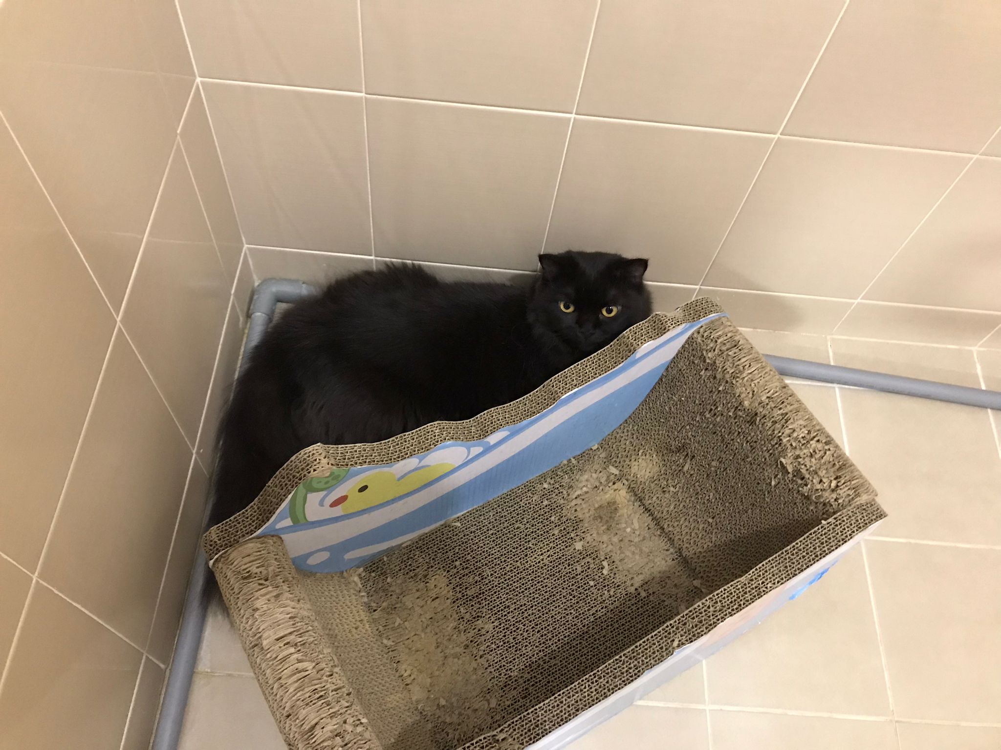 Found her in drain when they can’t find her. Ok w touch. No aggression. Young cat. Checked teeth. Less than 1.5yr old. Female un spayed for sure. No ear tipped. Scare she pregnant here. Sigh. Thought of cola. Sigh. What help? Sigh. My iso cage at 5G is not ready also. 5G in a mess. Sigh. Sigh sighhhhhhhhh