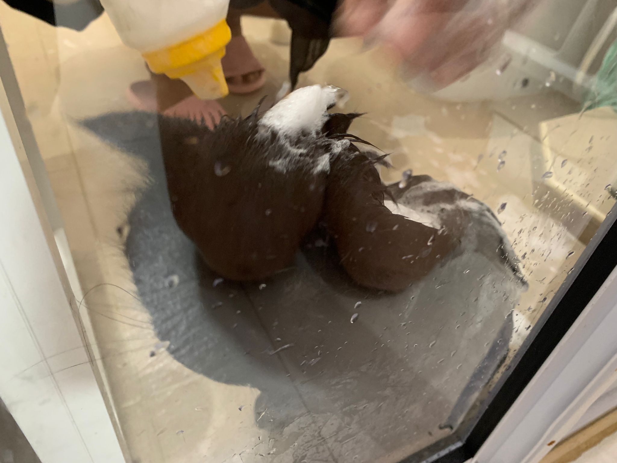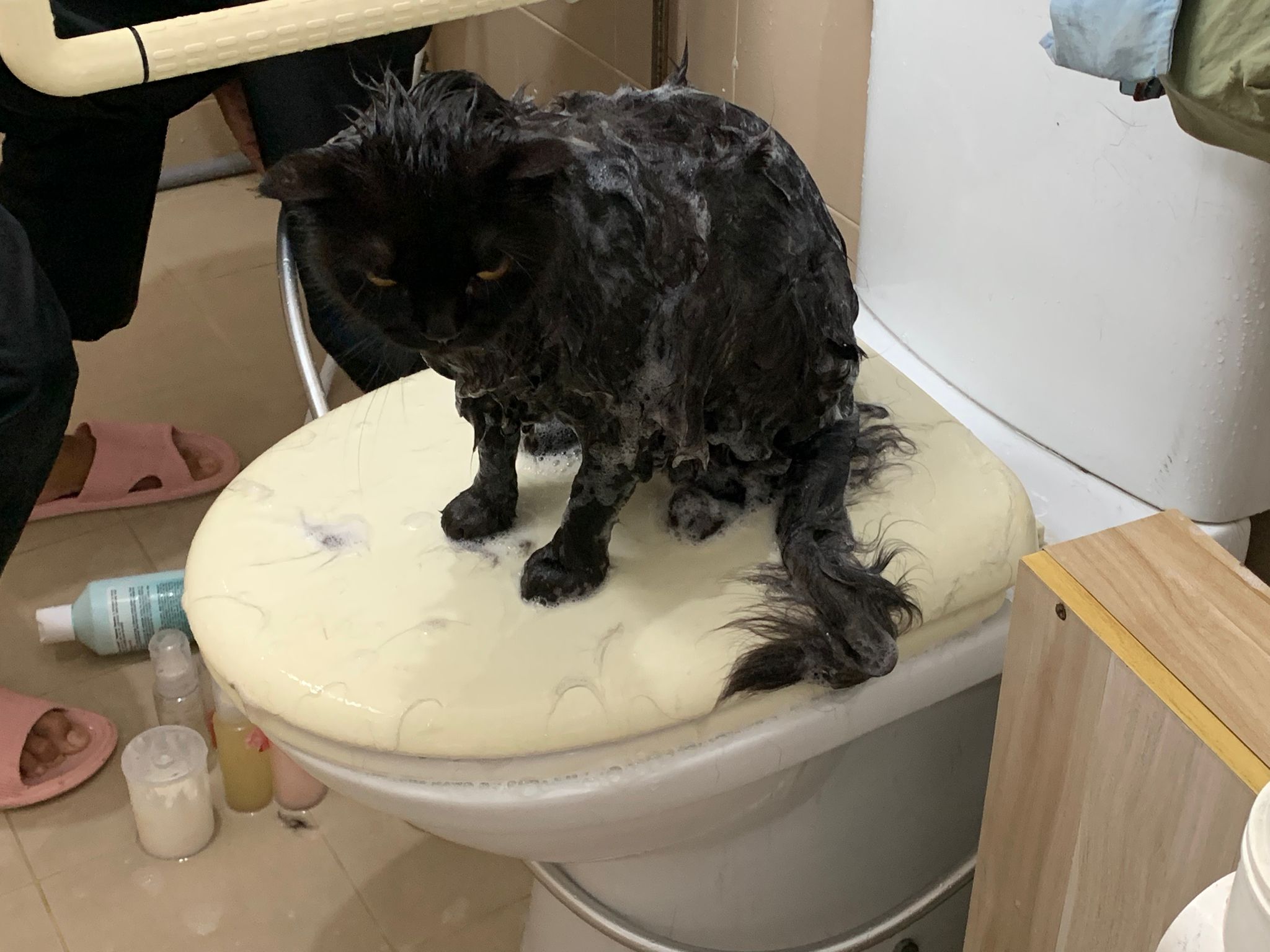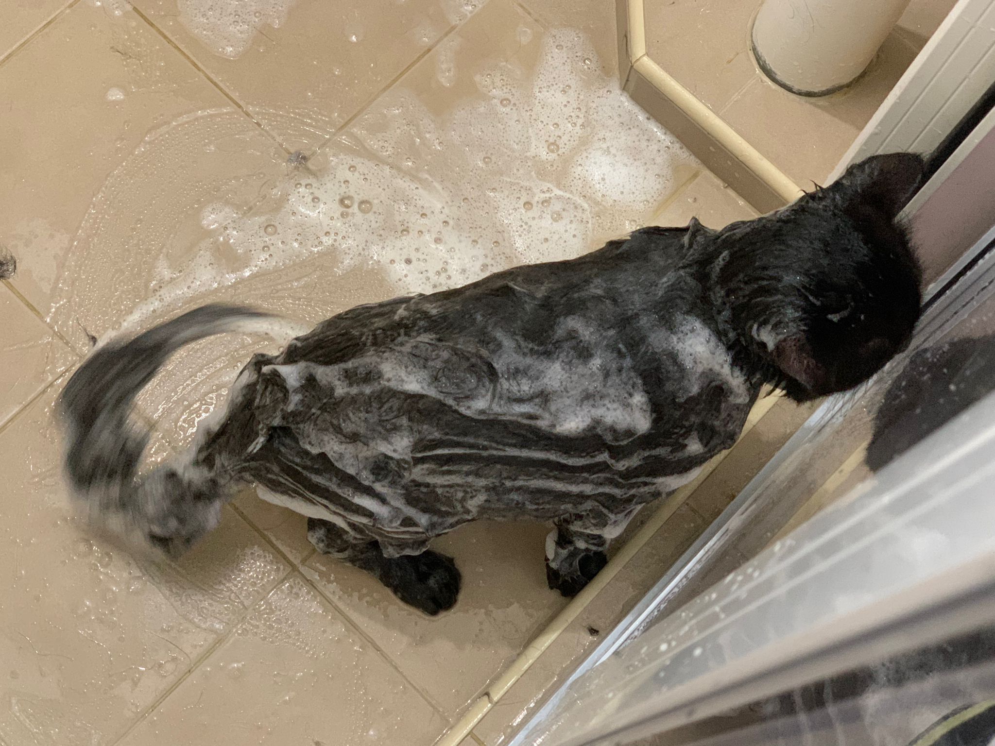 12.08pm: still shampooing in the bathroom