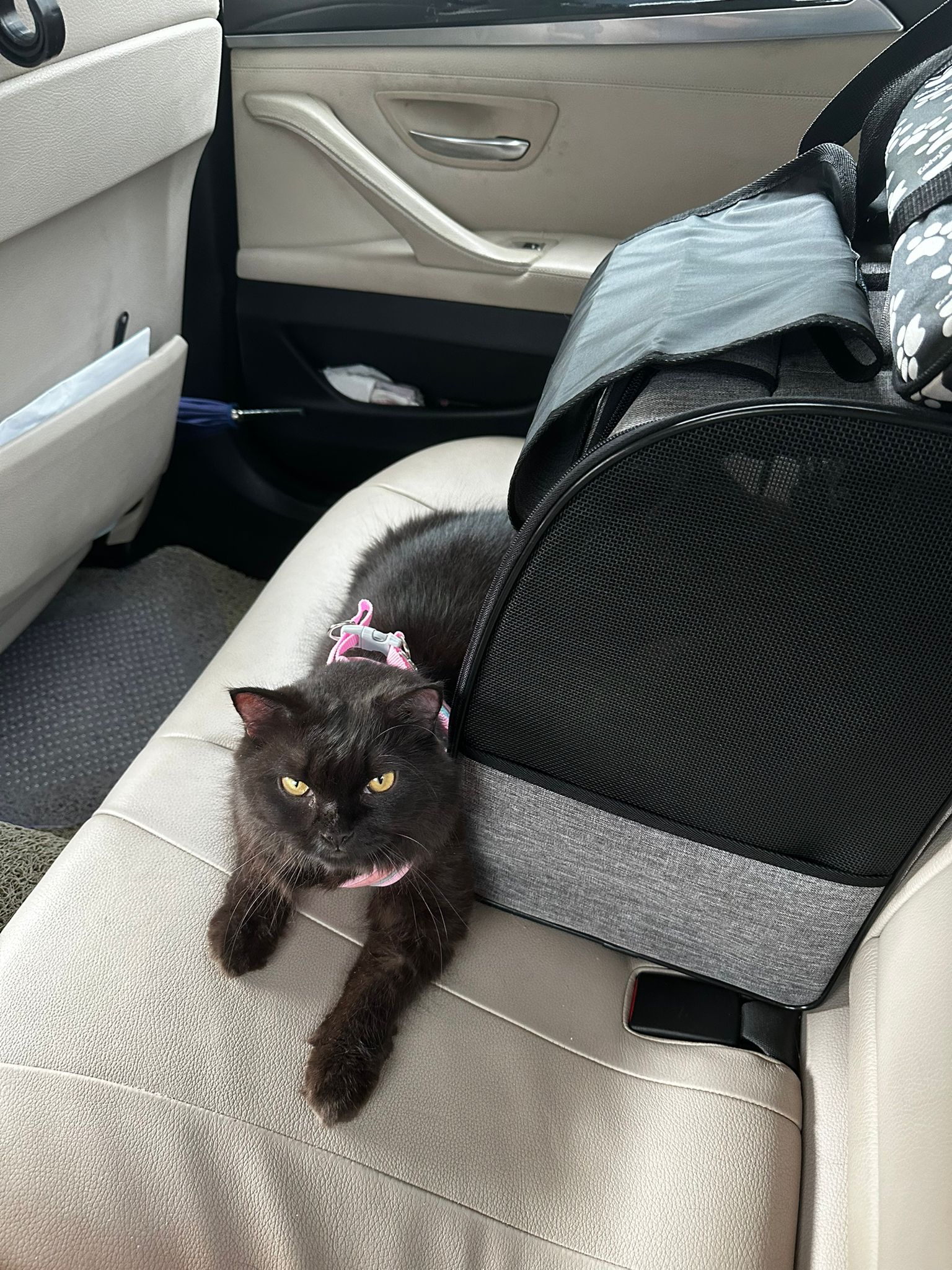 2.37pm: mama:”Very excited to go out. Don’t want to be in carrier, kept meowing to be let out. Luckily wore harness for her. Riri went to vet bcos his ear was bleeding. Thought it’s mites. So bring her to check also in case. But cleared no mites. The whole time she was meowing to be let out of the carrier at the vet”