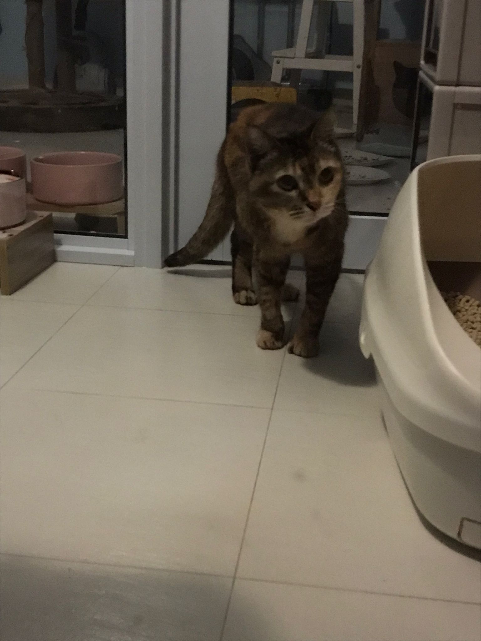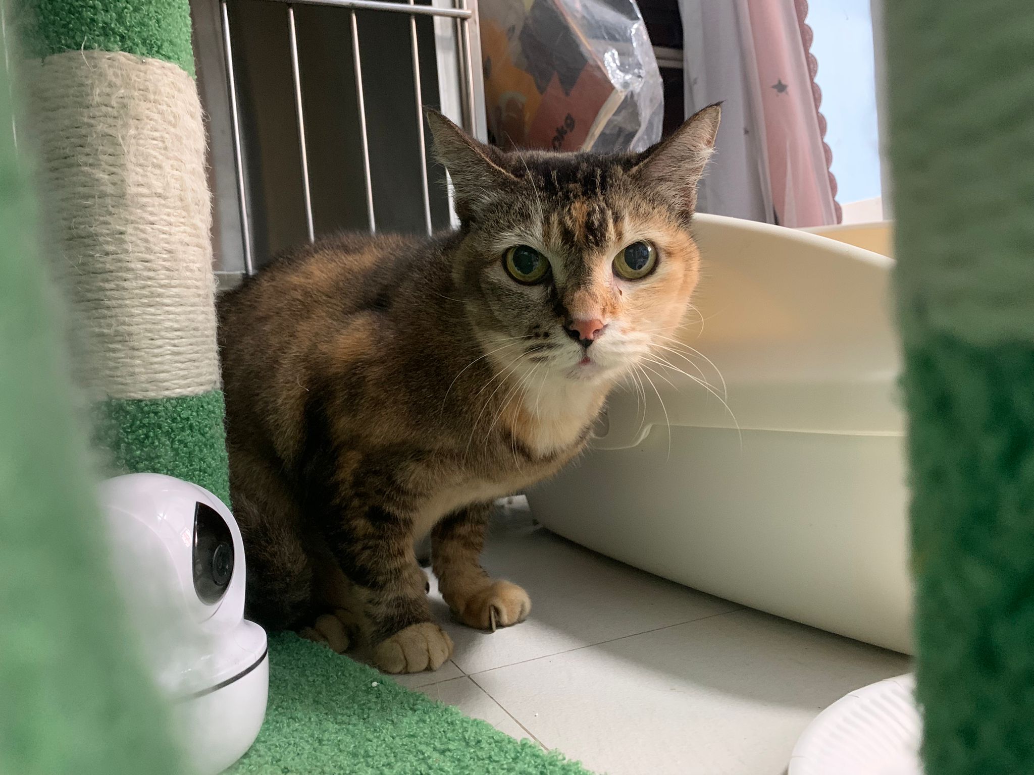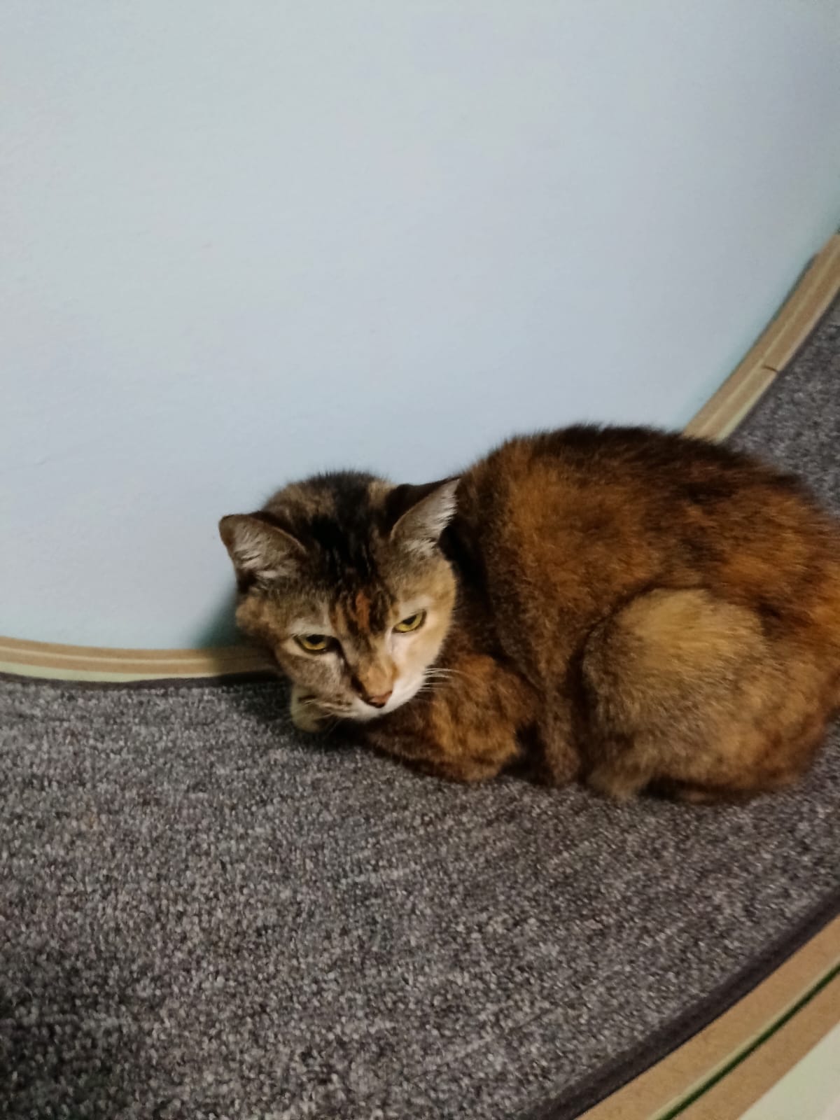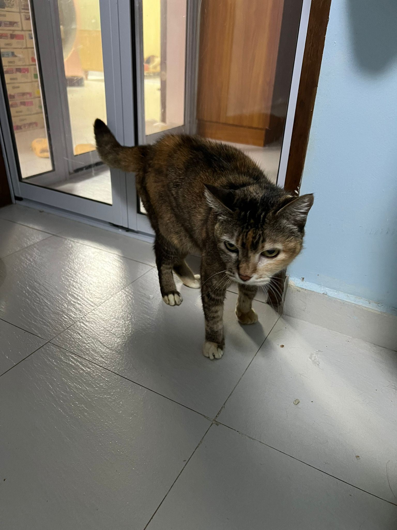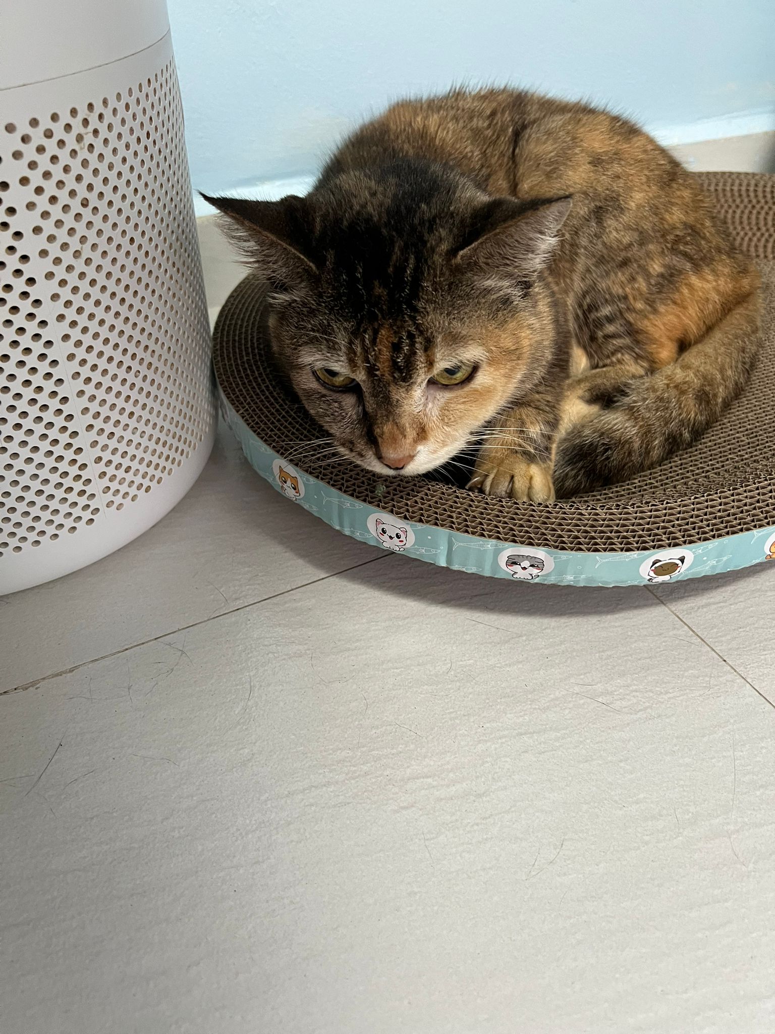 She was picked up from a void deck when she was a 2 weeks’ old kitten. She is with me since then. She is a sweet girl but gets annoyed and irritated easily. She is quite tolerant towards the 2 younger cats. She is quite picky about food.