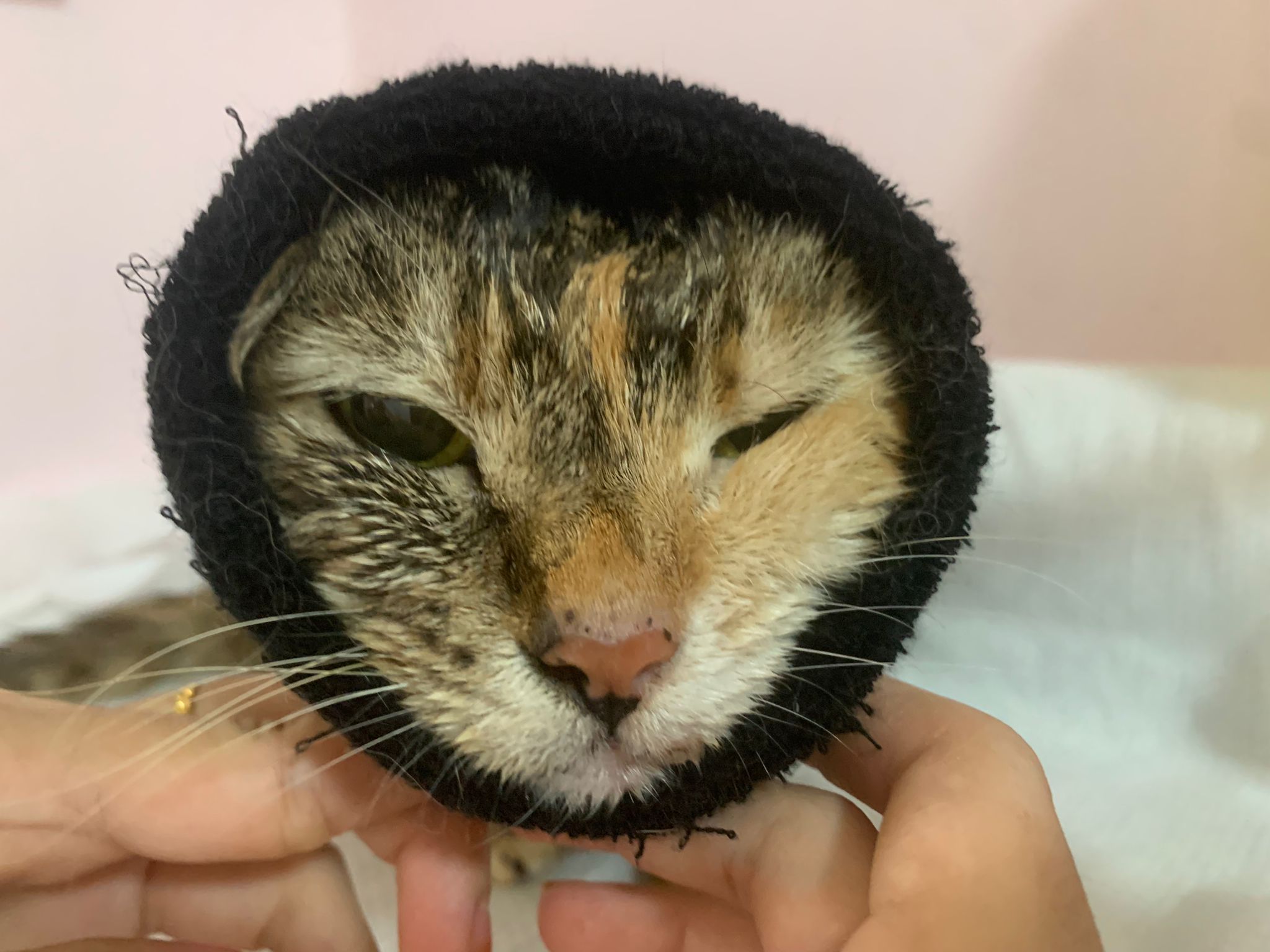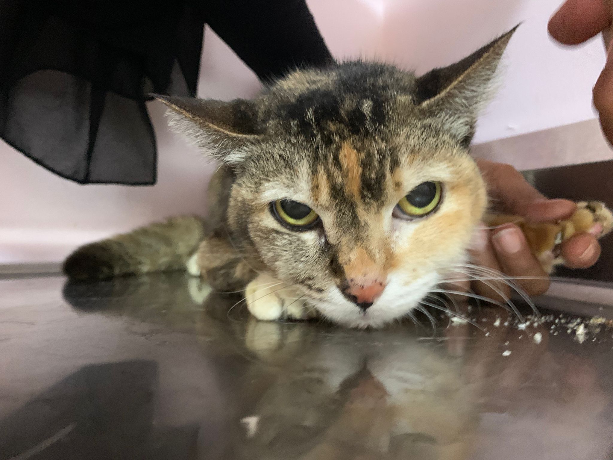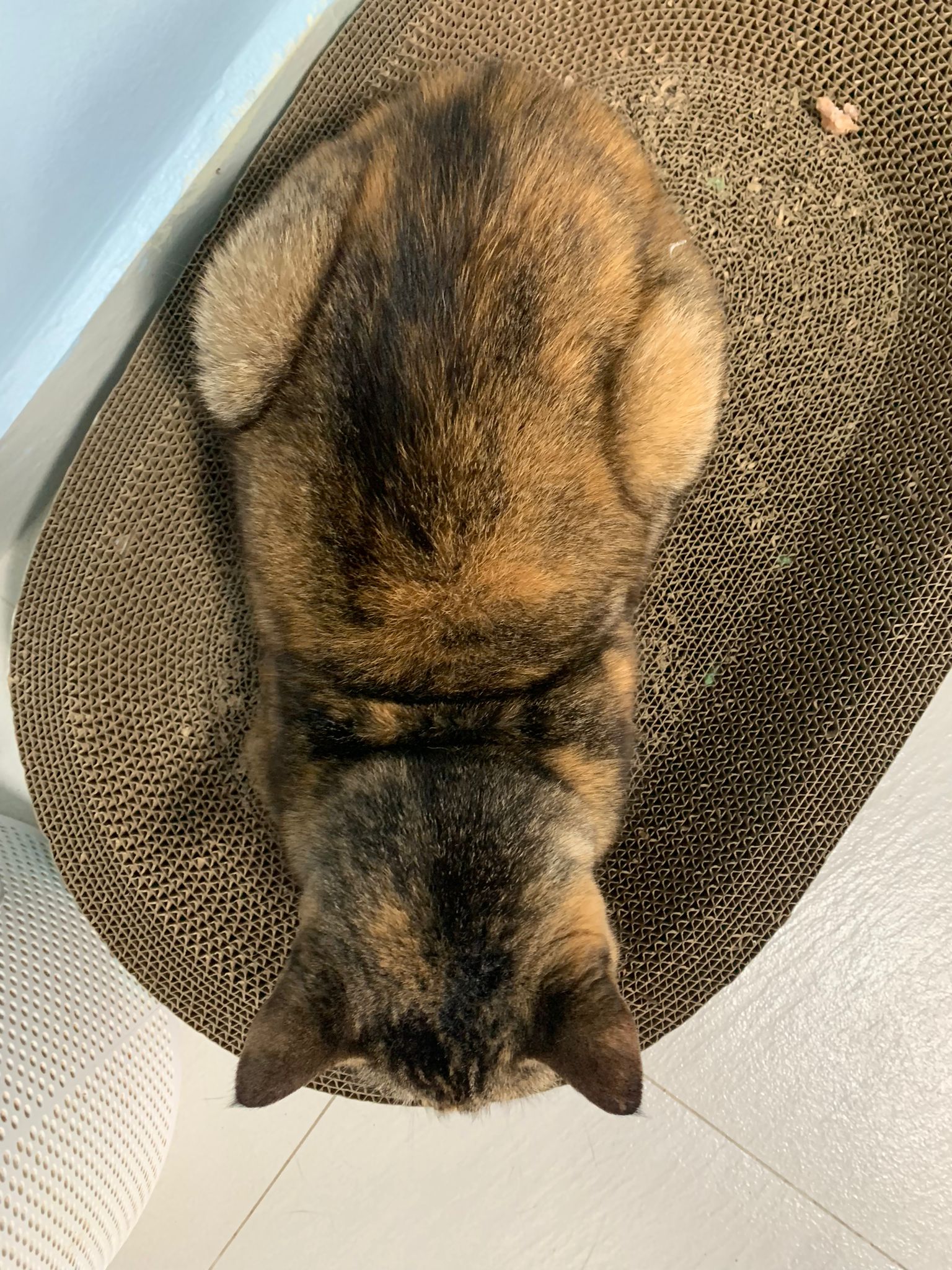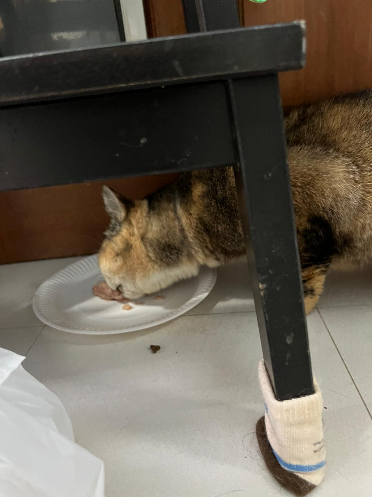 She was picked up from a void deck when she was a 2 weeks’ old kitten. She is with me since then. She is a sweet girl but gets annoyed and irritated easily. She is quite tolerant towards the 2 younger cats. She is quite picky about food.