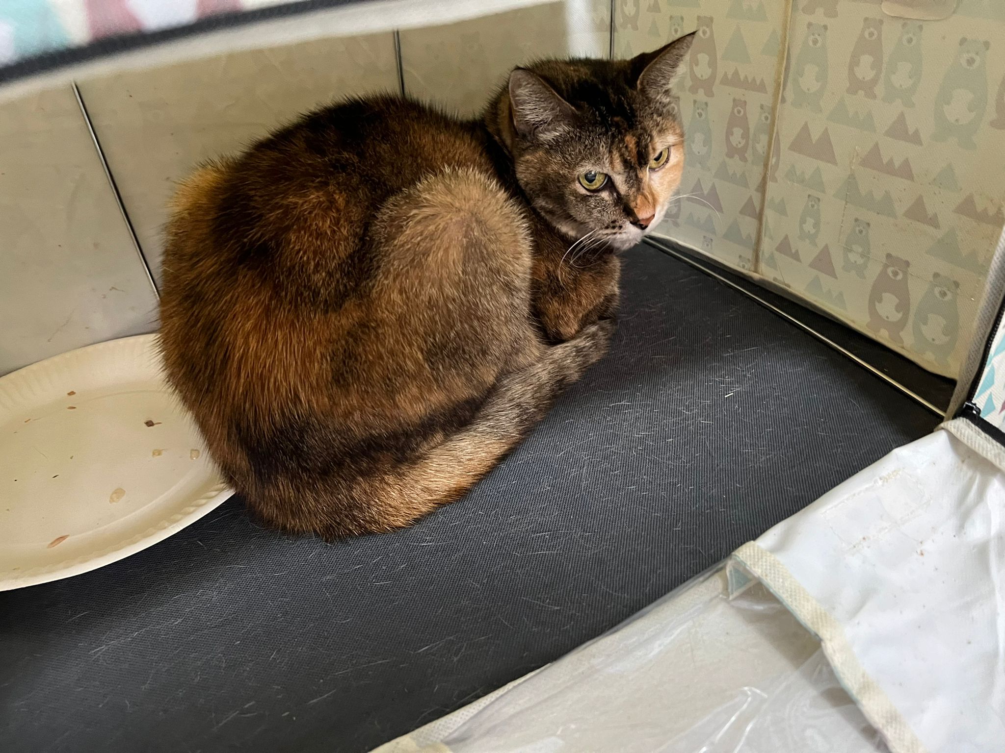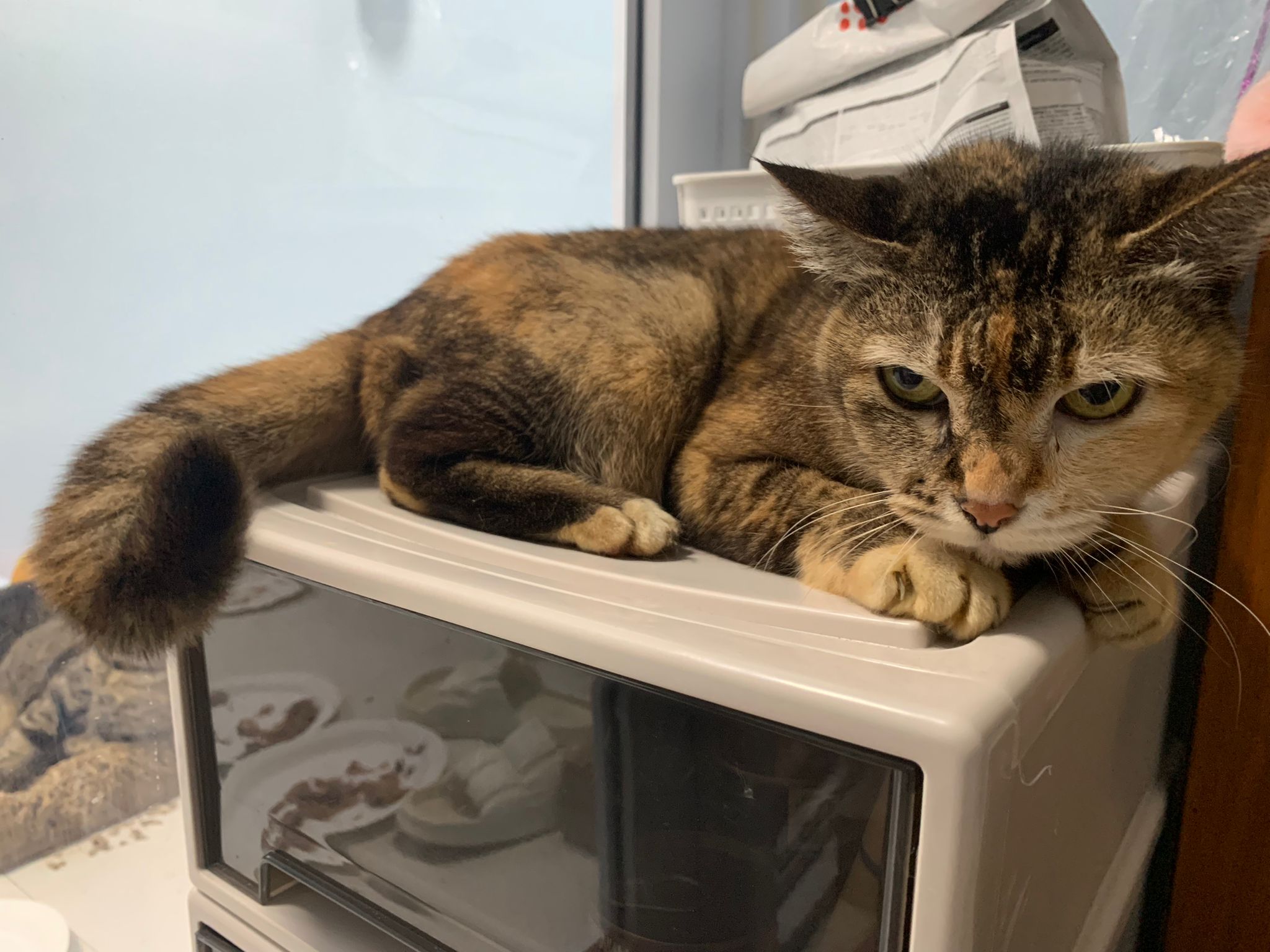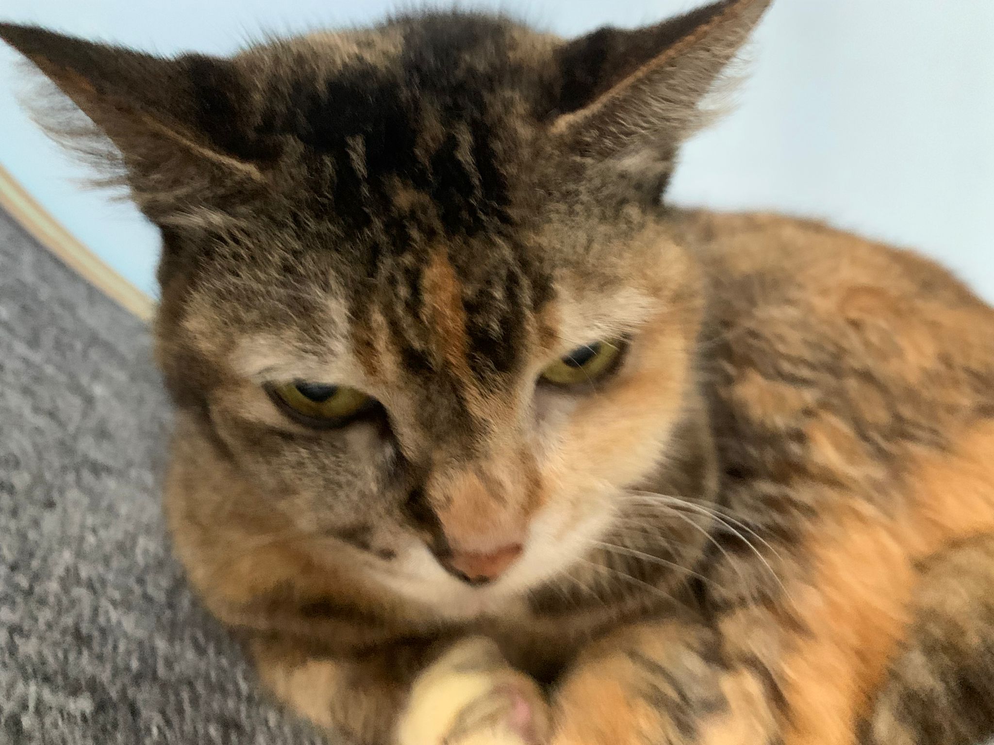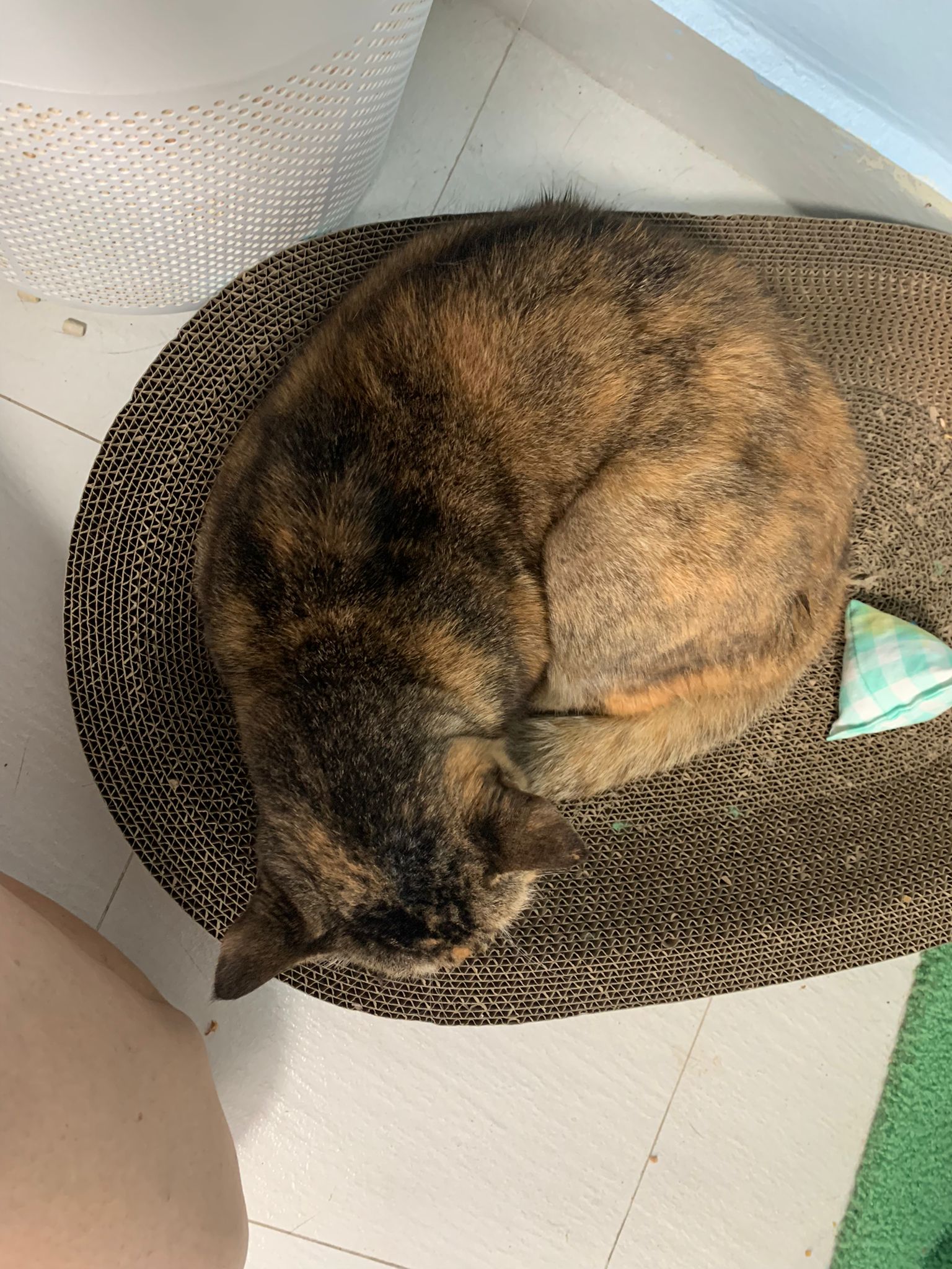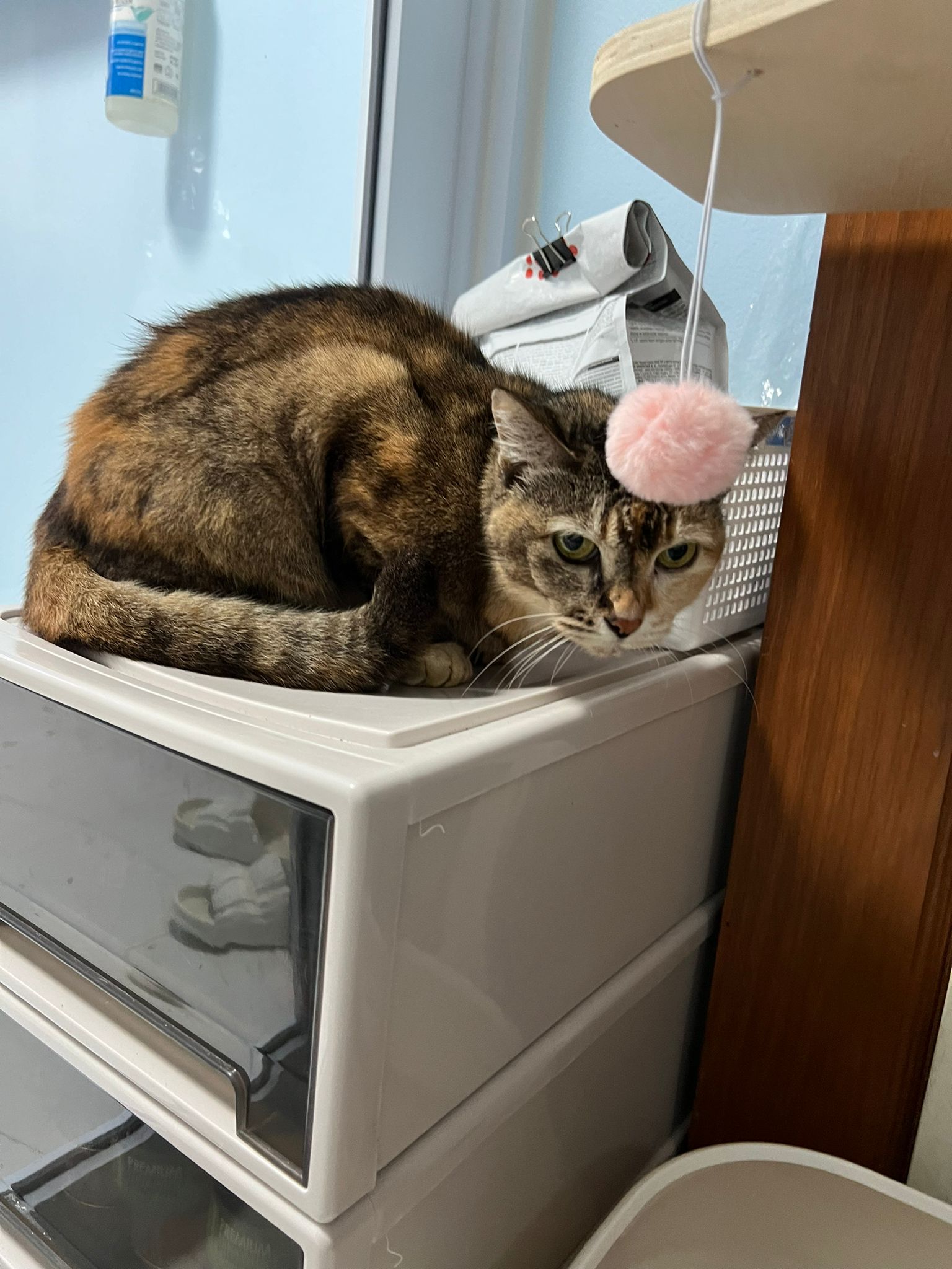 She was picked up from a void deck when she was a 2 weeks’ old kitten. She is with me since then. She is a sweet girl but gets annoyed and irritated easily. She is quite tolerant towards the 2 younger cats. She is quite picky about food.