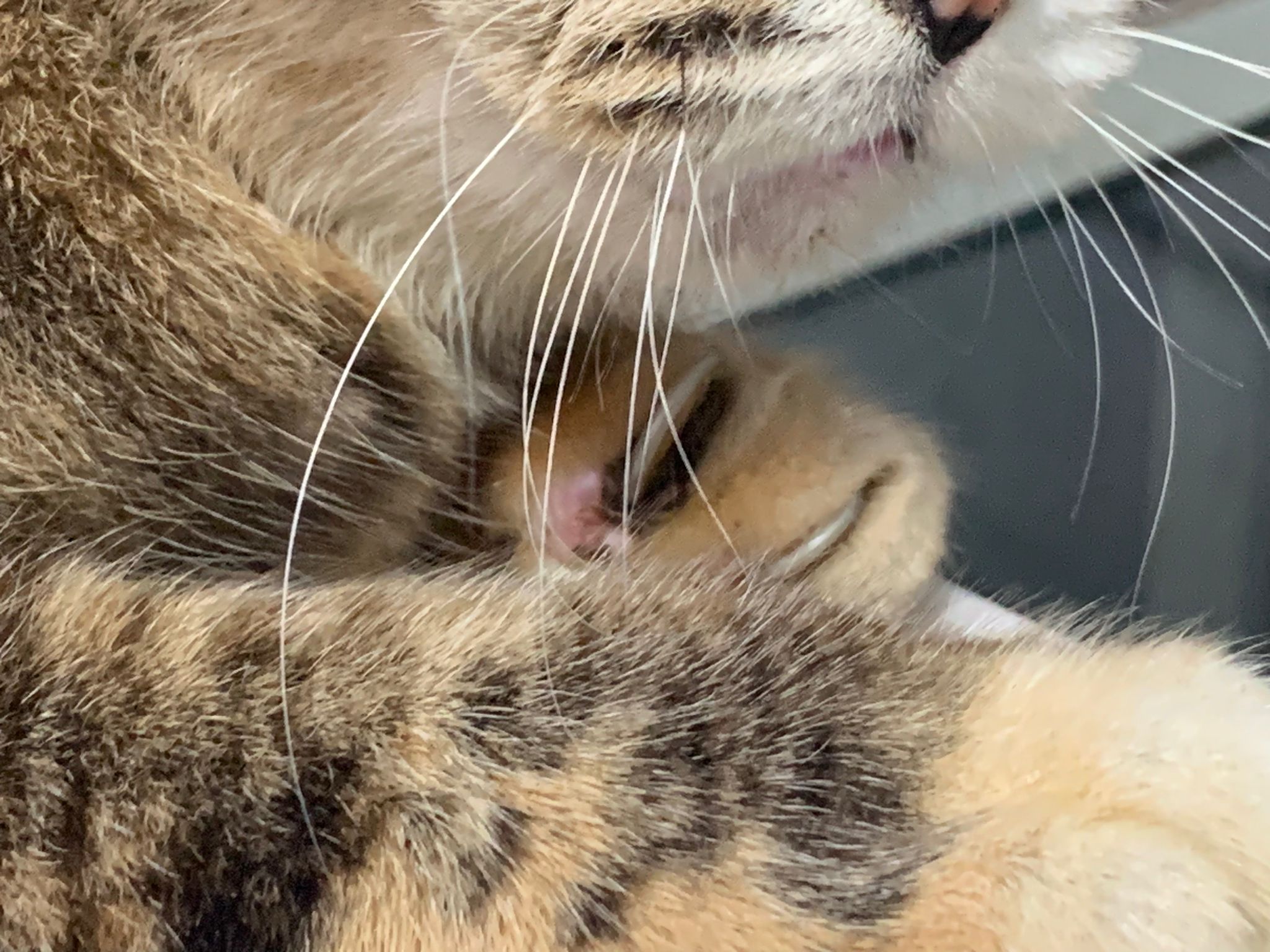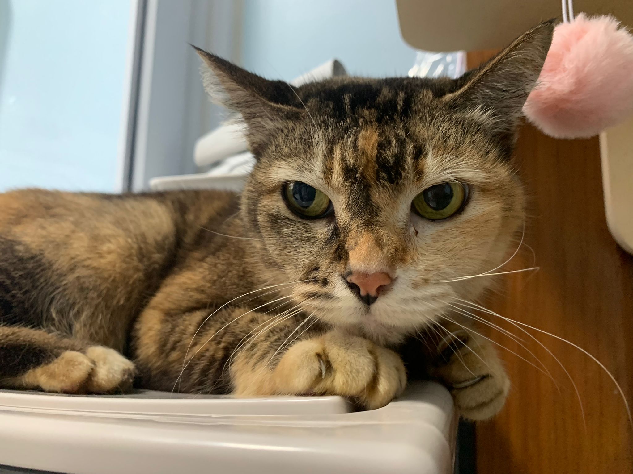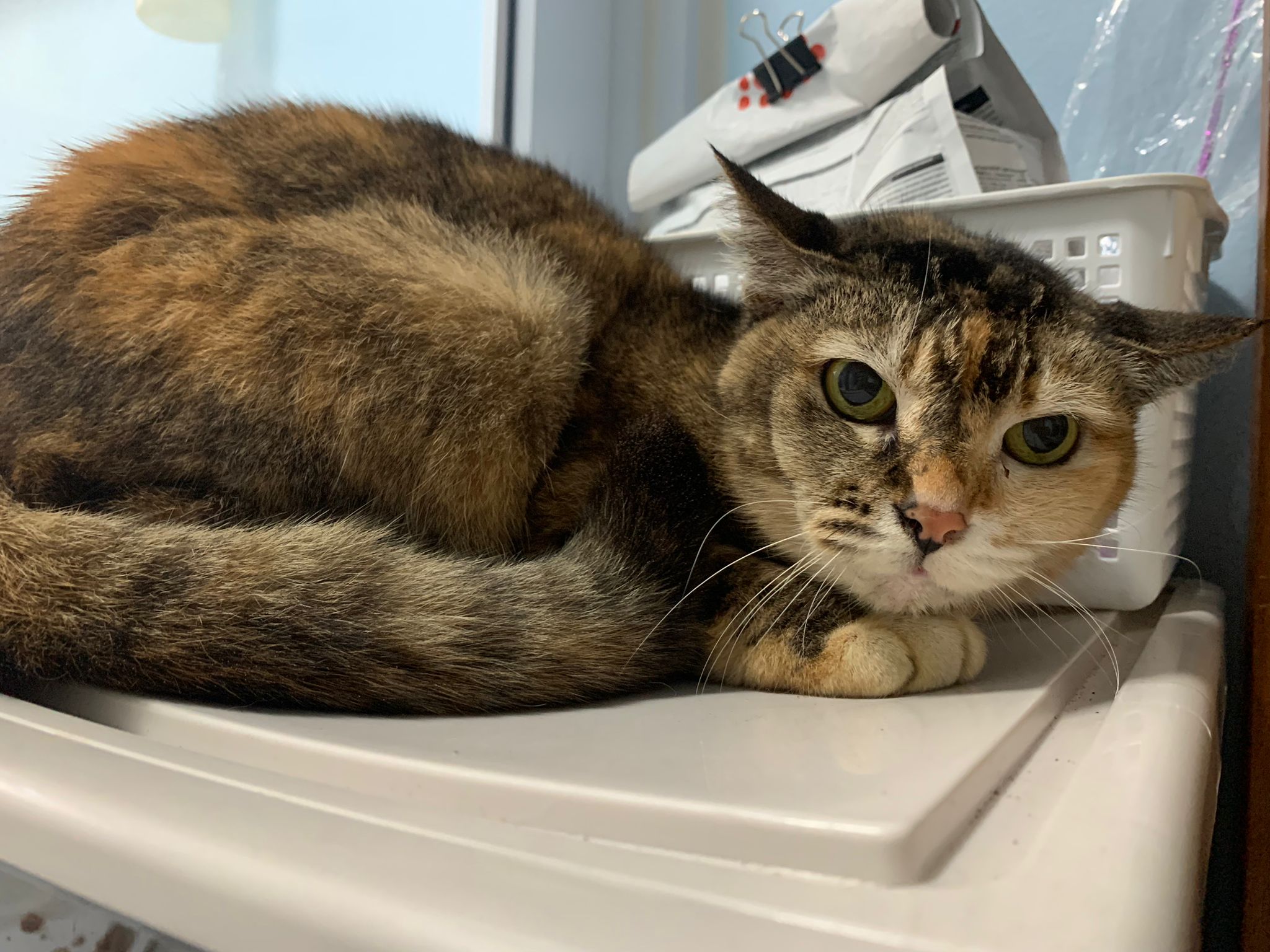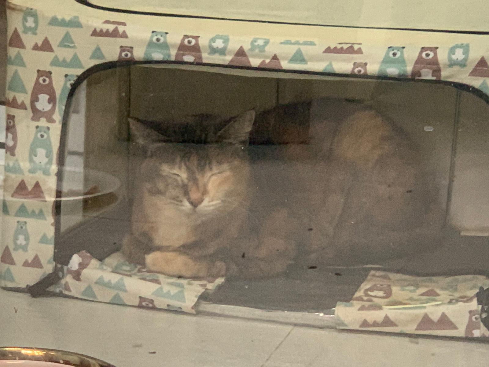 She was picked up from a void deck when she was a 2 weeks’ old kitten. She is with me since then. She is a sweet girl but gets annoyed and irritated easily. She is quite tolerant towards the 2 younger cats. She is quite picky about food.