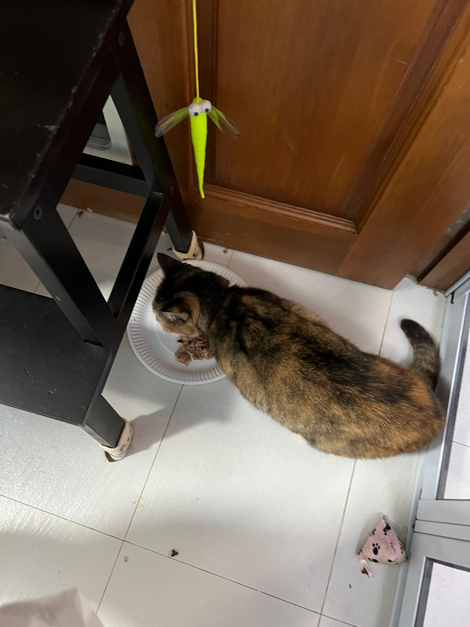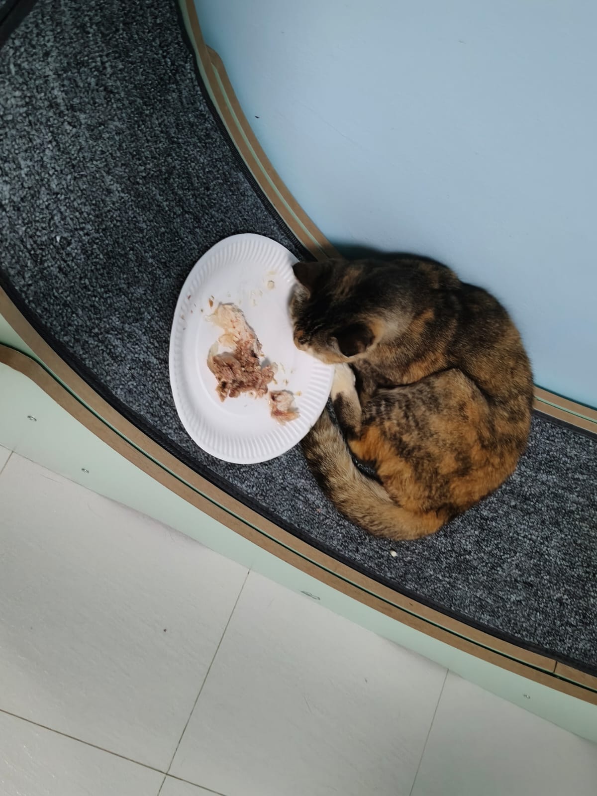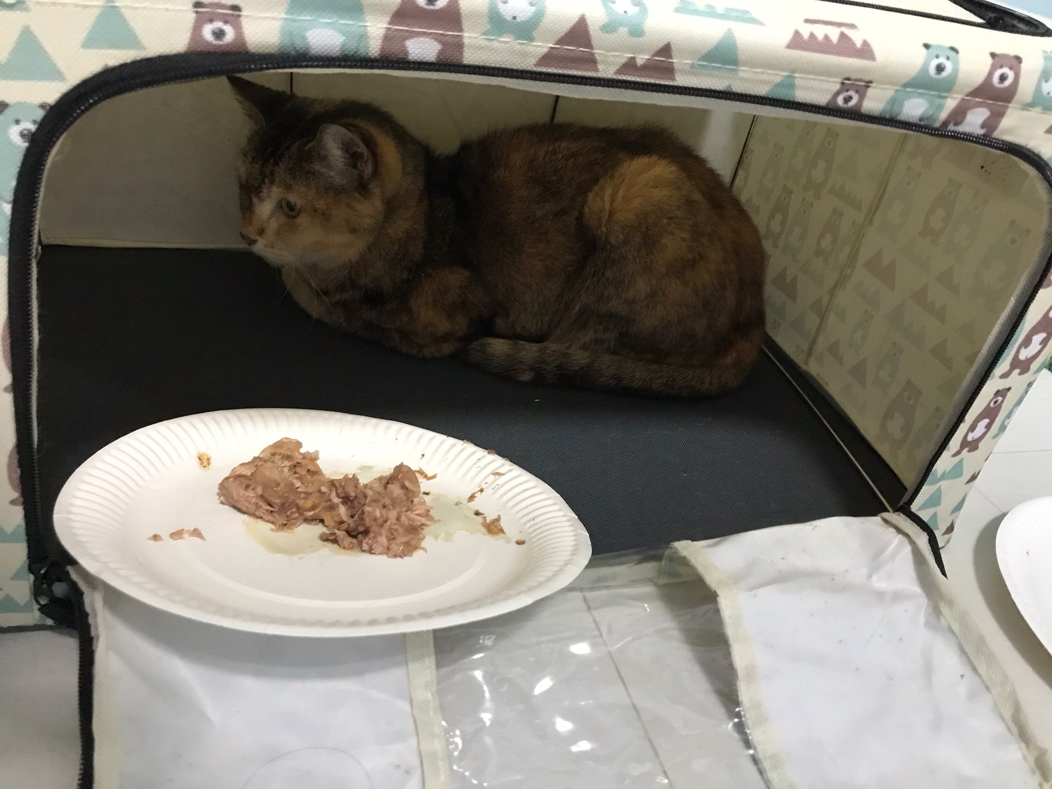 12.00pm: wa since I put her carrier back in, she totally don’t come out to eat, I put her plate under cage for her to eat. Now she know confirm going home le