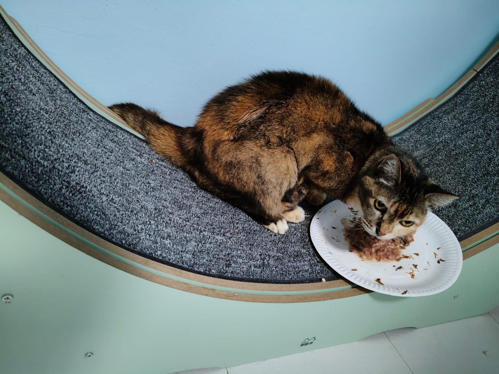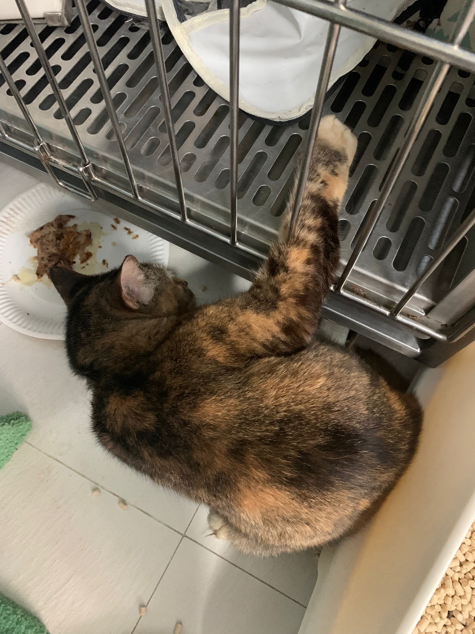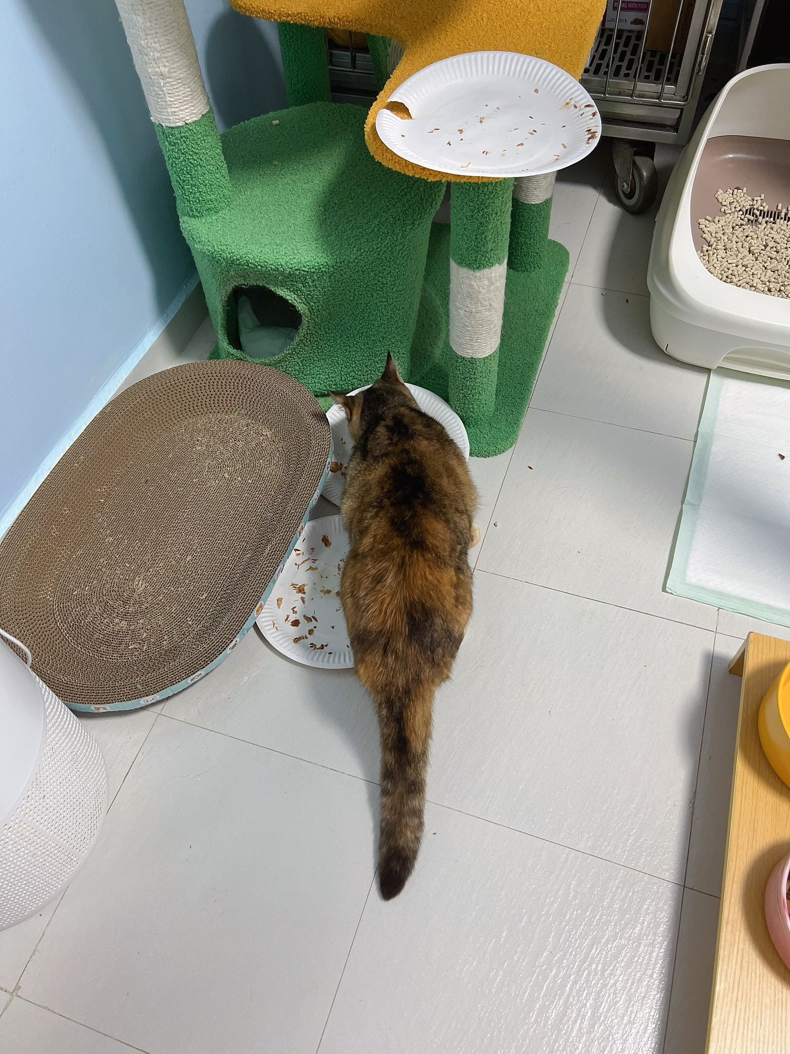 12.00pm: wa since I put her carrier back in, she totally don’t come out to eat, I put her plate under cage for her to eat. Now she know confirm going home le