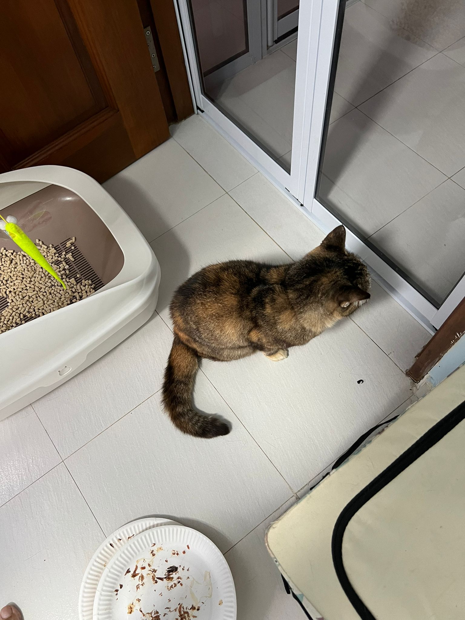 9Am+: jo serve them breakfast. Got 2 sets of poo look 5 and 6/10. She sit on the box of sb present, Hopefully she didn’t pee in it, gonna give away. She likes to sit on that.