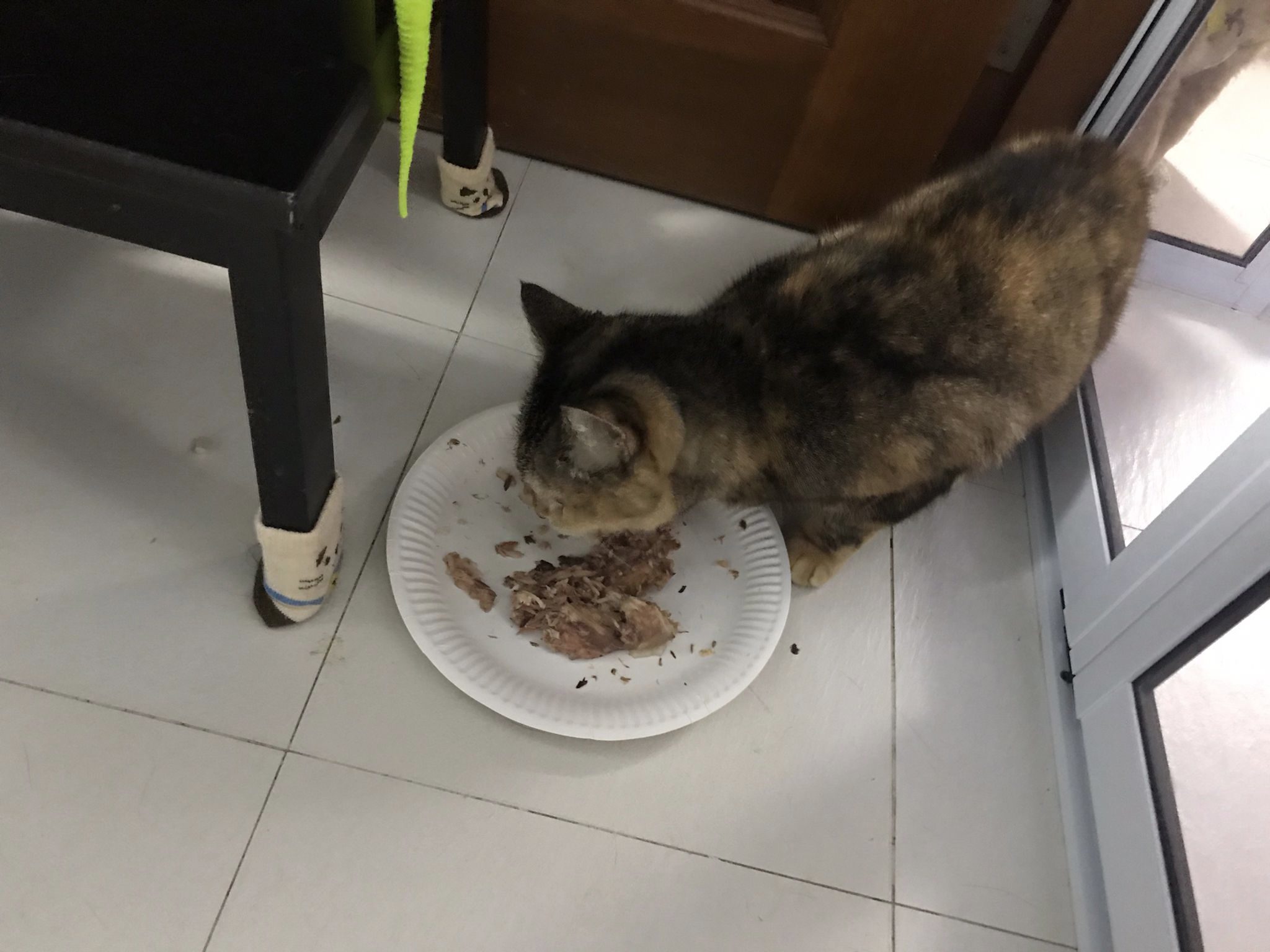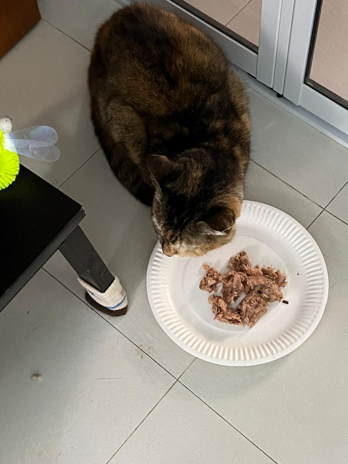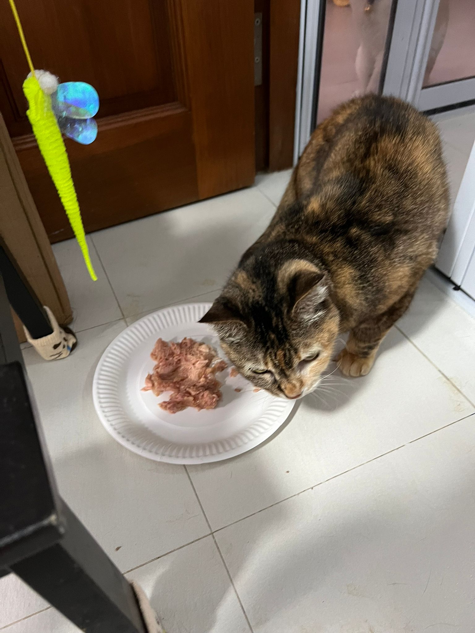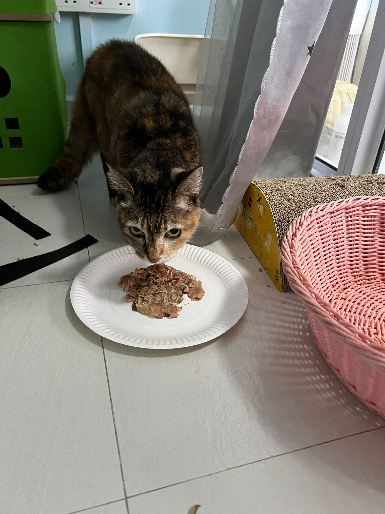 • serve her food and aixia tuna fillet she seem interested but of Cos didn’t react – later see how