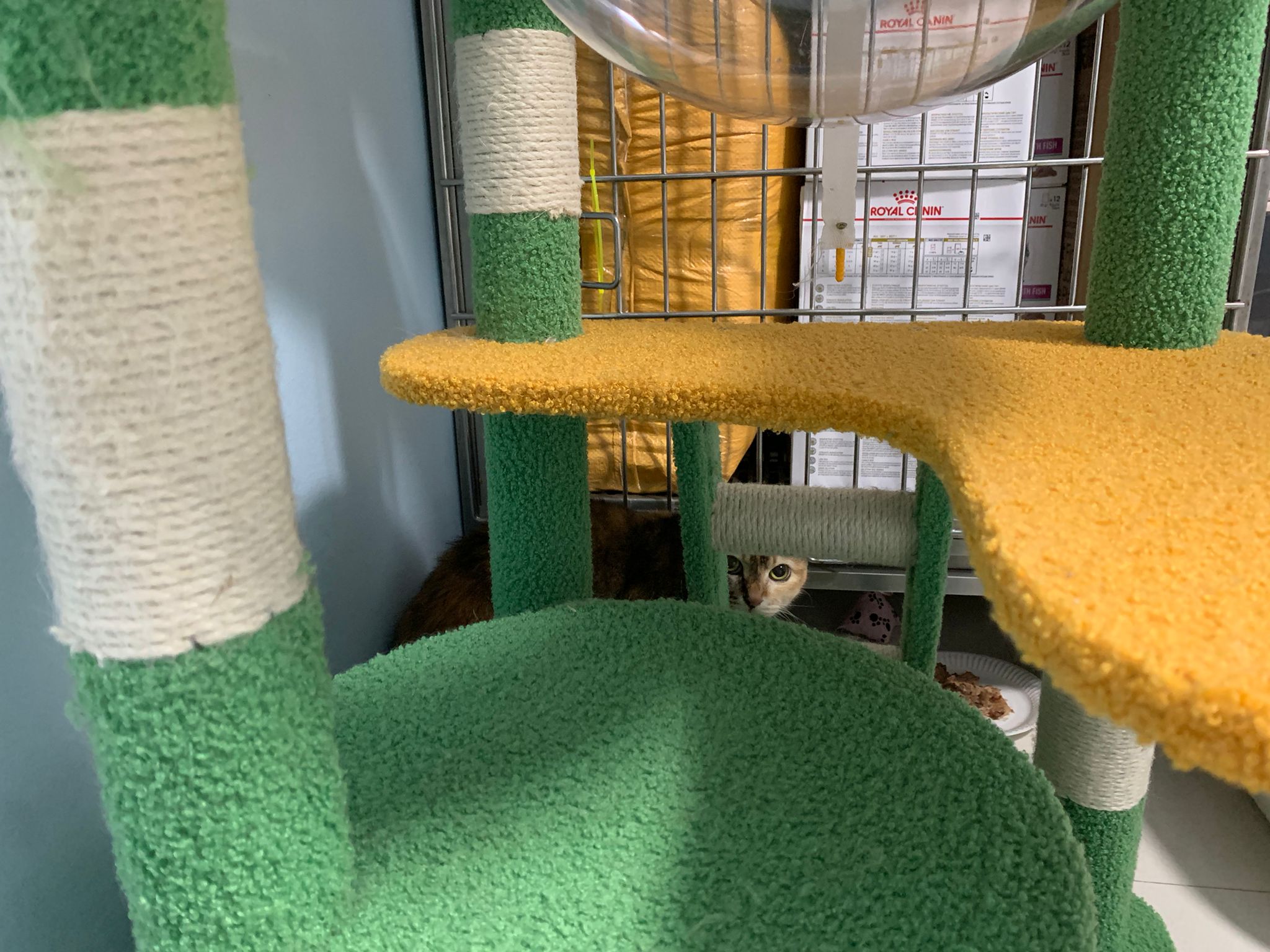 10am+: i rush in take o2 for snowy, jo alr fed them. I sayang her she ok. Then I push the cat tree to take stuff she hiss at me ha