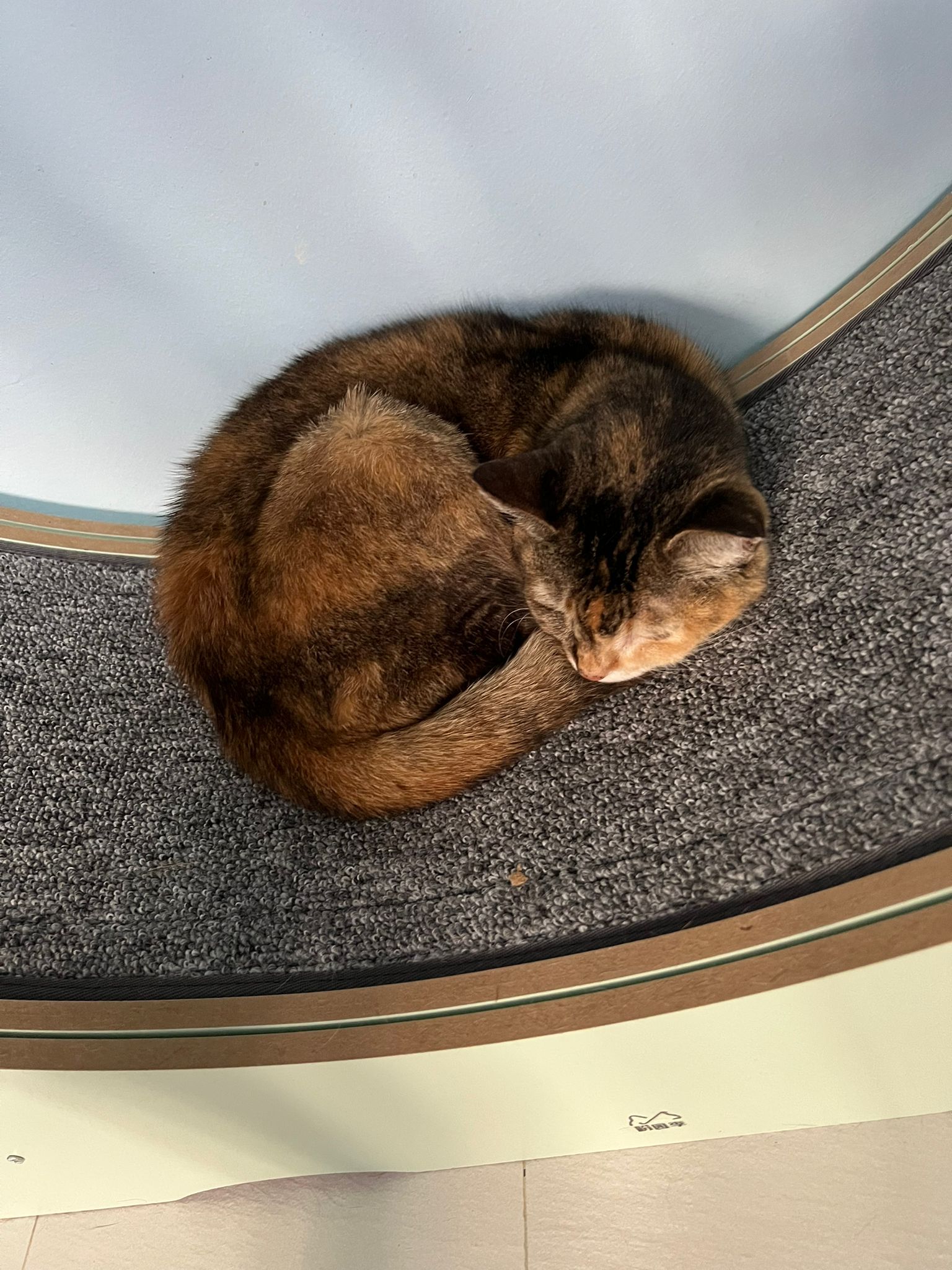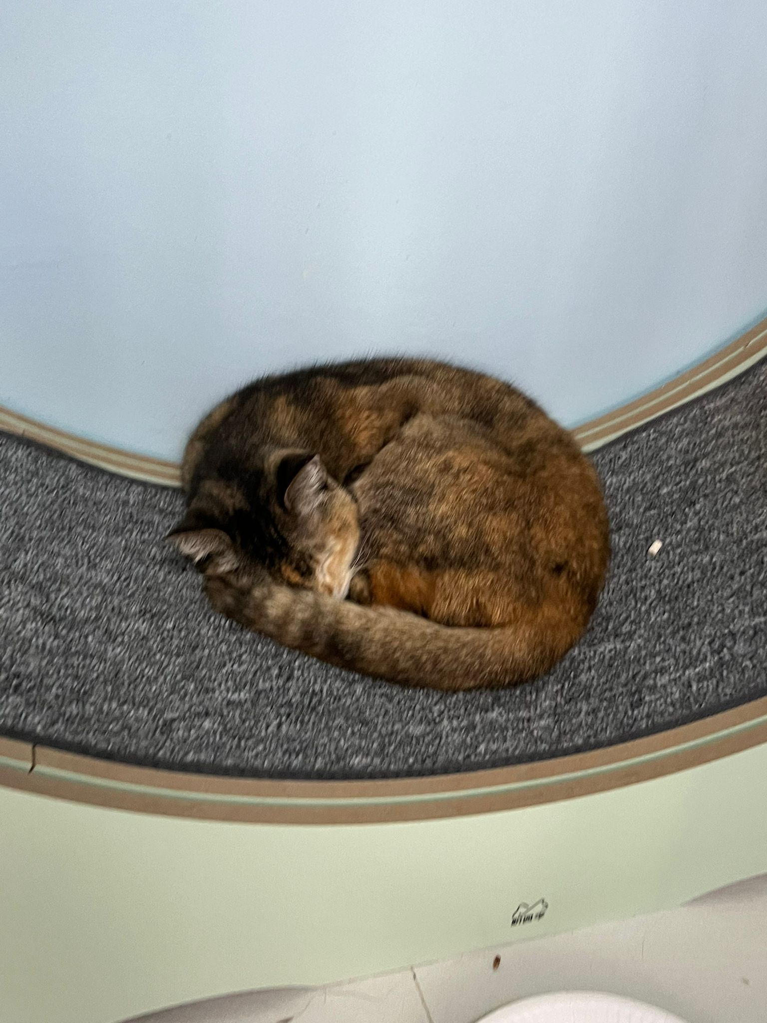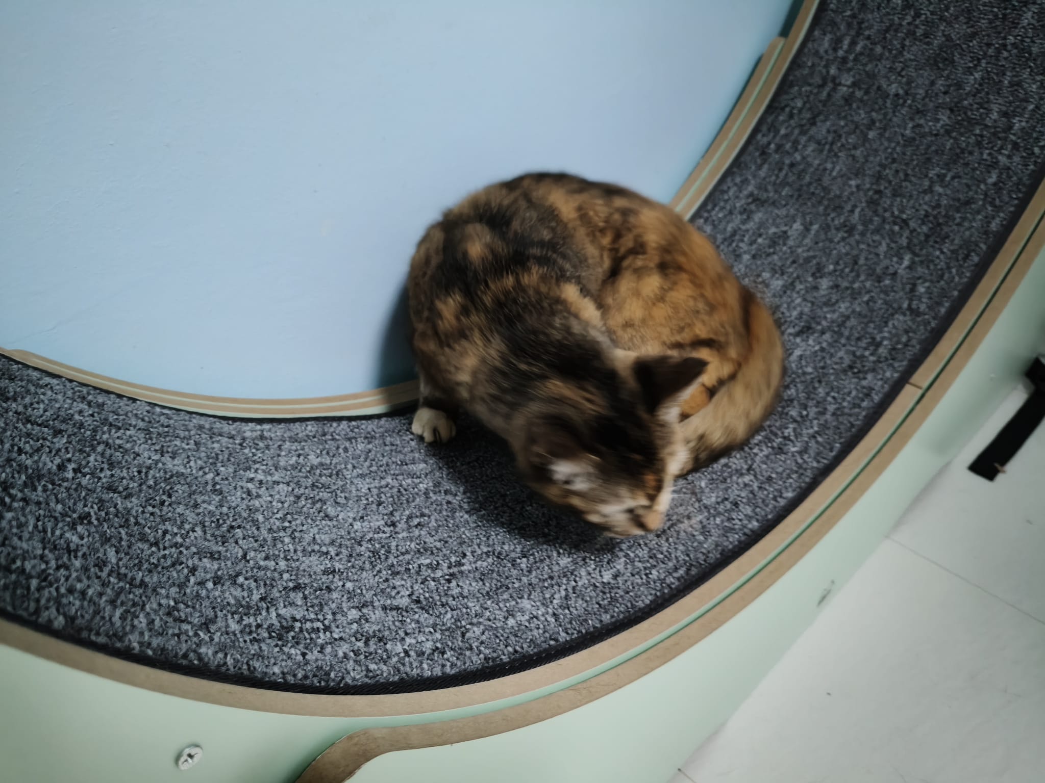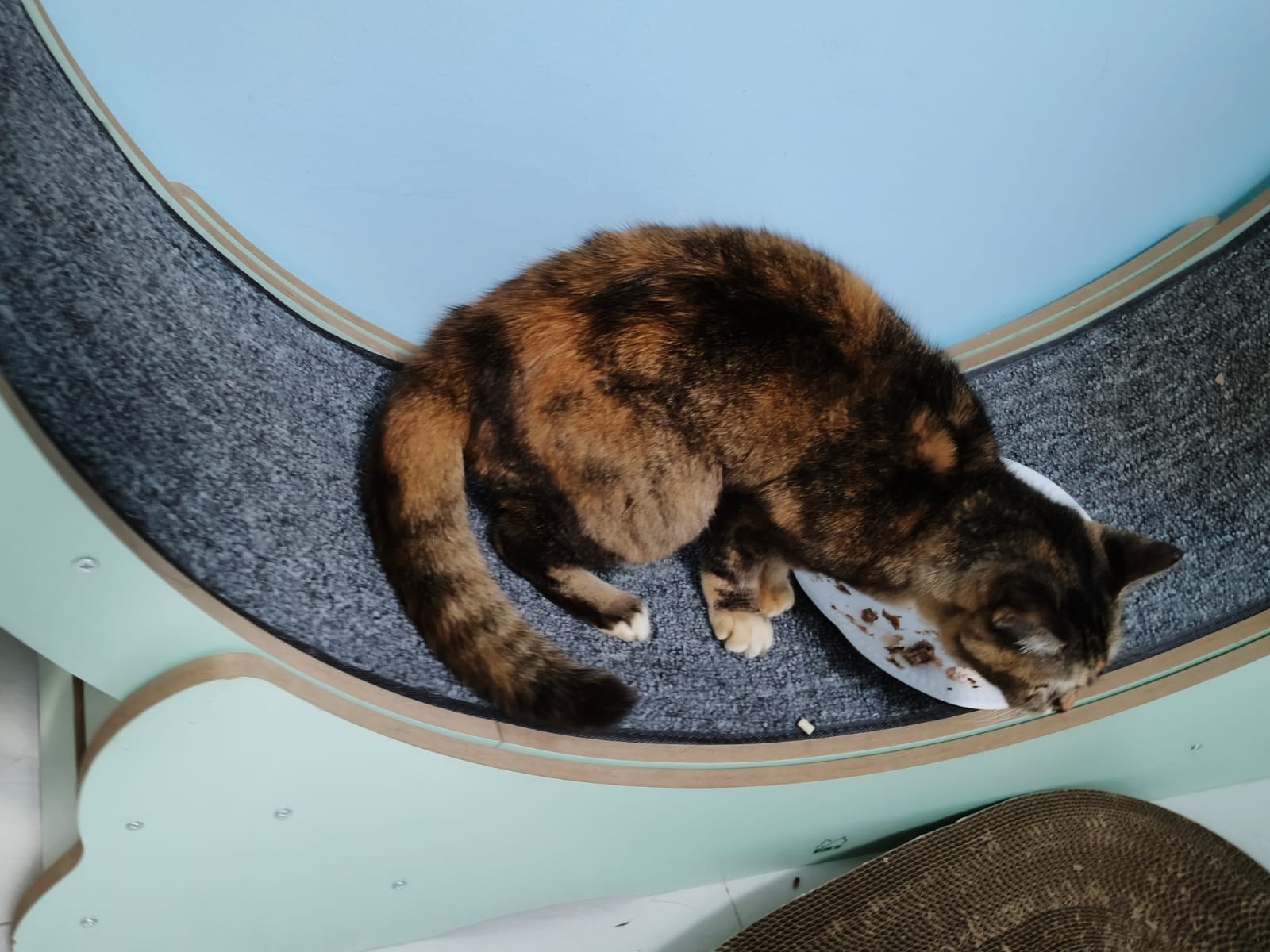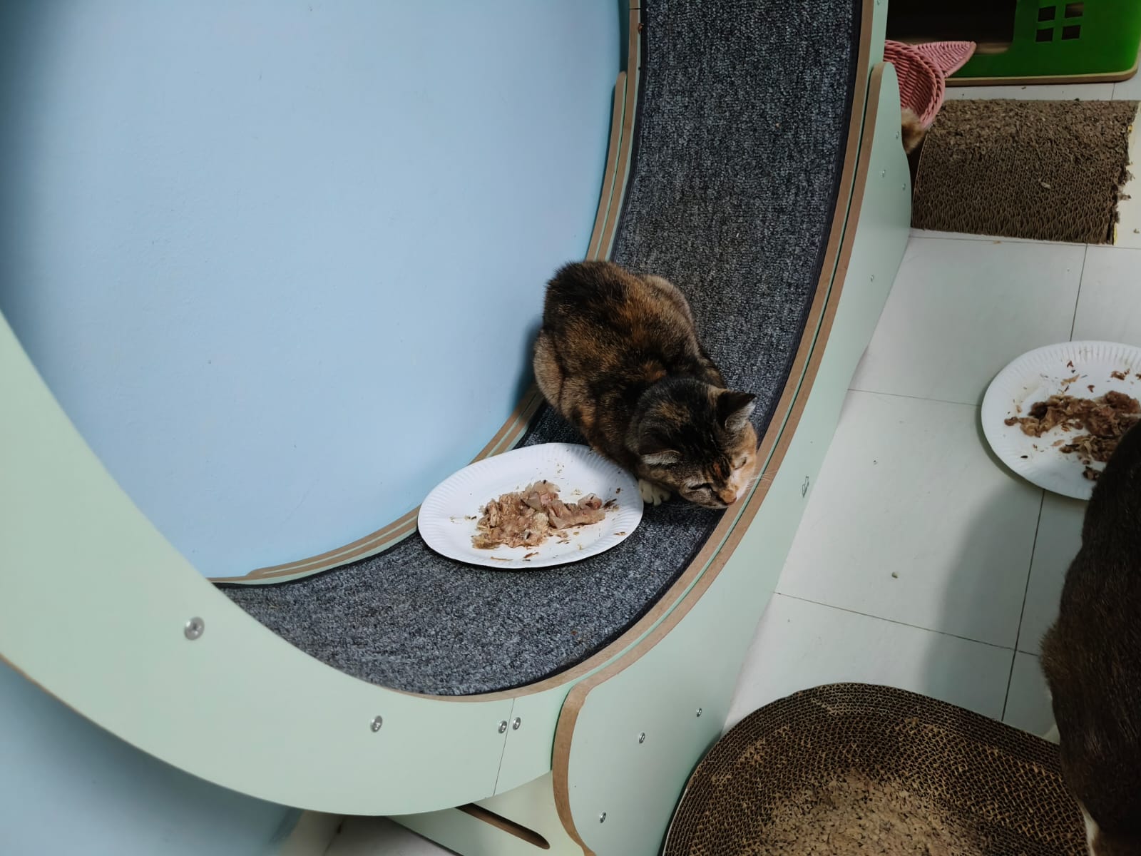 10am+: Today cherie don’t hiss at him alr. Even when his face is facing hers 1cm apart. Like got sit on the wheel. I’ll wait for her to go home then bring the wheel to 猫房 tv room.