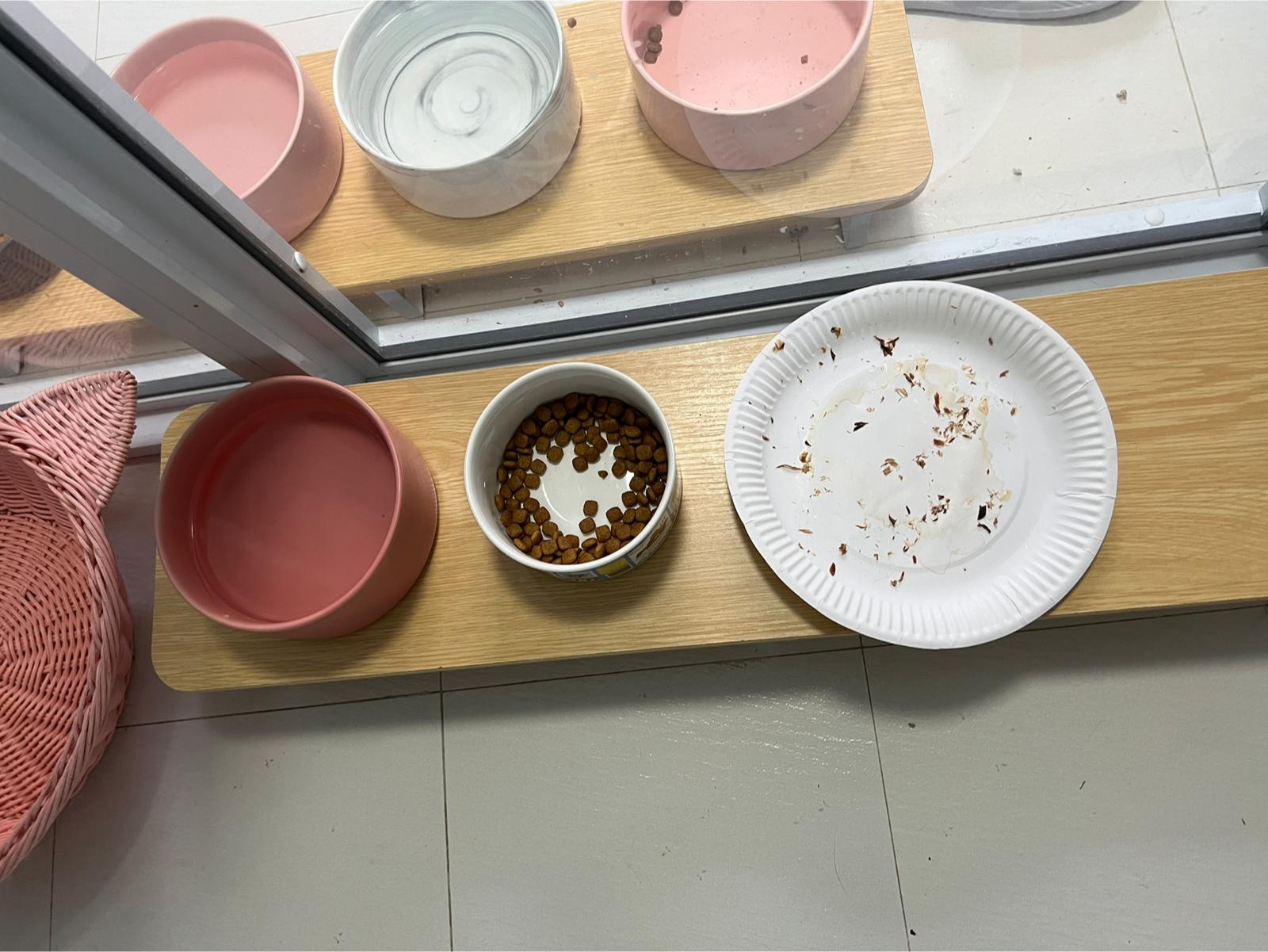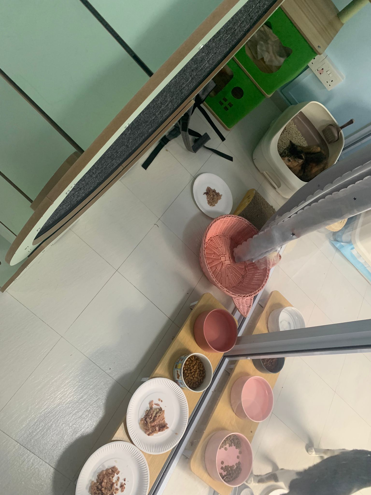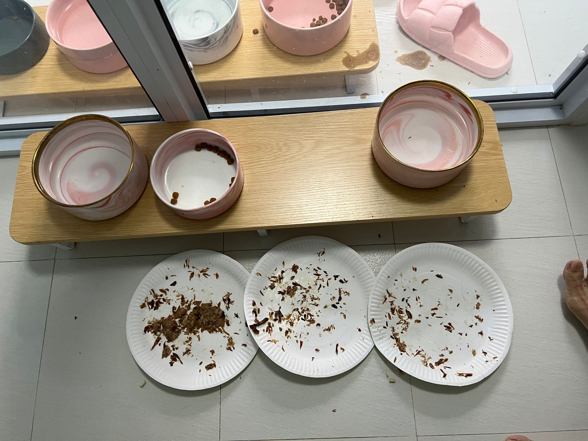 10am+: wa their room 3 plates all quite full, like 2.5 plates left untouched, it’s tuna w pumpkin they don’t like ah.