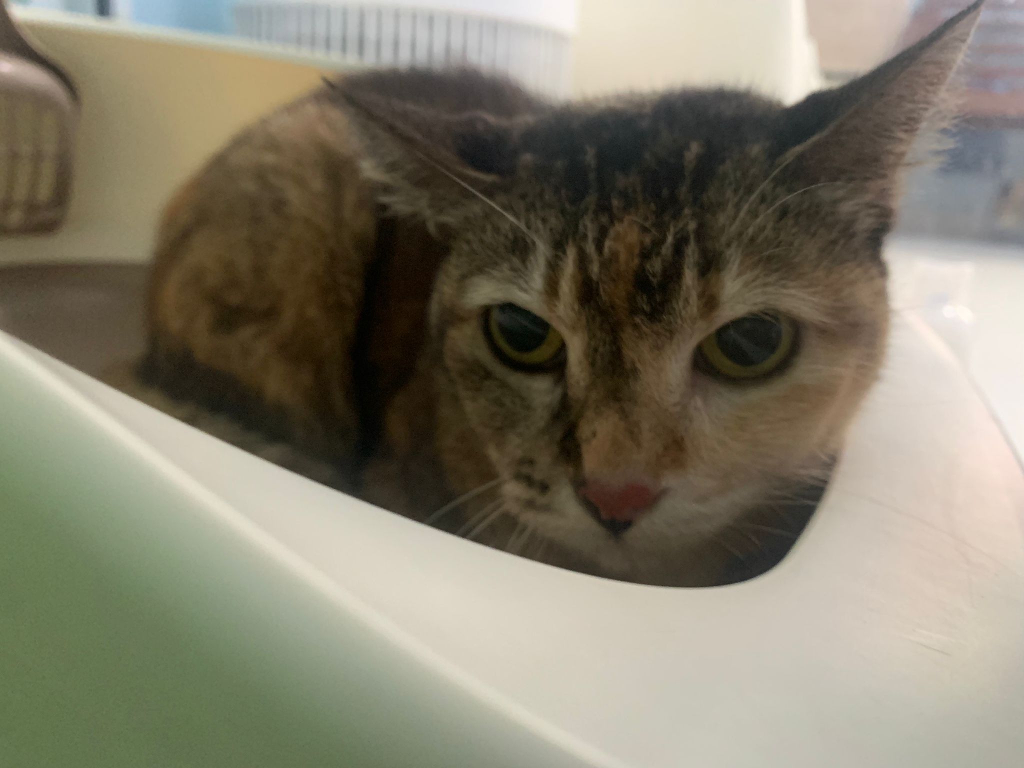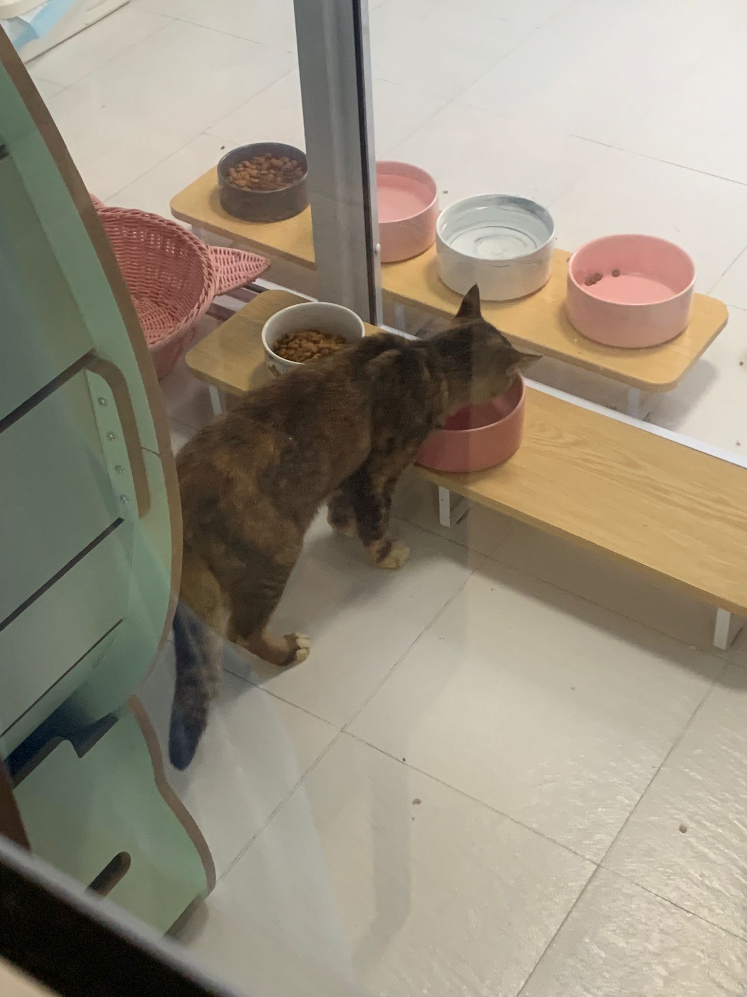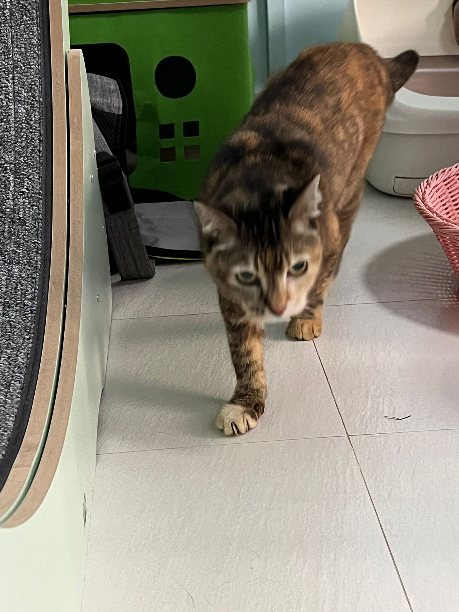 10am+: enter 猫房. Active, keep walking here n there to check out the room. Carry her to weigh but she keep moving off the scale, got to put her in carrier to weigh, 3.05kg- realise I didn’t have any weight to compare to. but feel thinner.