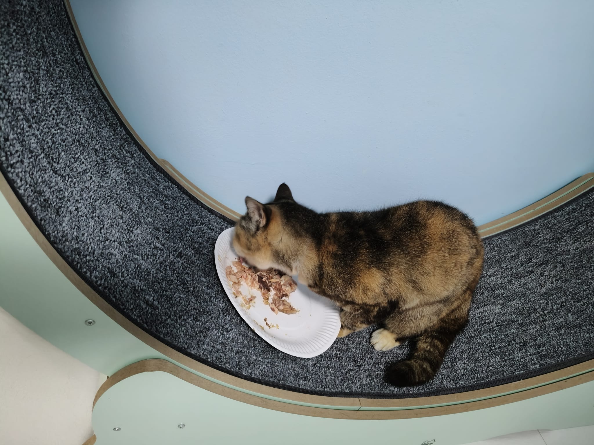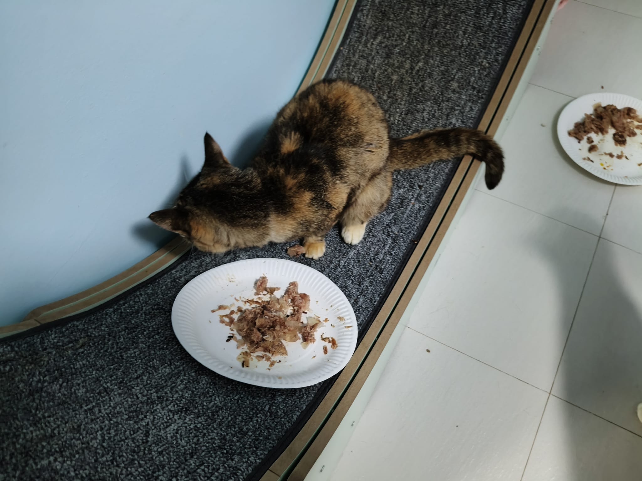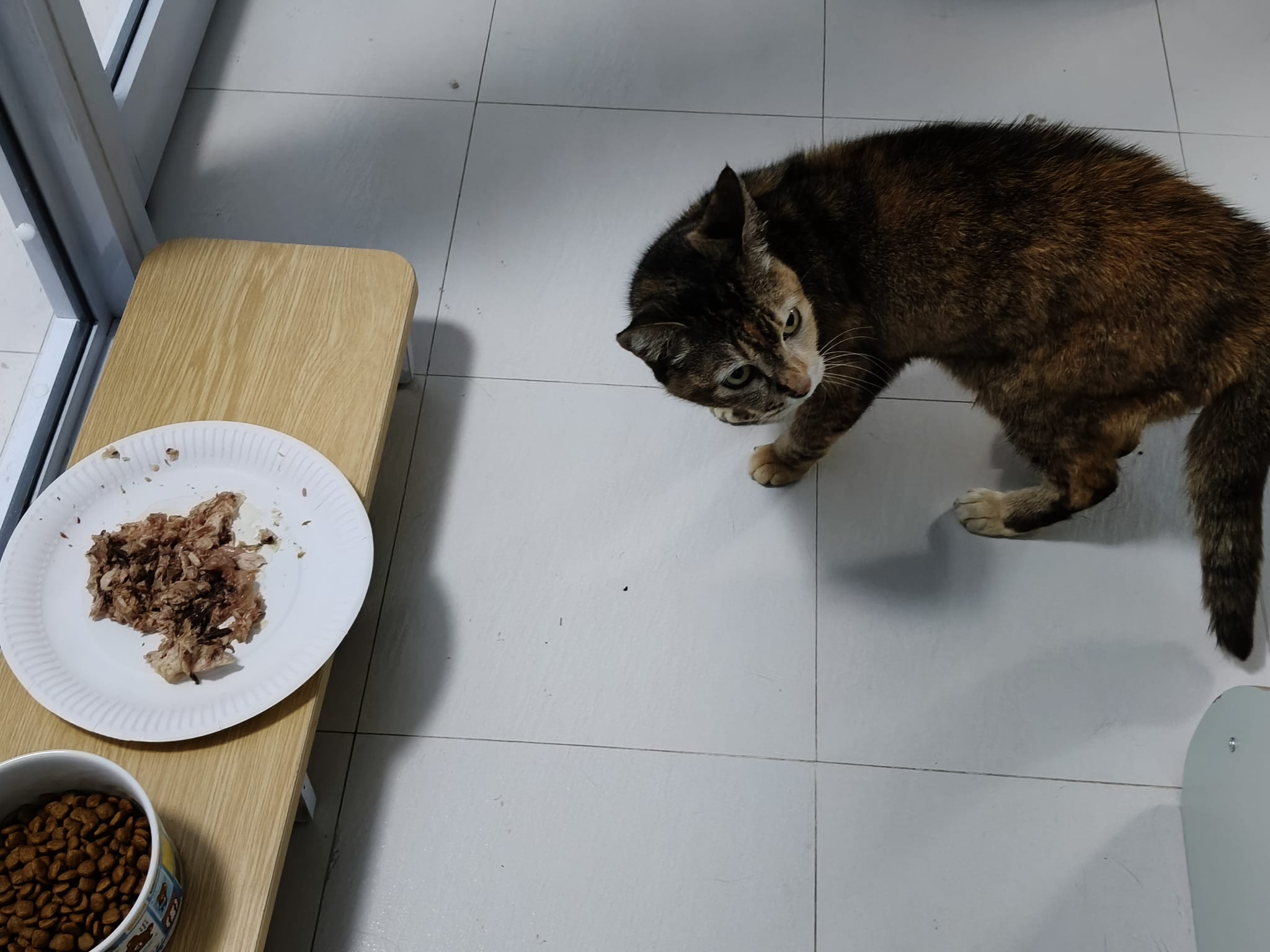 she meow at me to serve food wor. I thought is Benji. Given them tuna w white fish. They eat tgt.