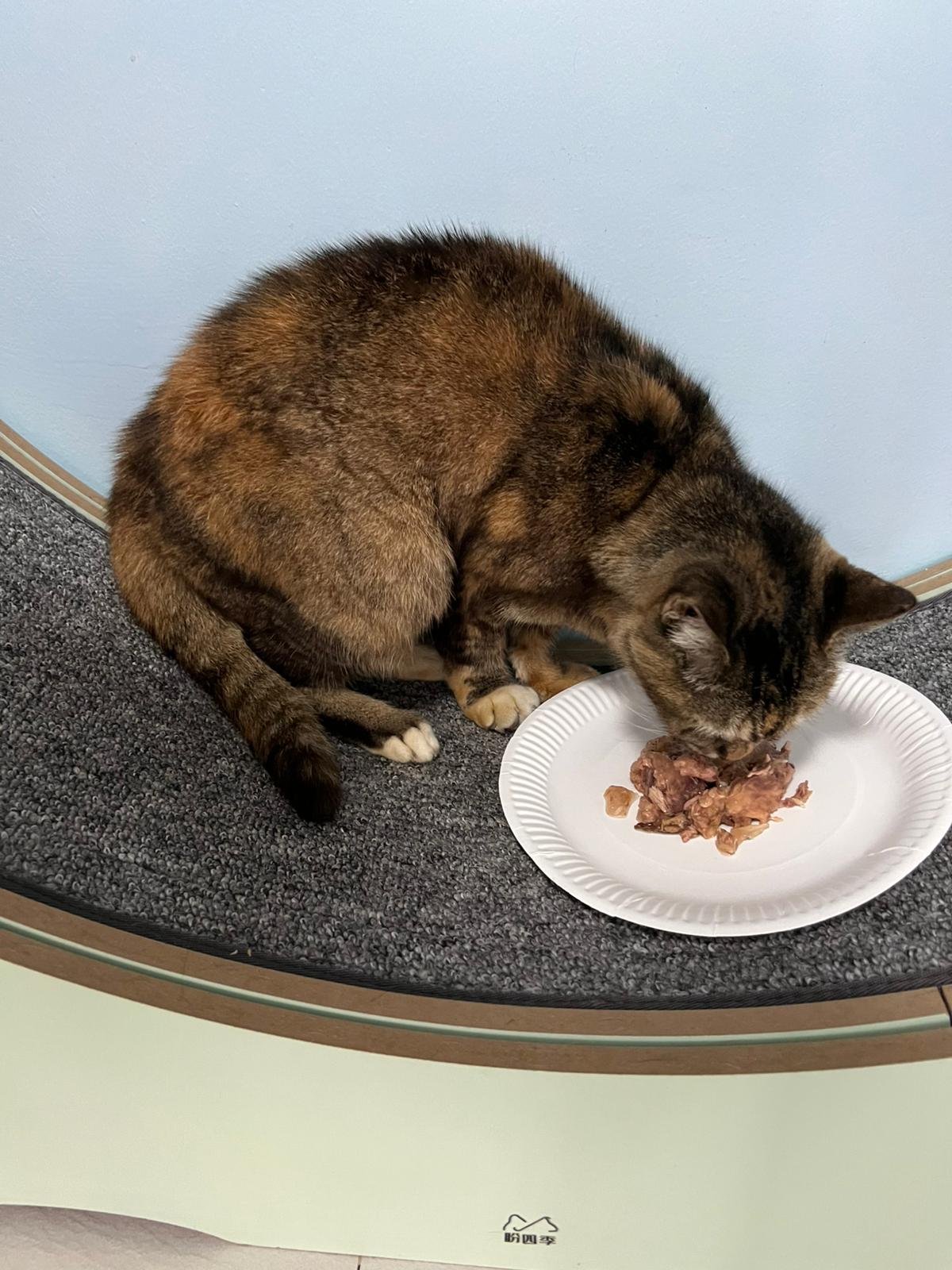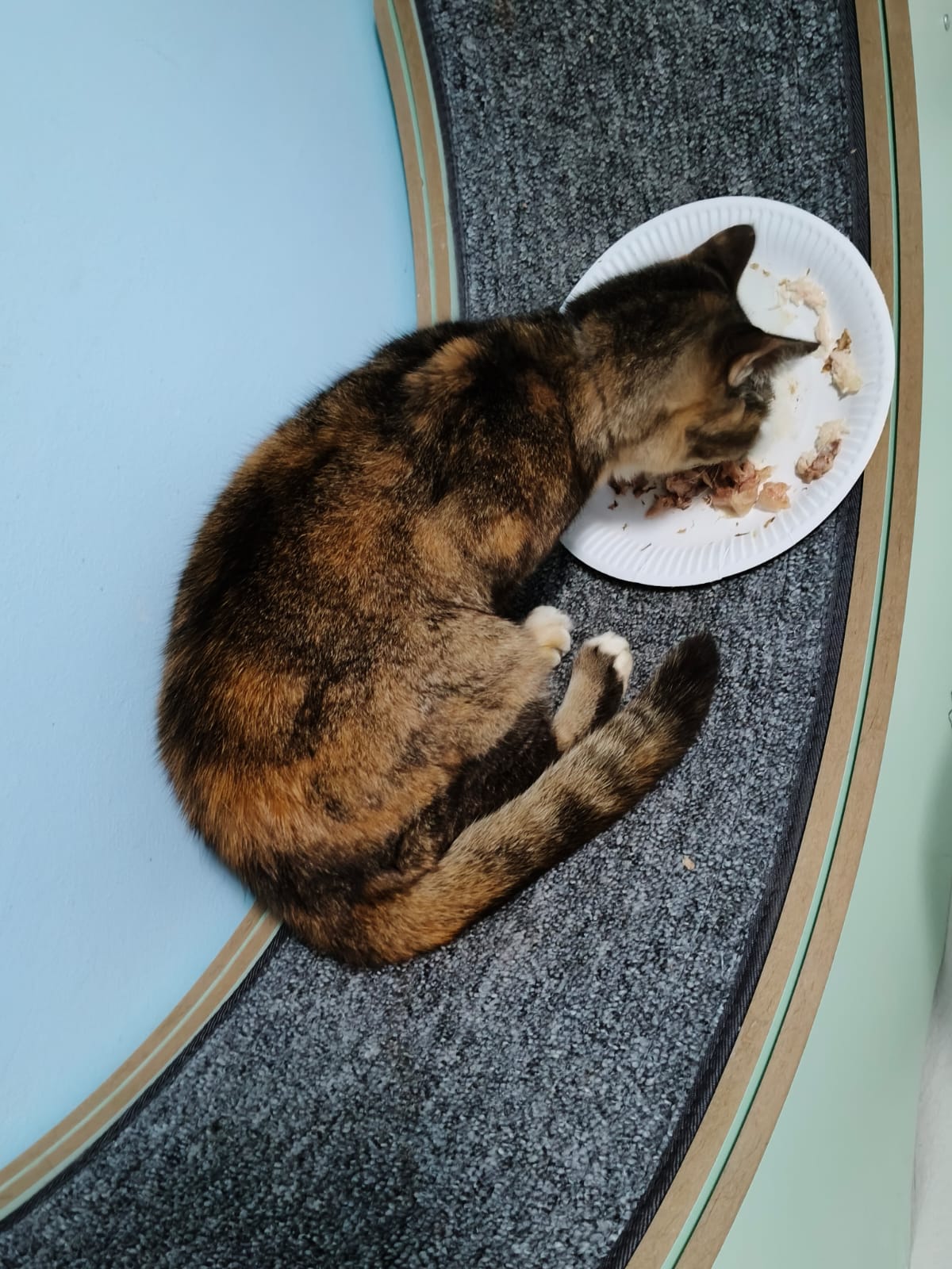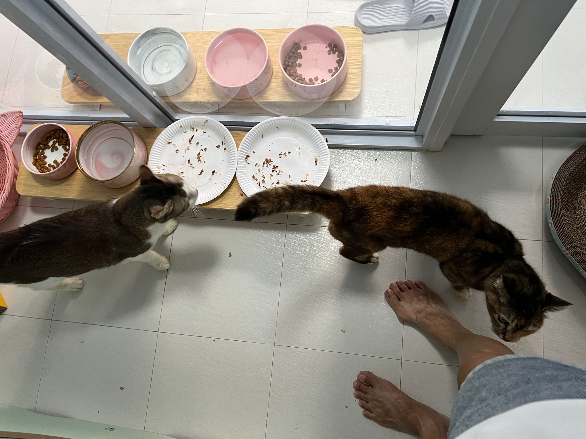 she meow at me to serve food wor. I thought is Benji. Given them tuna w white fish. They eat tgt.