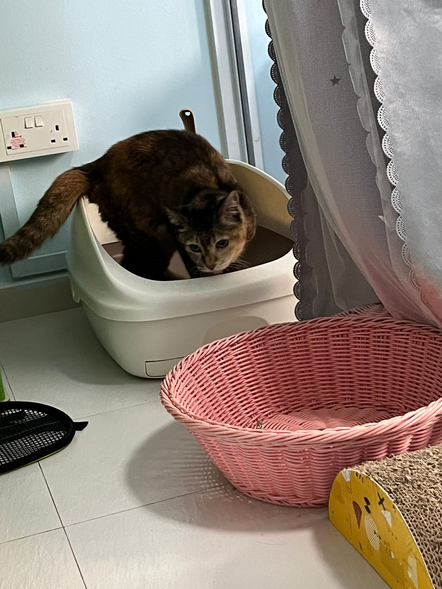 • haha yesterday I make shift one ctn box for her as bin since she didn’t use bin n use bed to pee – today she pee in that make shift box