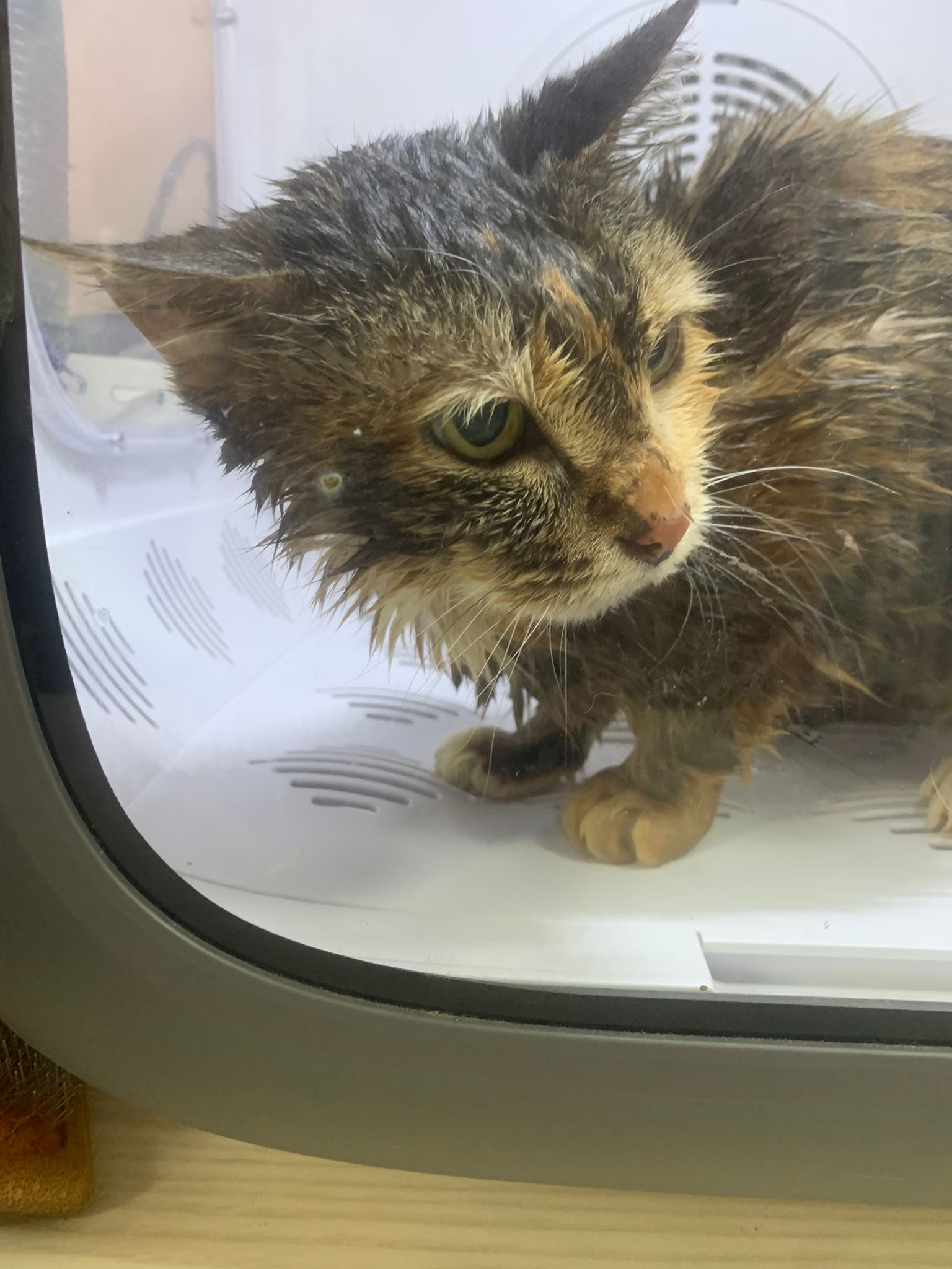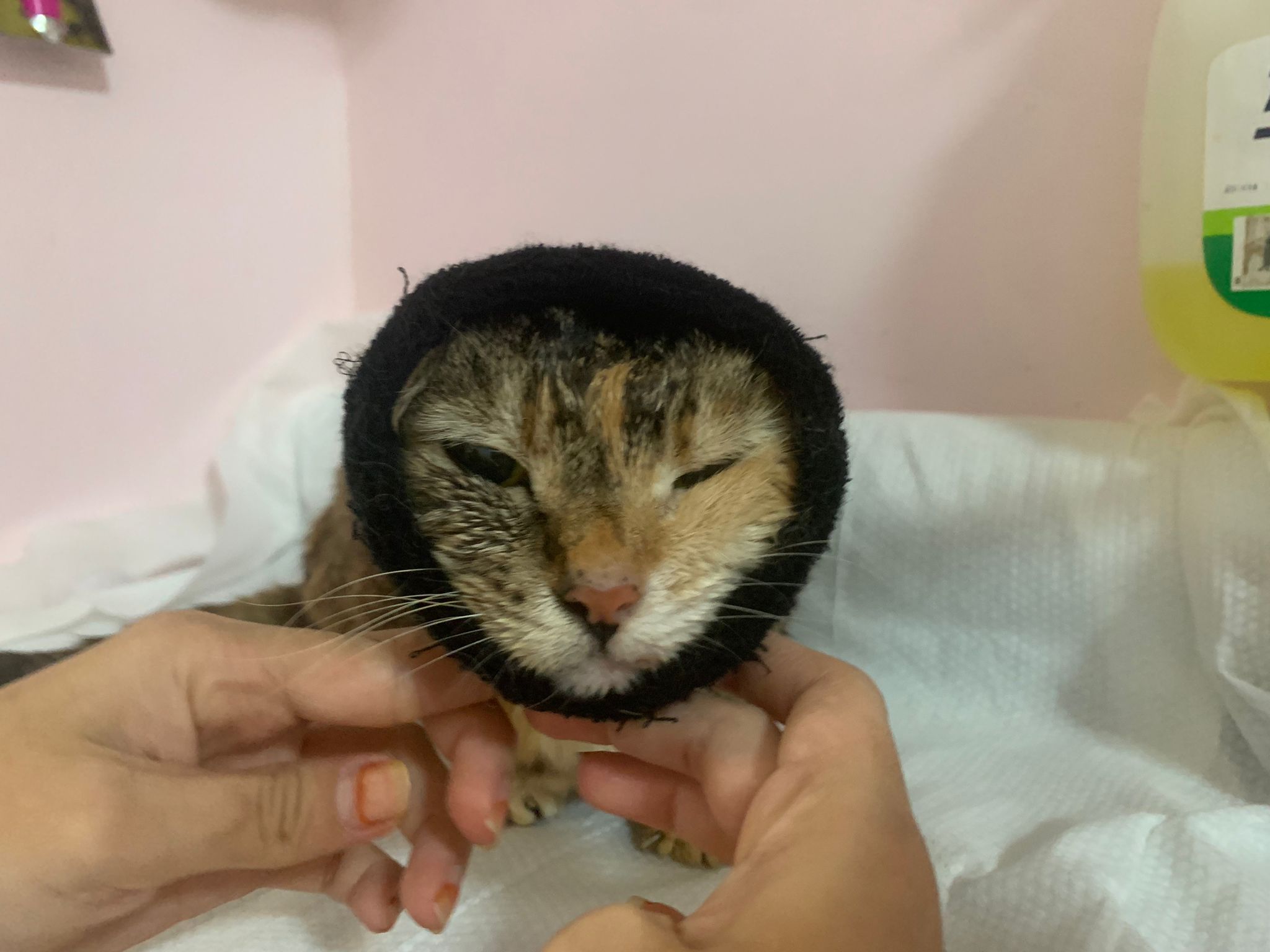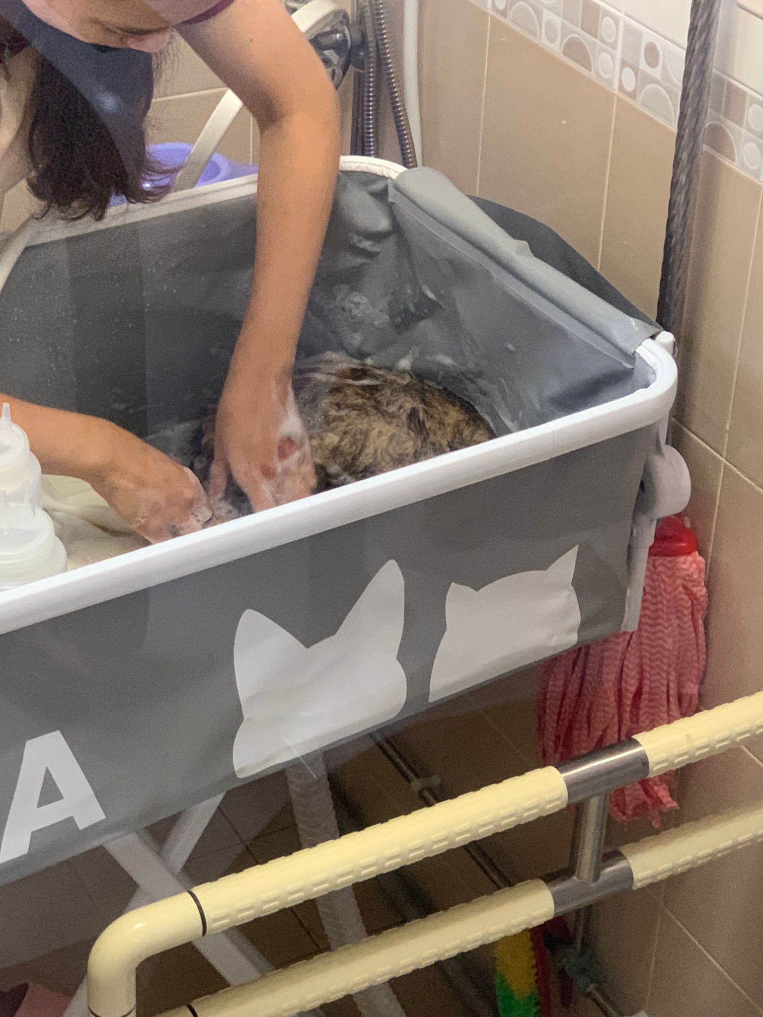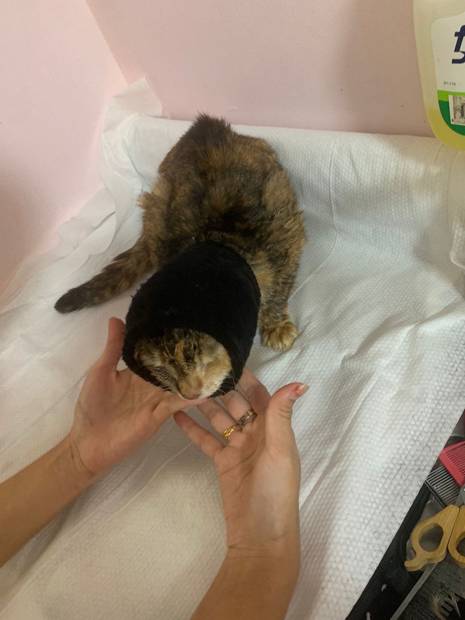 11am+: first to groom cos their nails ingrowth. She is much steadier than expected. Only once she wanna snap cos the right paw all ingrowth, one section swollen. Both front paws use lots of ab powder. She is calm in 猫房. Nails cut very long for her.
