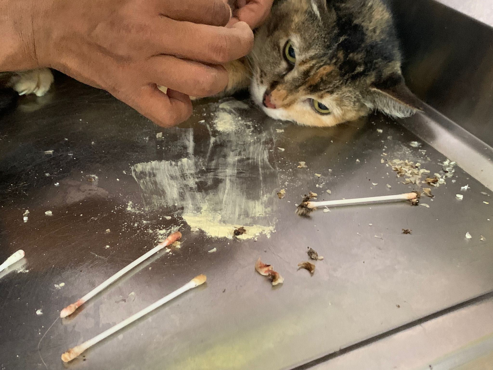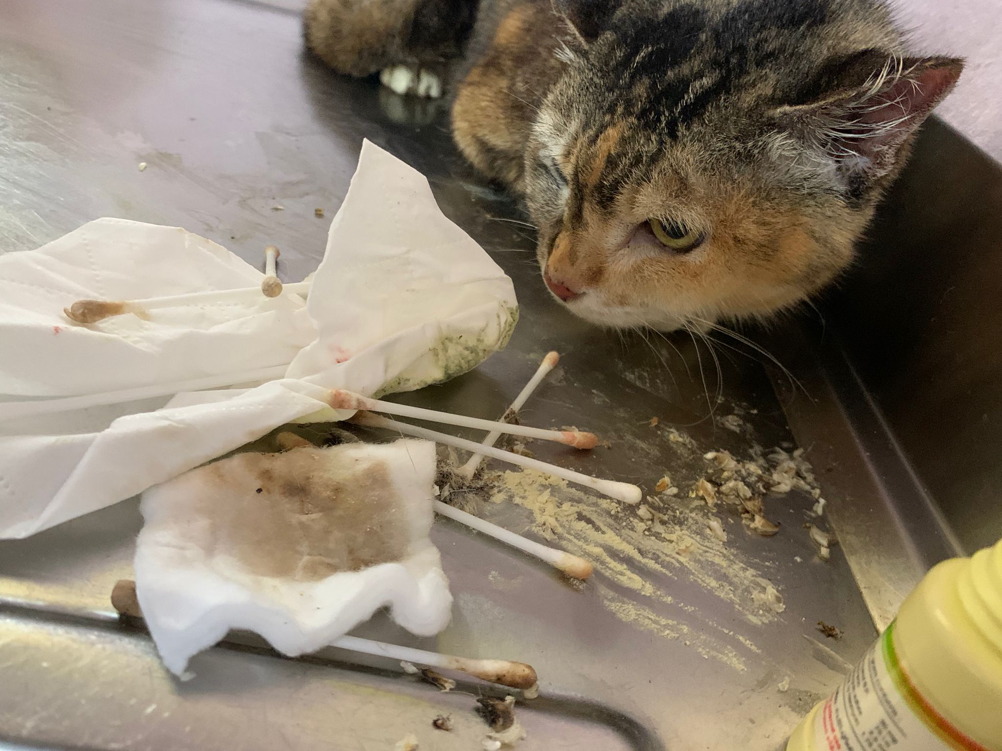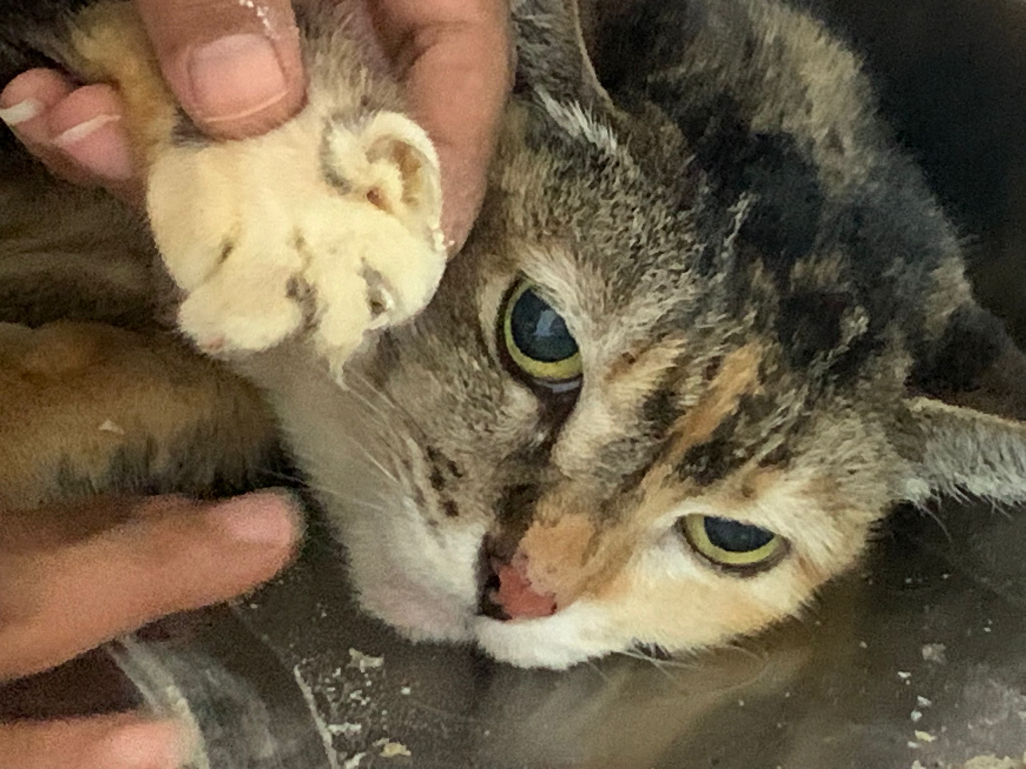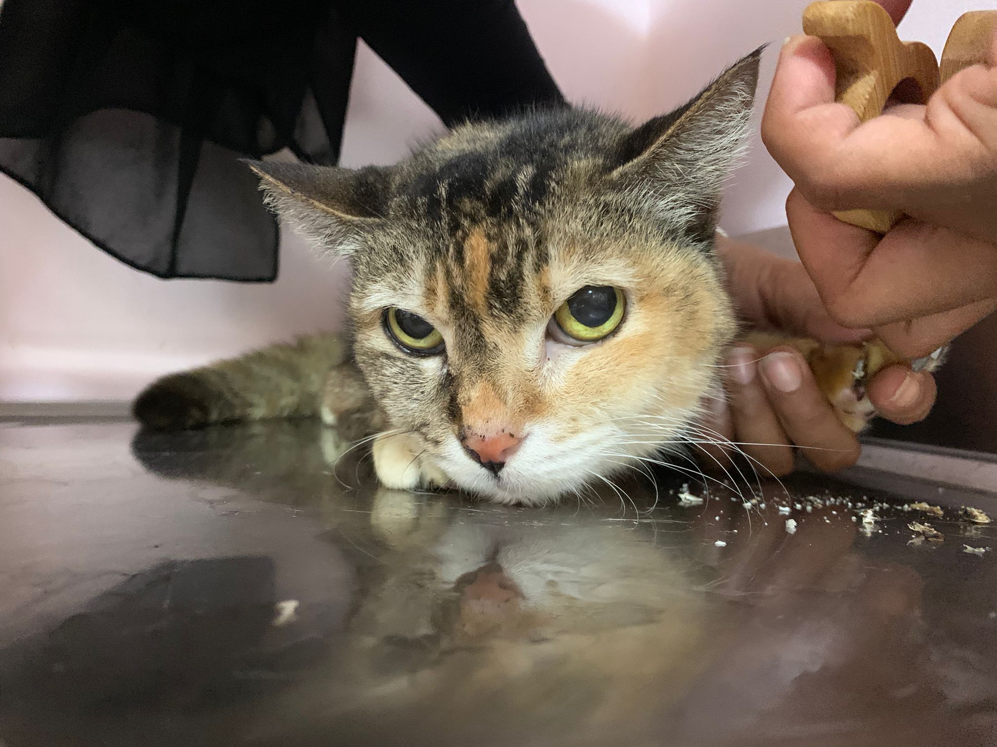 11am+: first to groom cos their nails ingrowth. She is much steadier than expected. Only once she wanna snap cos the right paw all ingrowth, one section swollen. Both front paws use lots of ab powder. She is calm in 猫房. Nails cut very long for her.