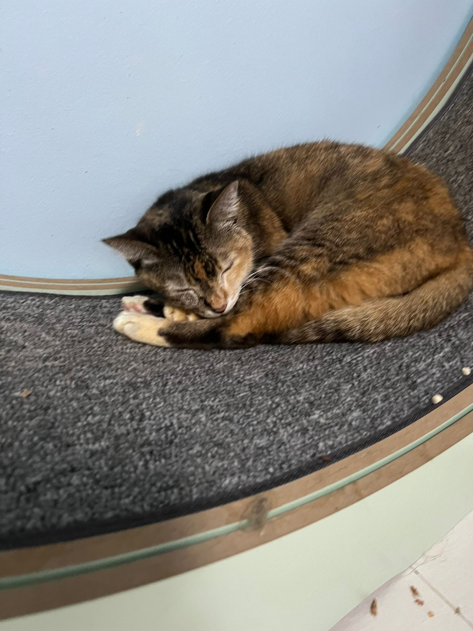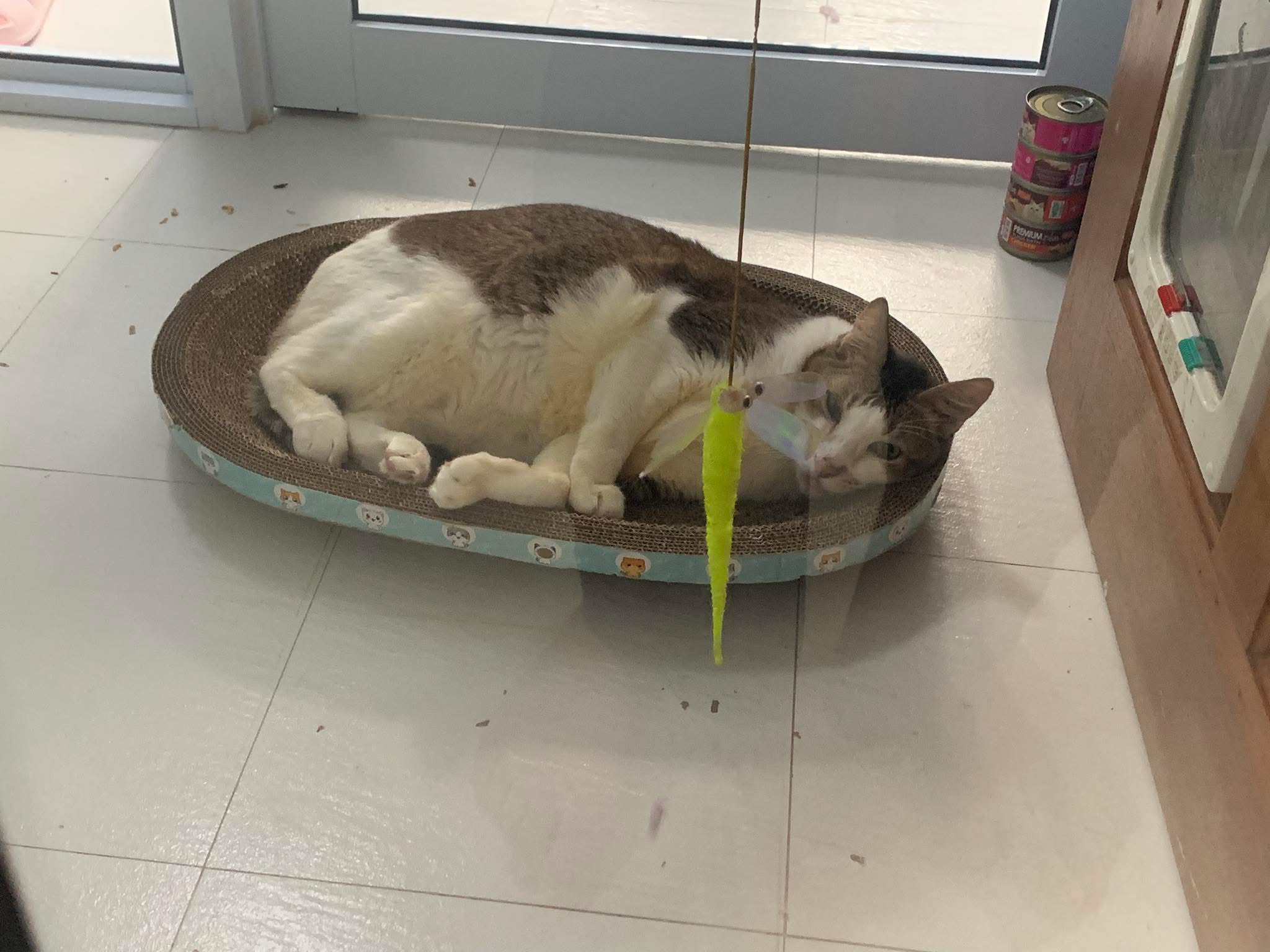 She was picked up from a void deck when she was a 2 weeks’ old kitten. She is with me since then. She is a sweet girl but gets annoyed and irritated easily. She is quite tolerant towards the 2 younger cats. She is quite picky about food.