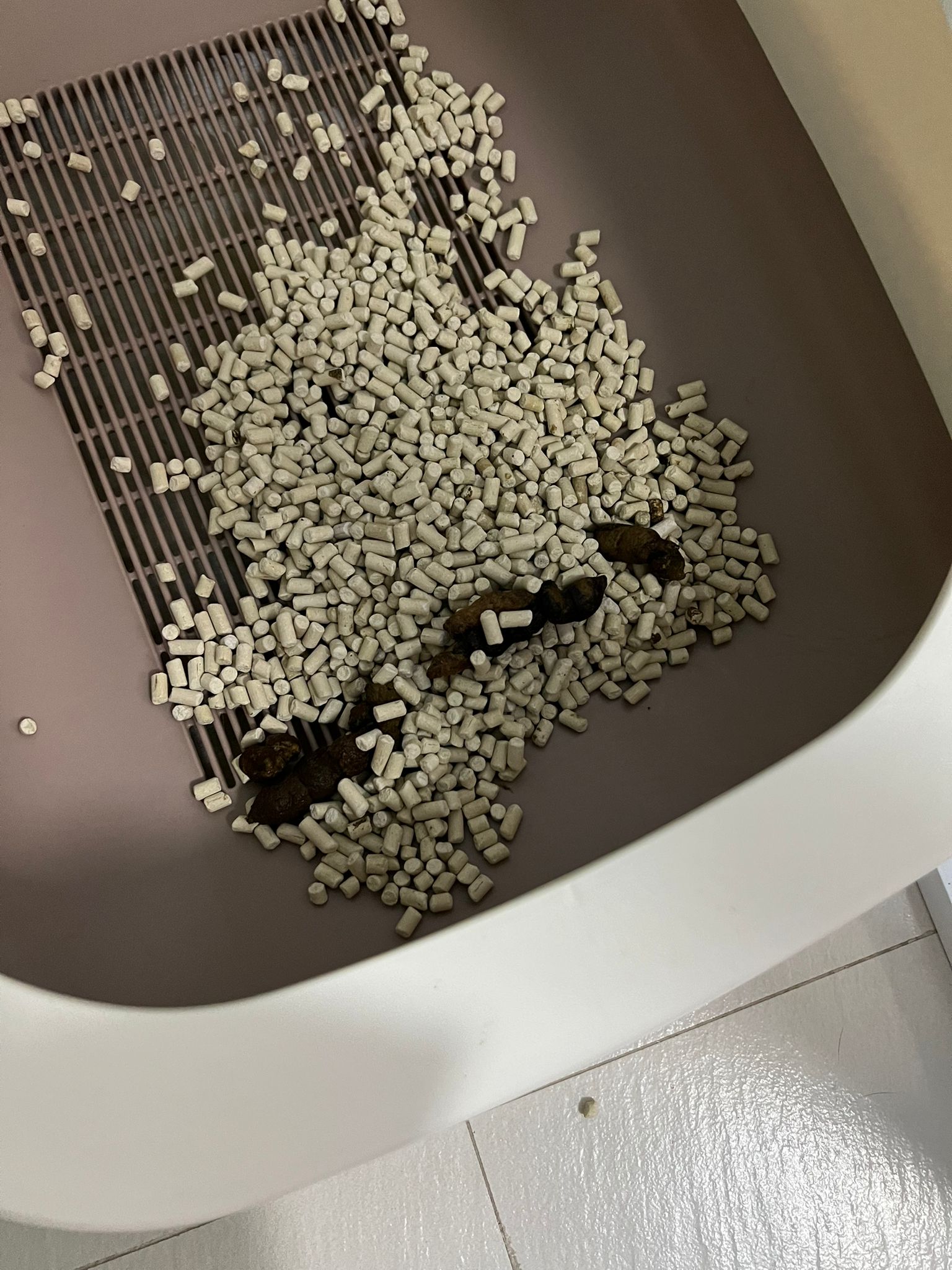 Backlog to yesterday noon poo: 3 sets 8/10, 6/10, 4/10. Someone’s poo is harder.