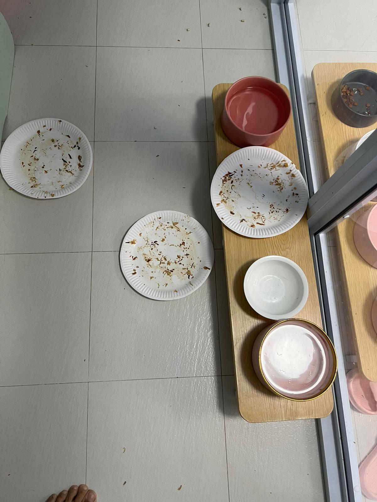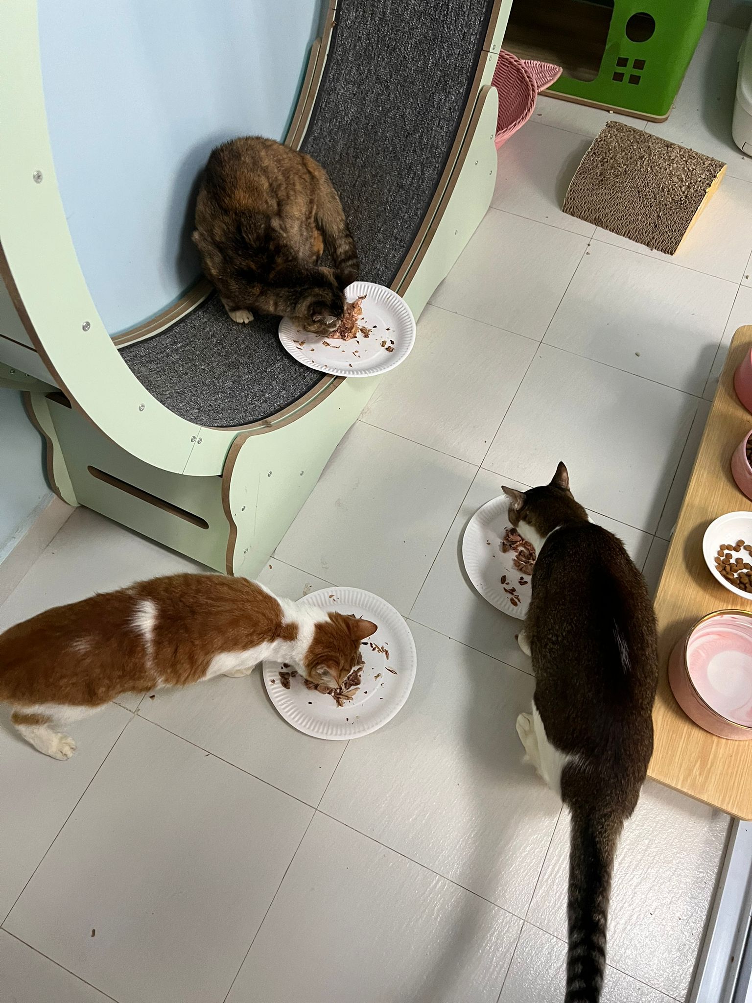 10am+: wa their room 3 plates all quite full, like 2.5 plates left untouched, it’s tuna w pumpkin they don’t like ah.