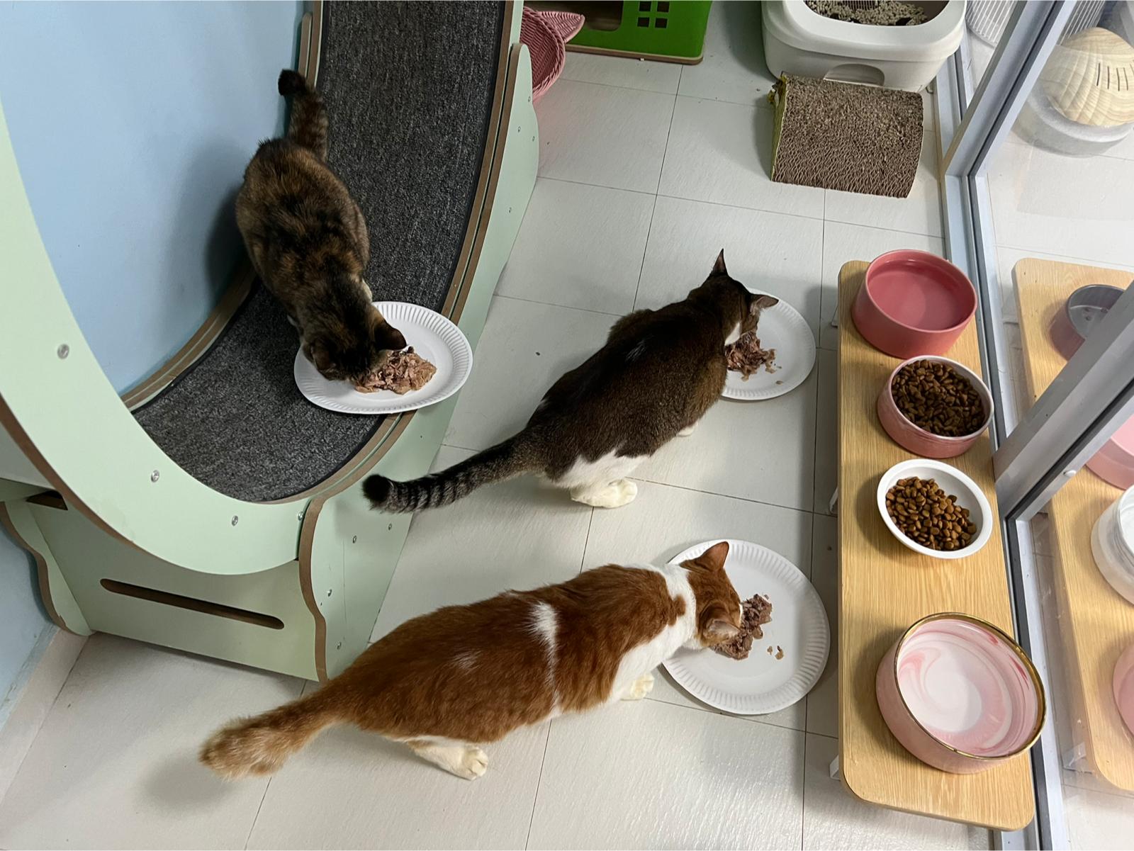 9am+: food almost all clear. Kibble bowl is empty again. They like RC urinary. 2 sets of poo, 4/10. 5/10. all 3 of them eat tgt for breakfast again.