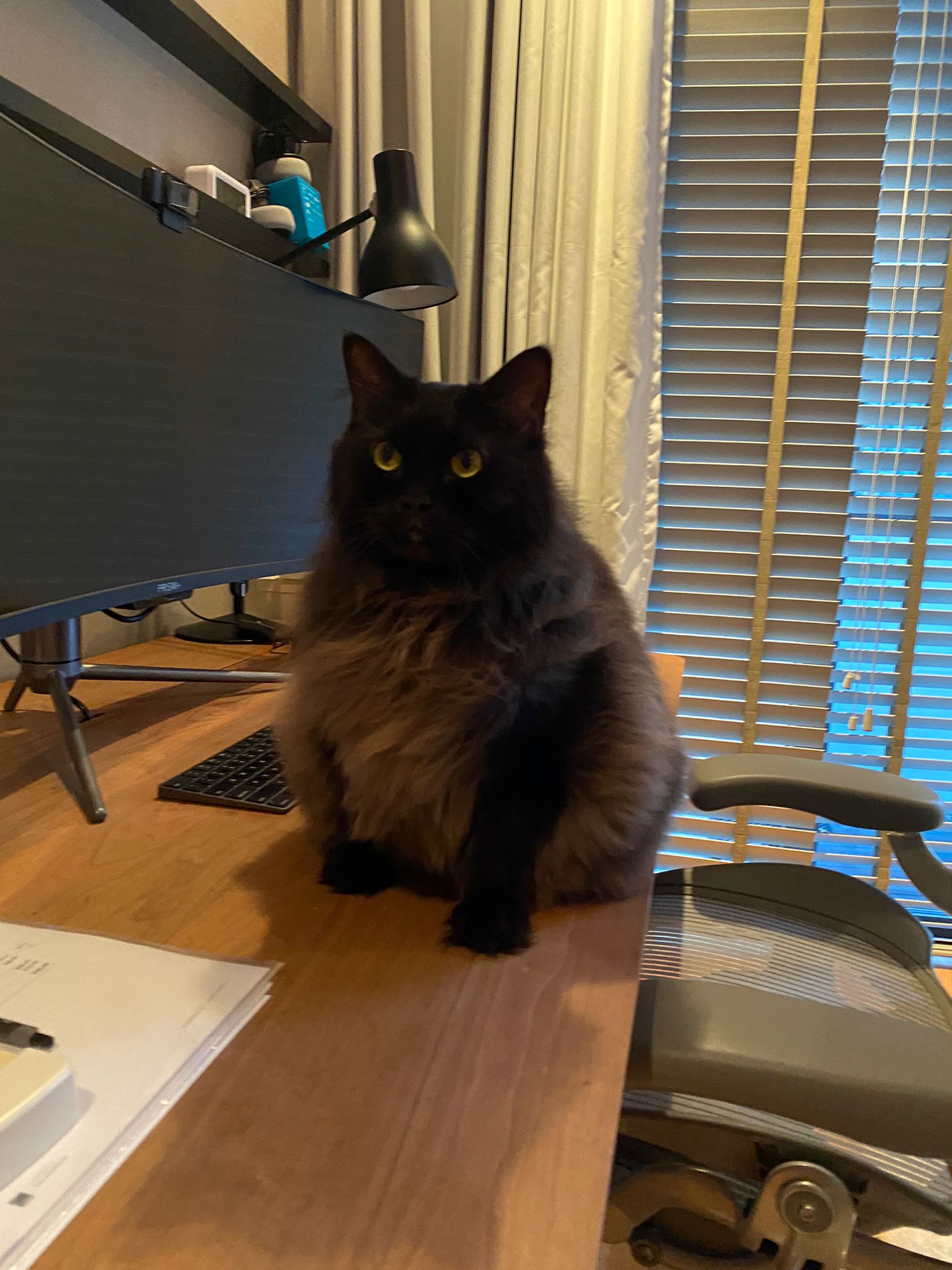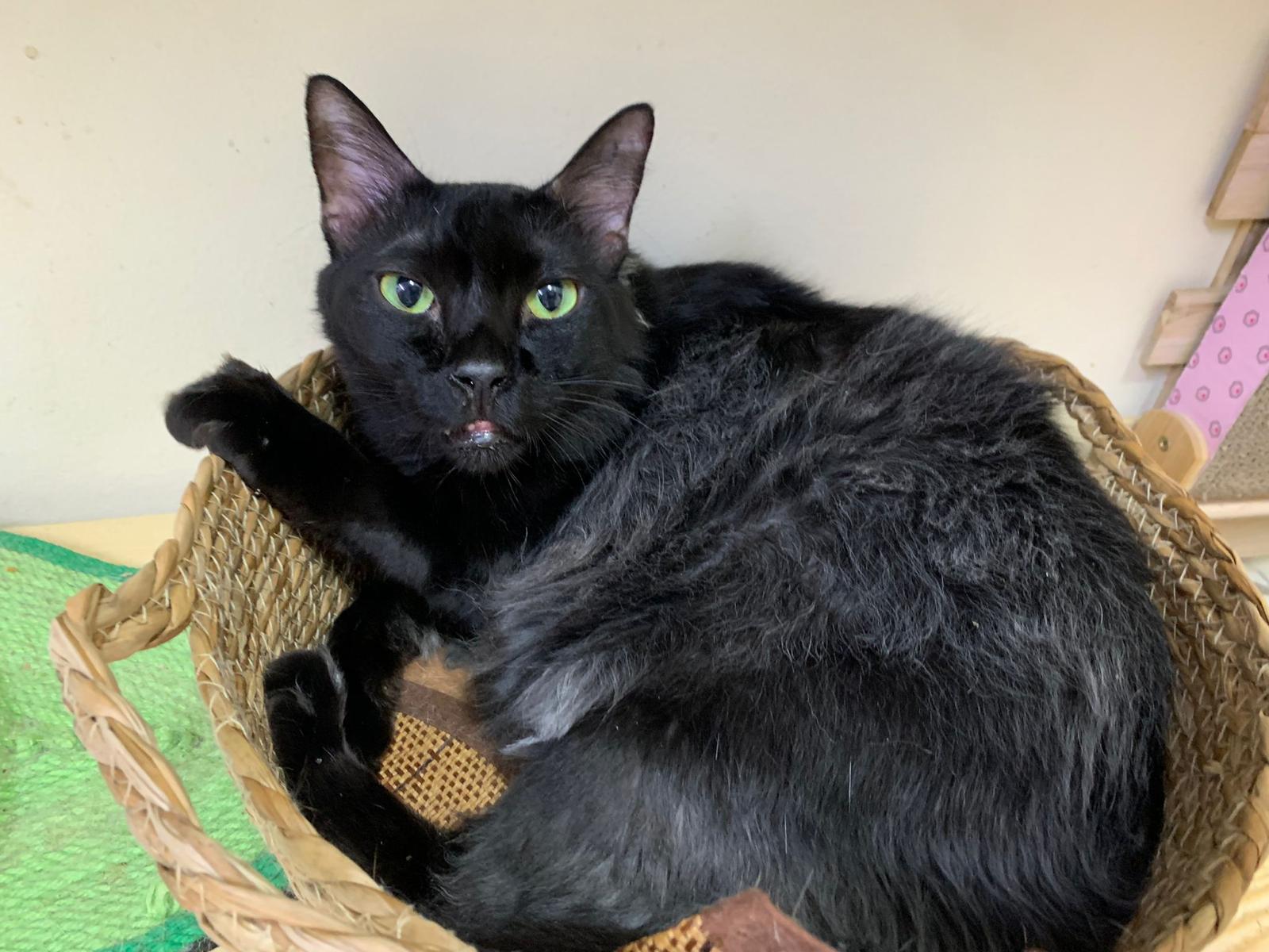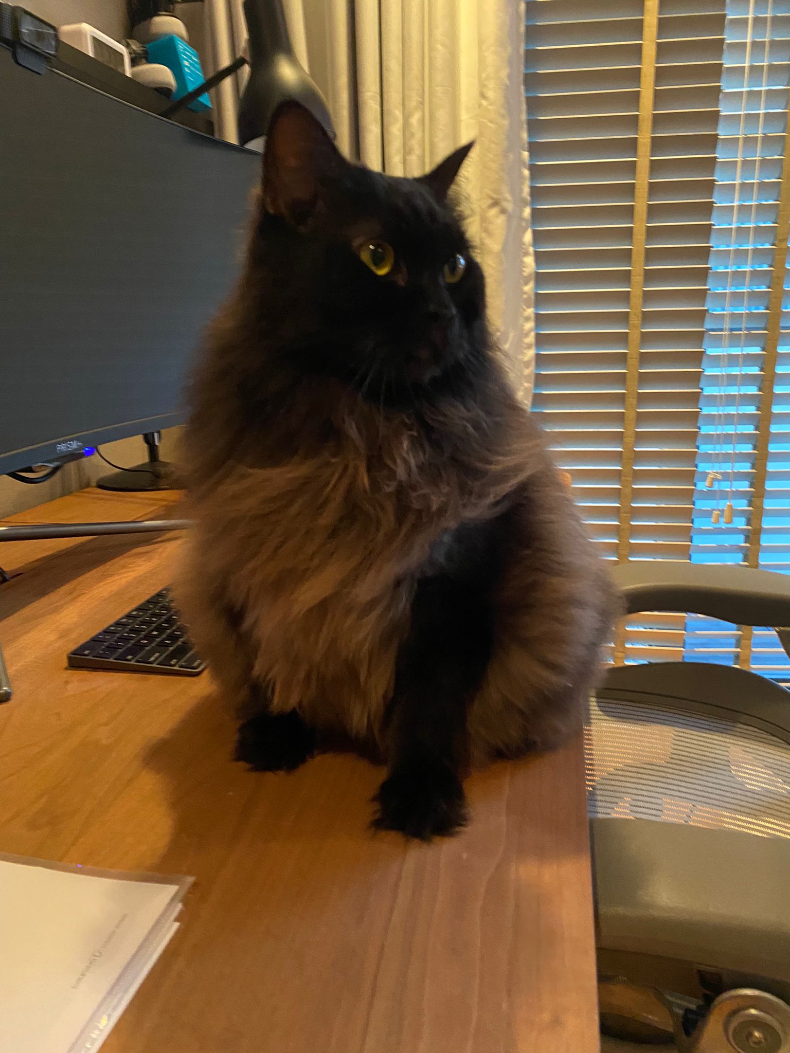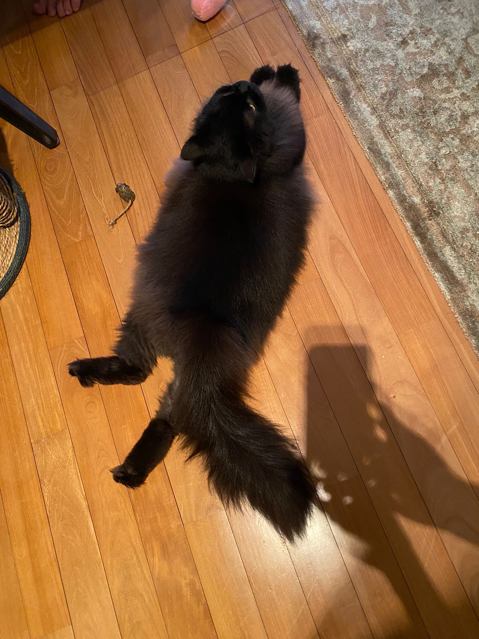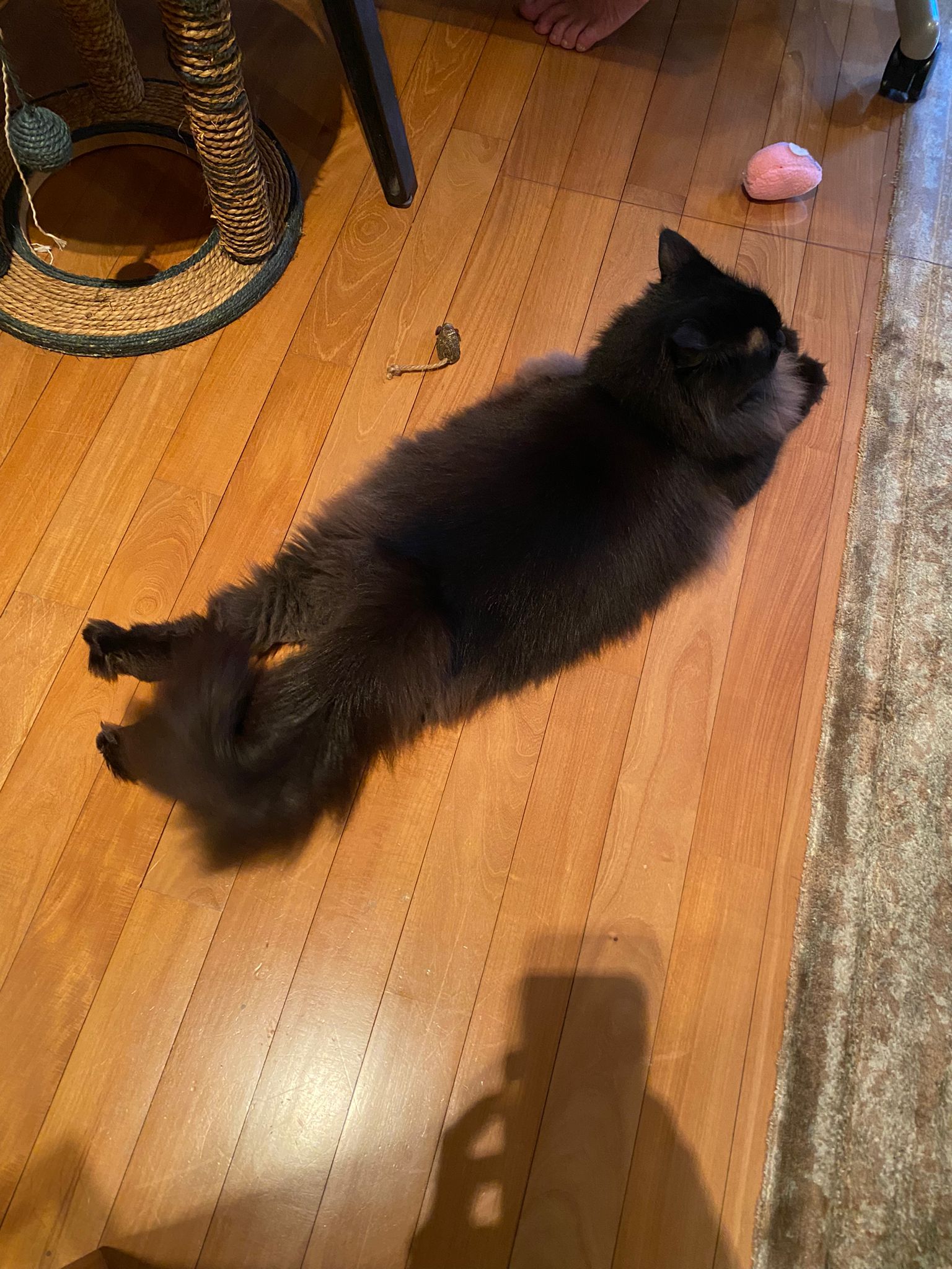 Found a new cat by the feeder. Fluffy tail one. Black cat.