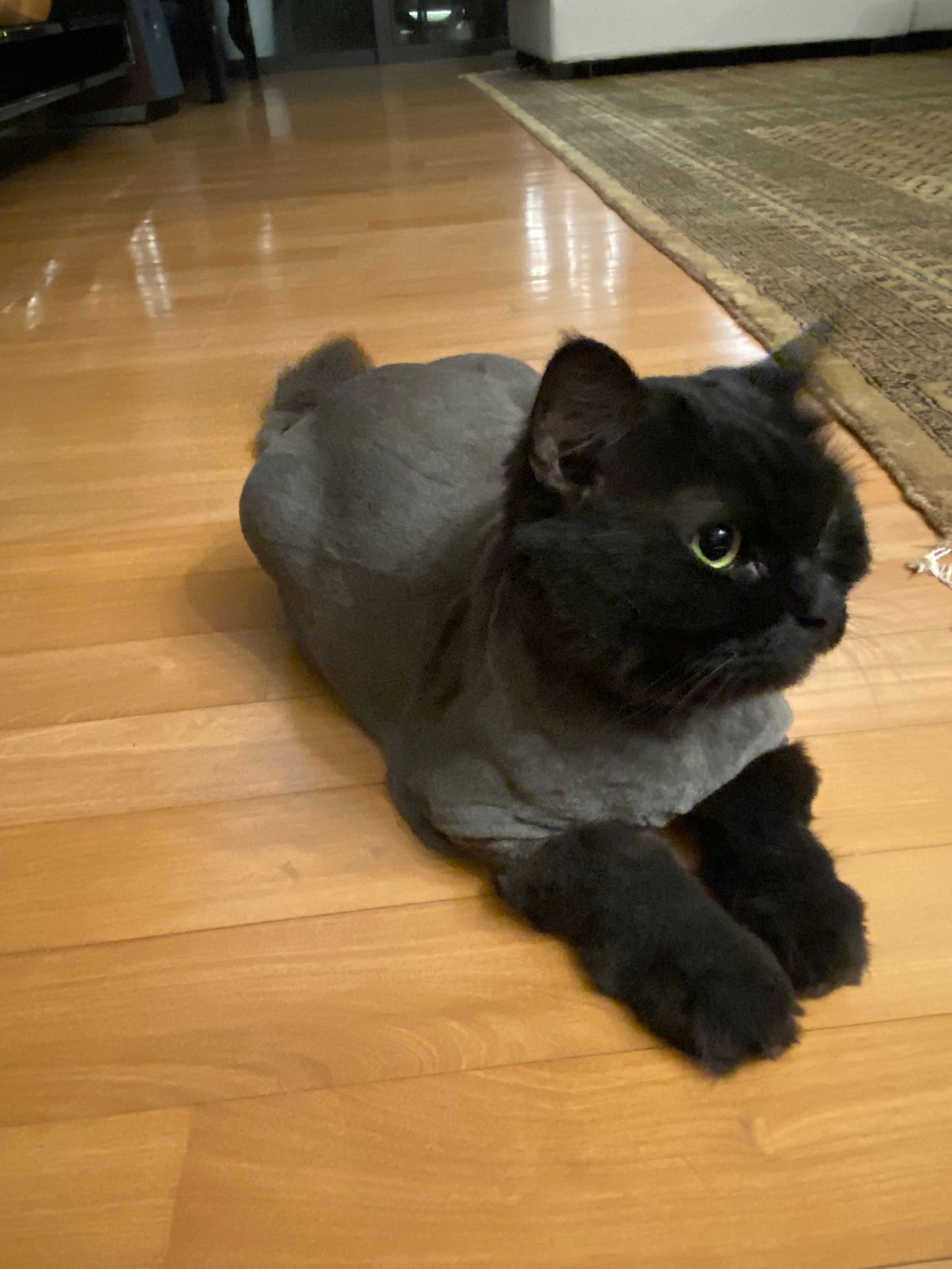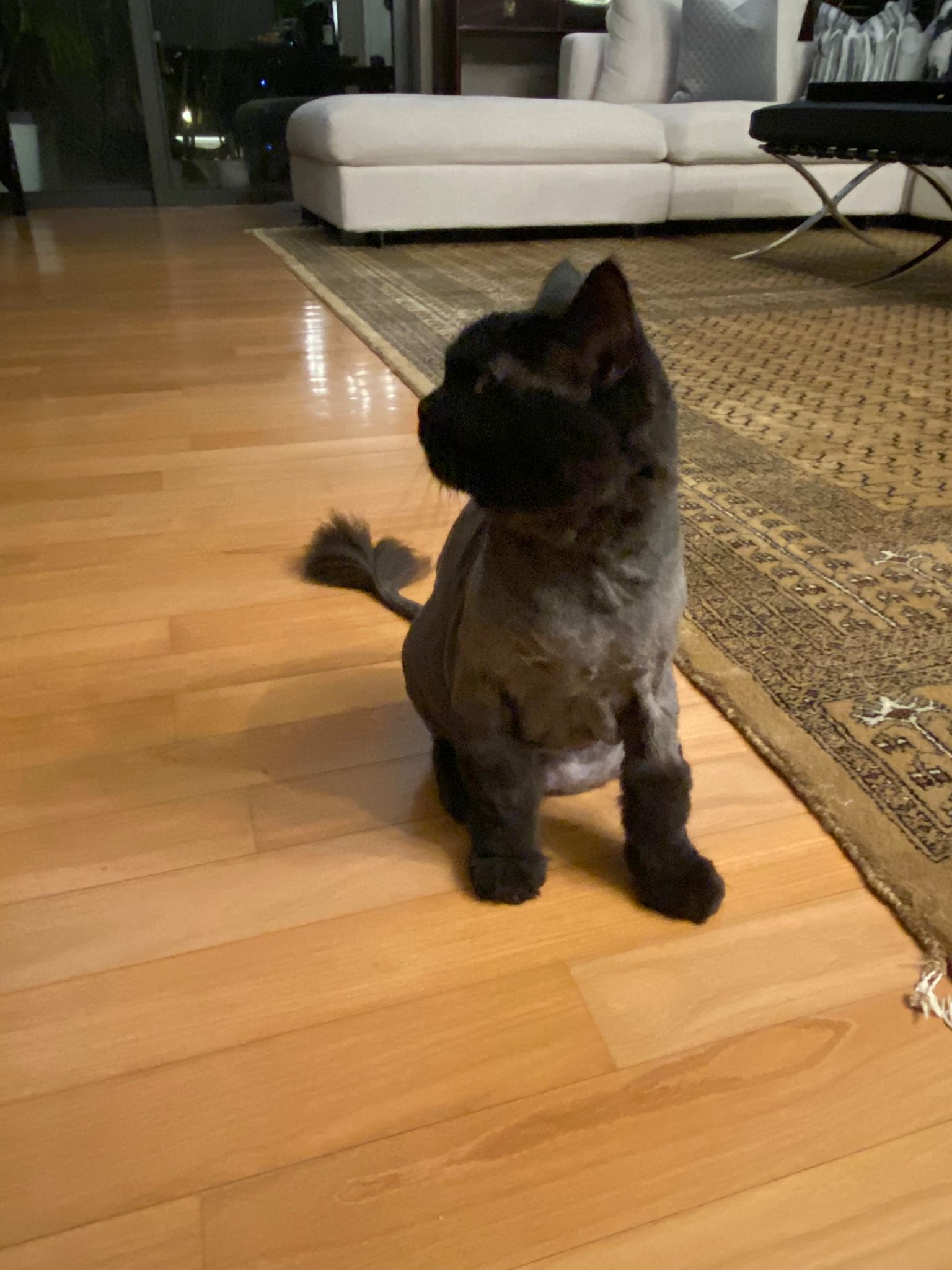 In view of her mites and checking for flank spay marks, lion cut is obviously the plan.