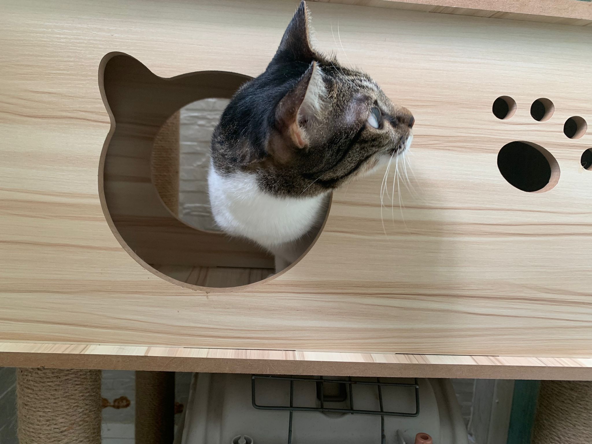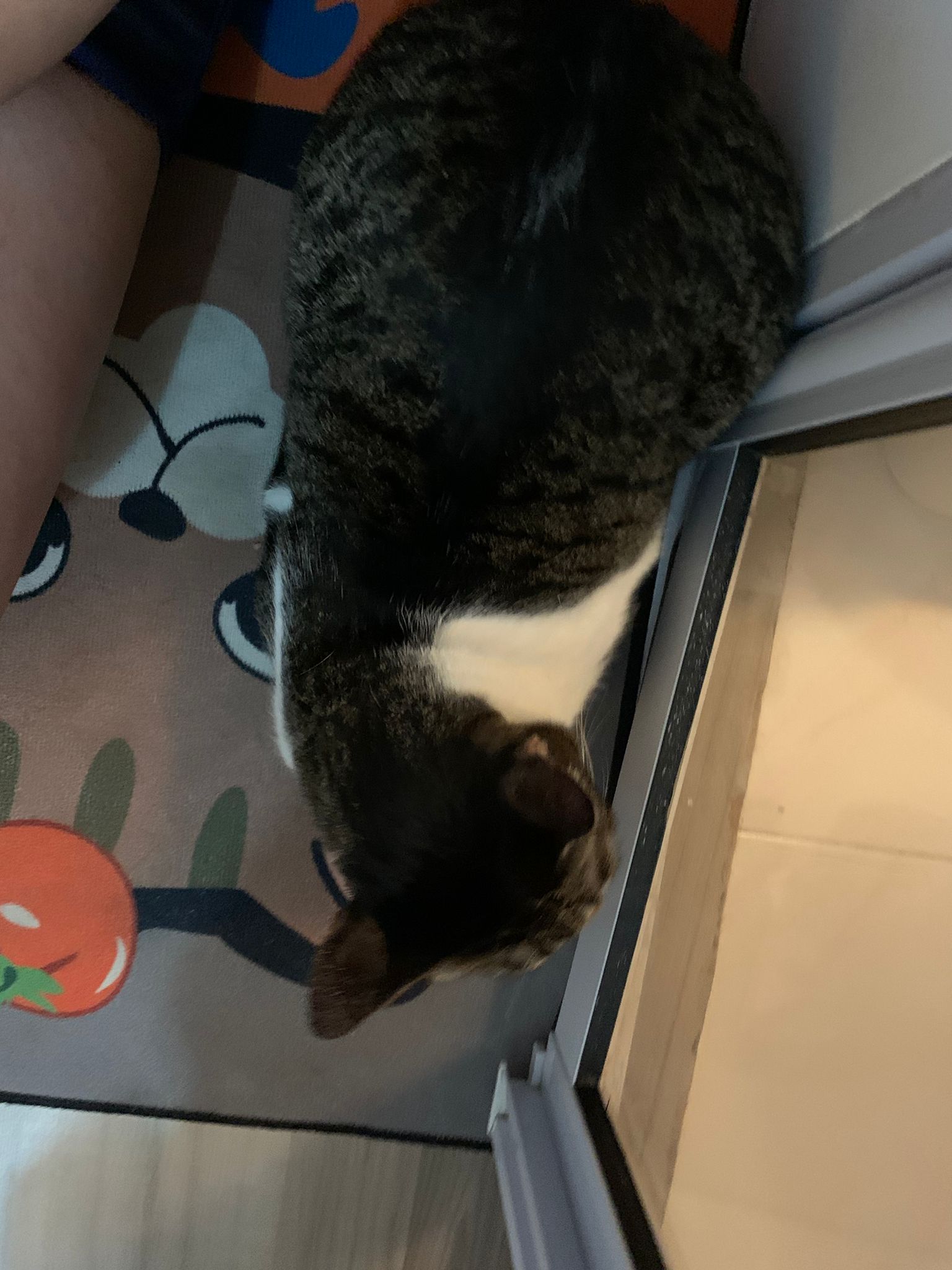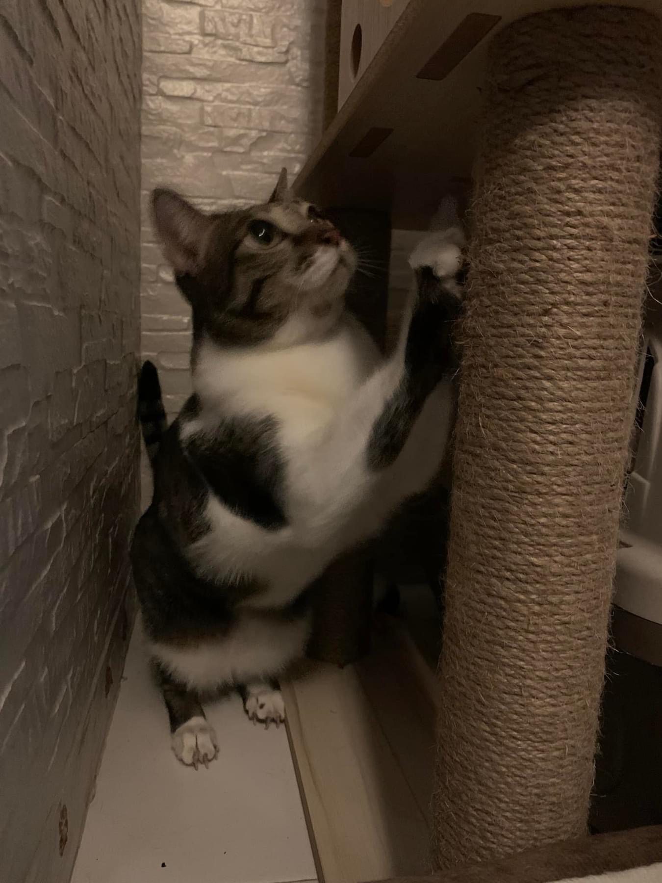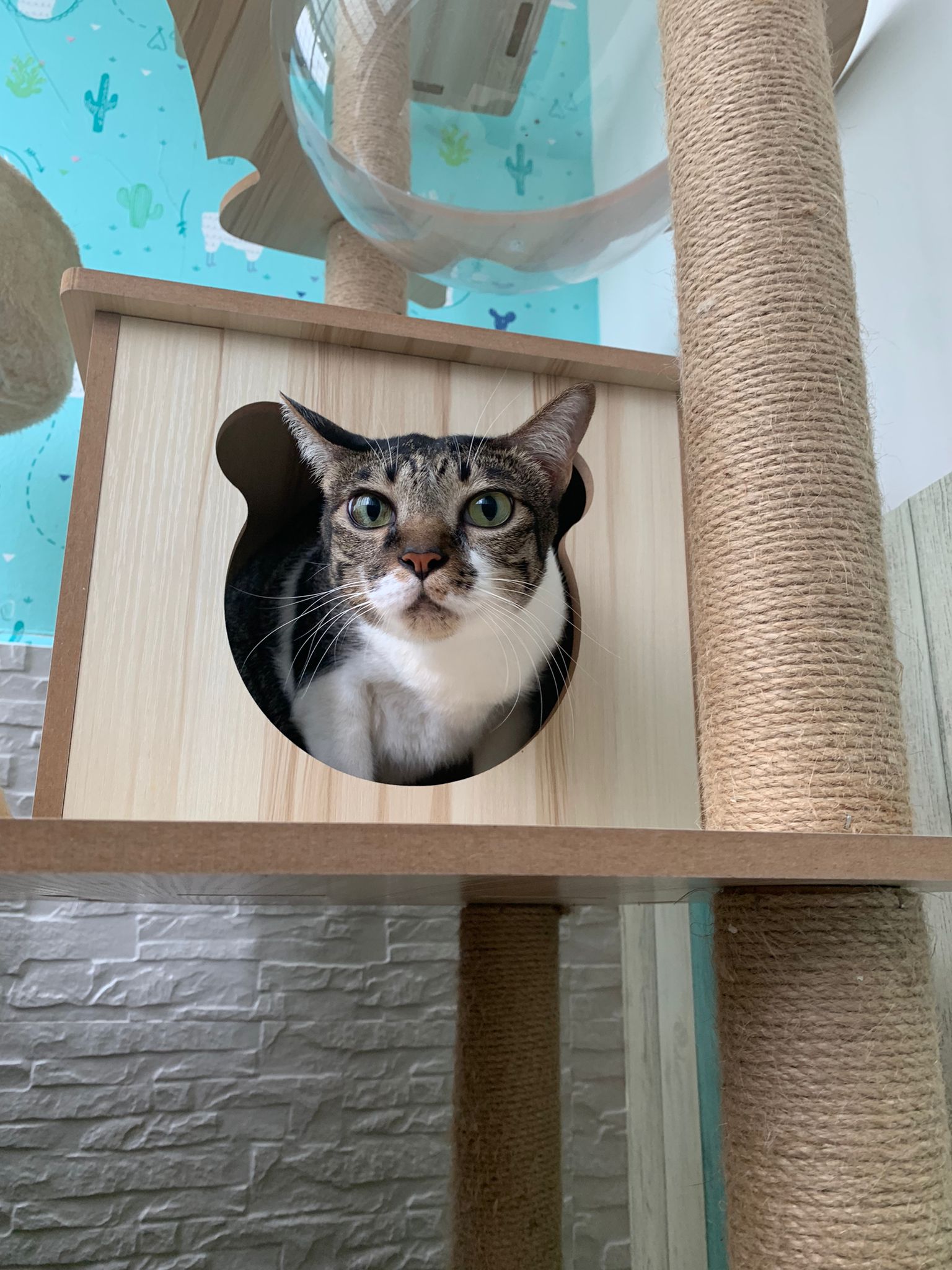 • 10pm: make peace w her since she don’t want leave the room, let her rest in the cupboard and give her a new paw toy