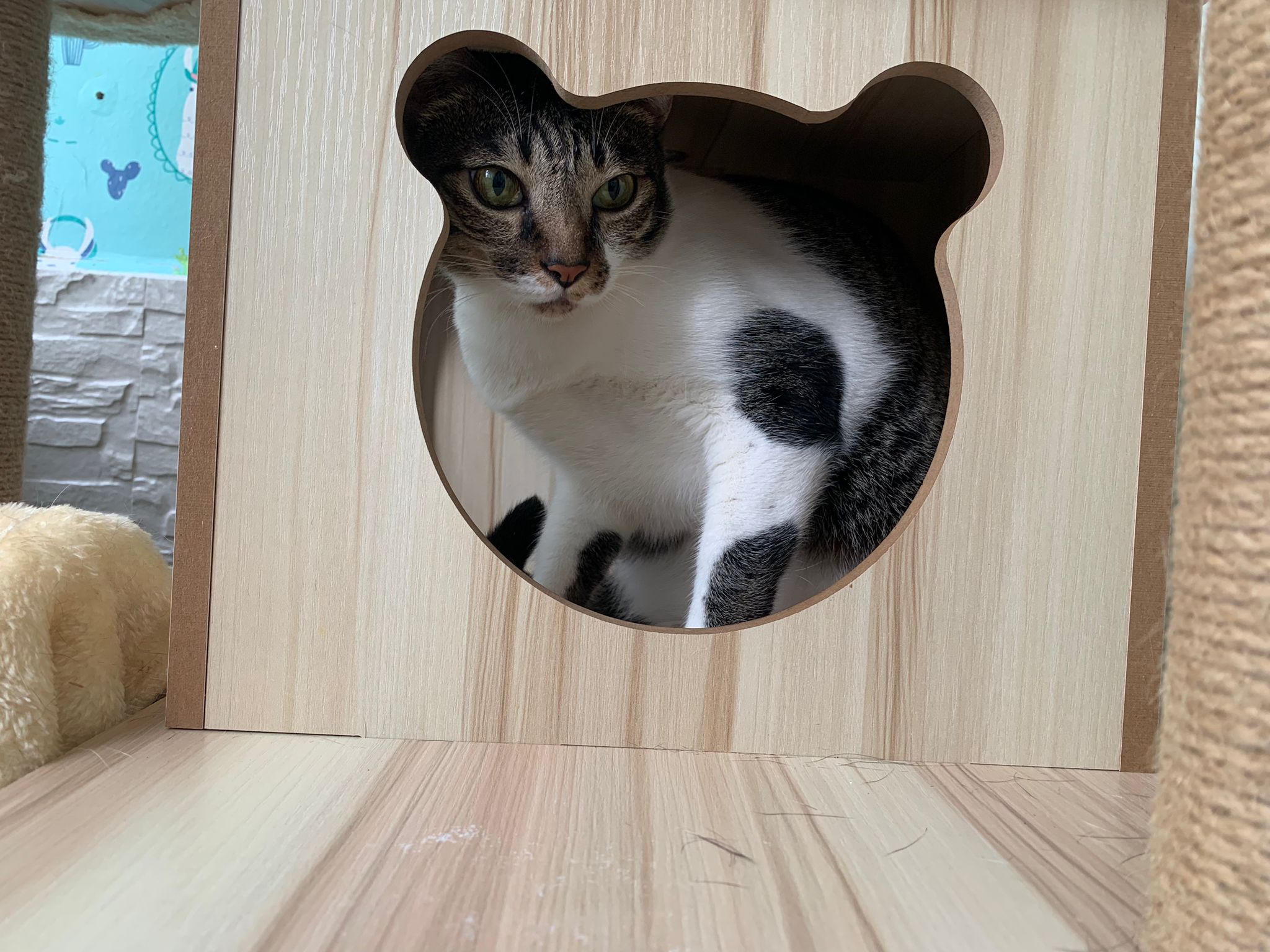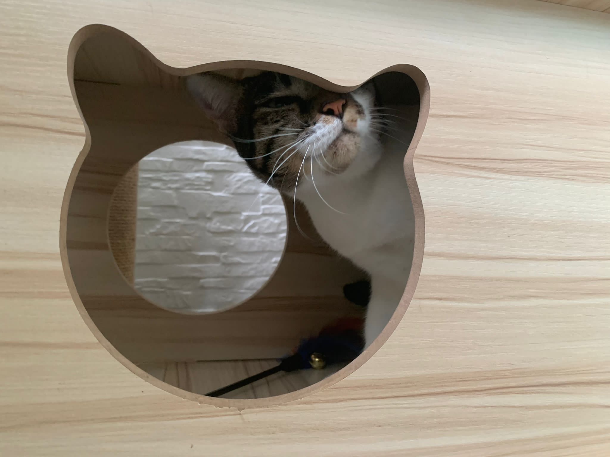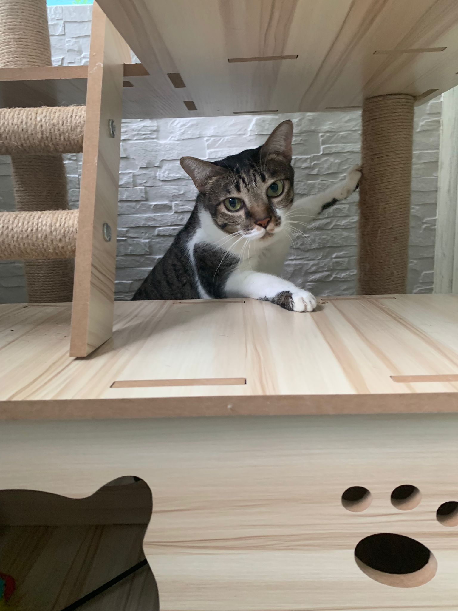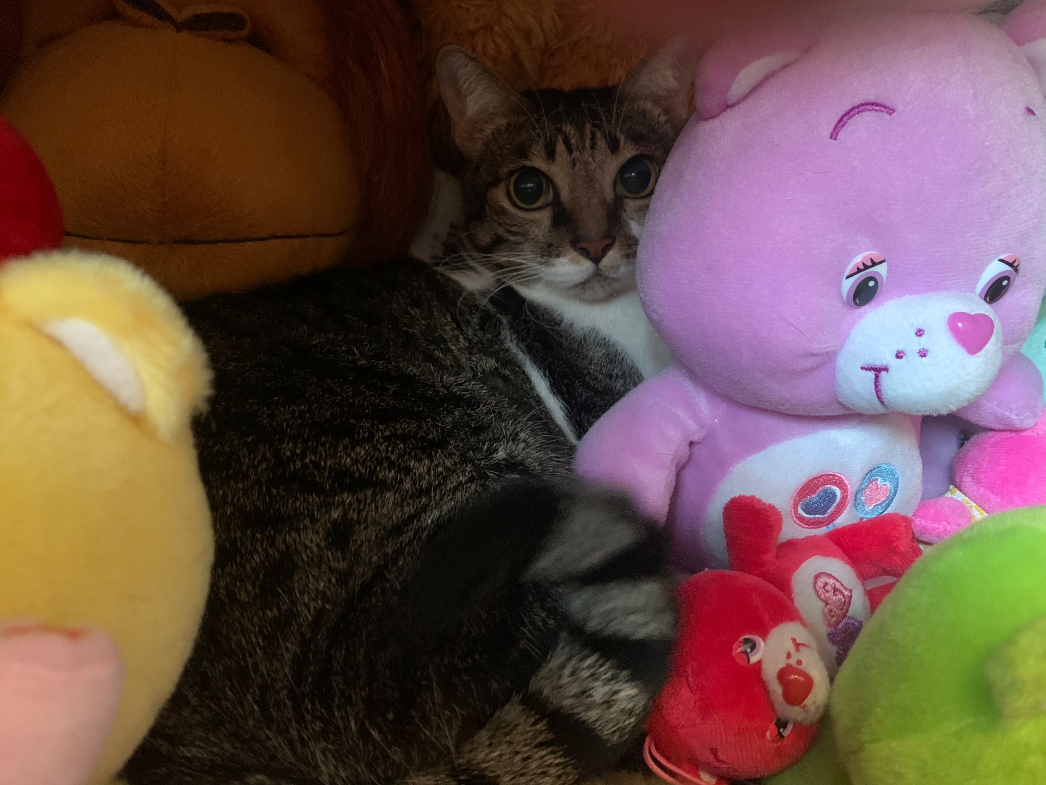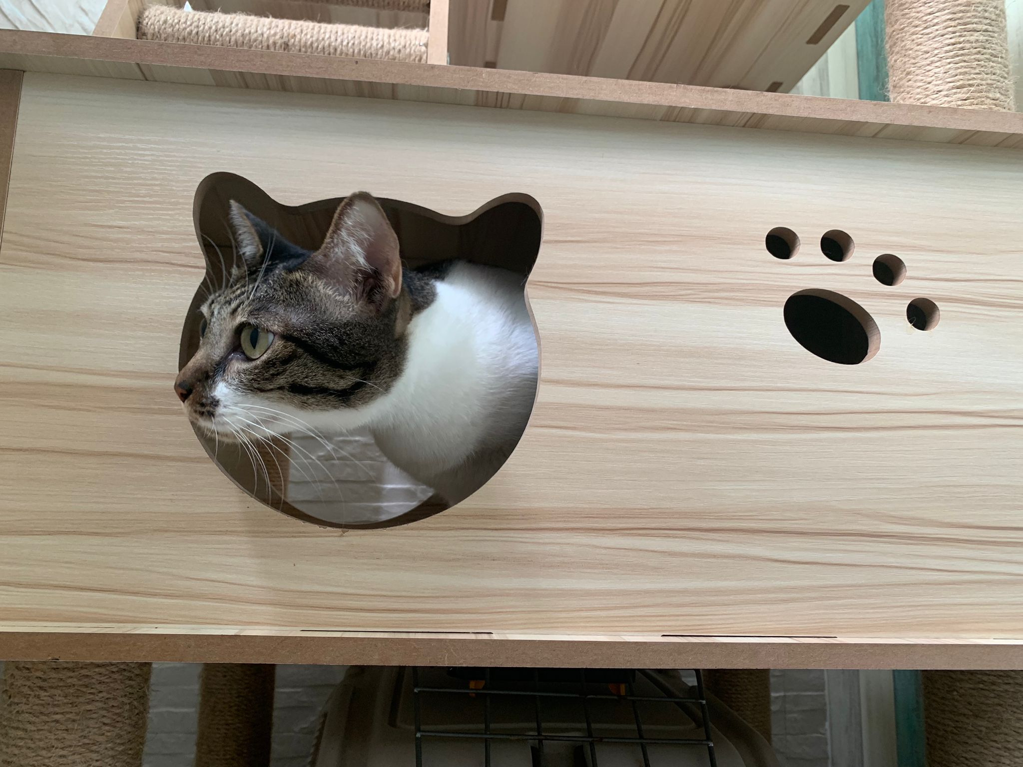 • 10pm: make peace w her since she don’t want leave the room, let her rest in the cupboard and give her a new paw toy