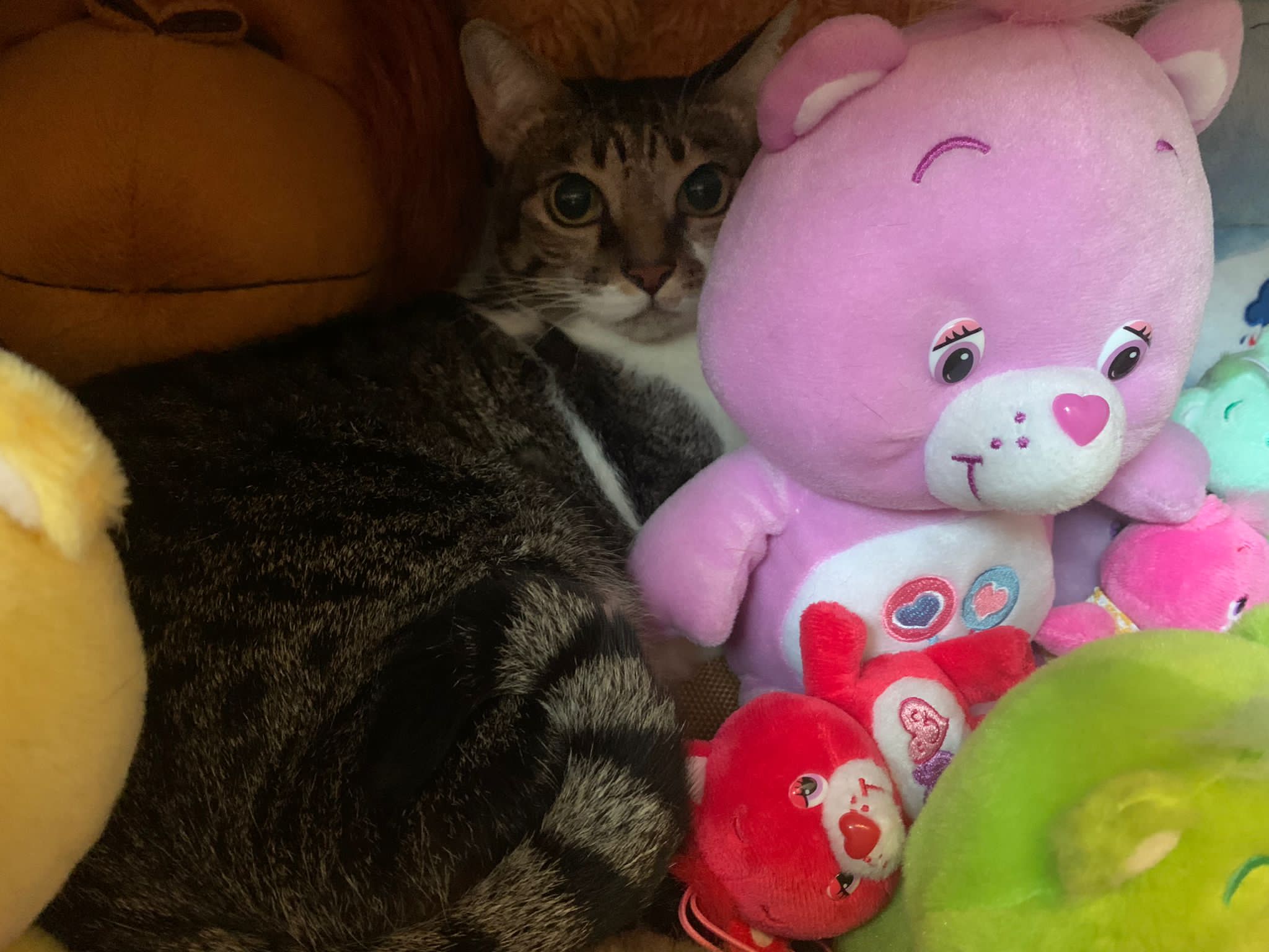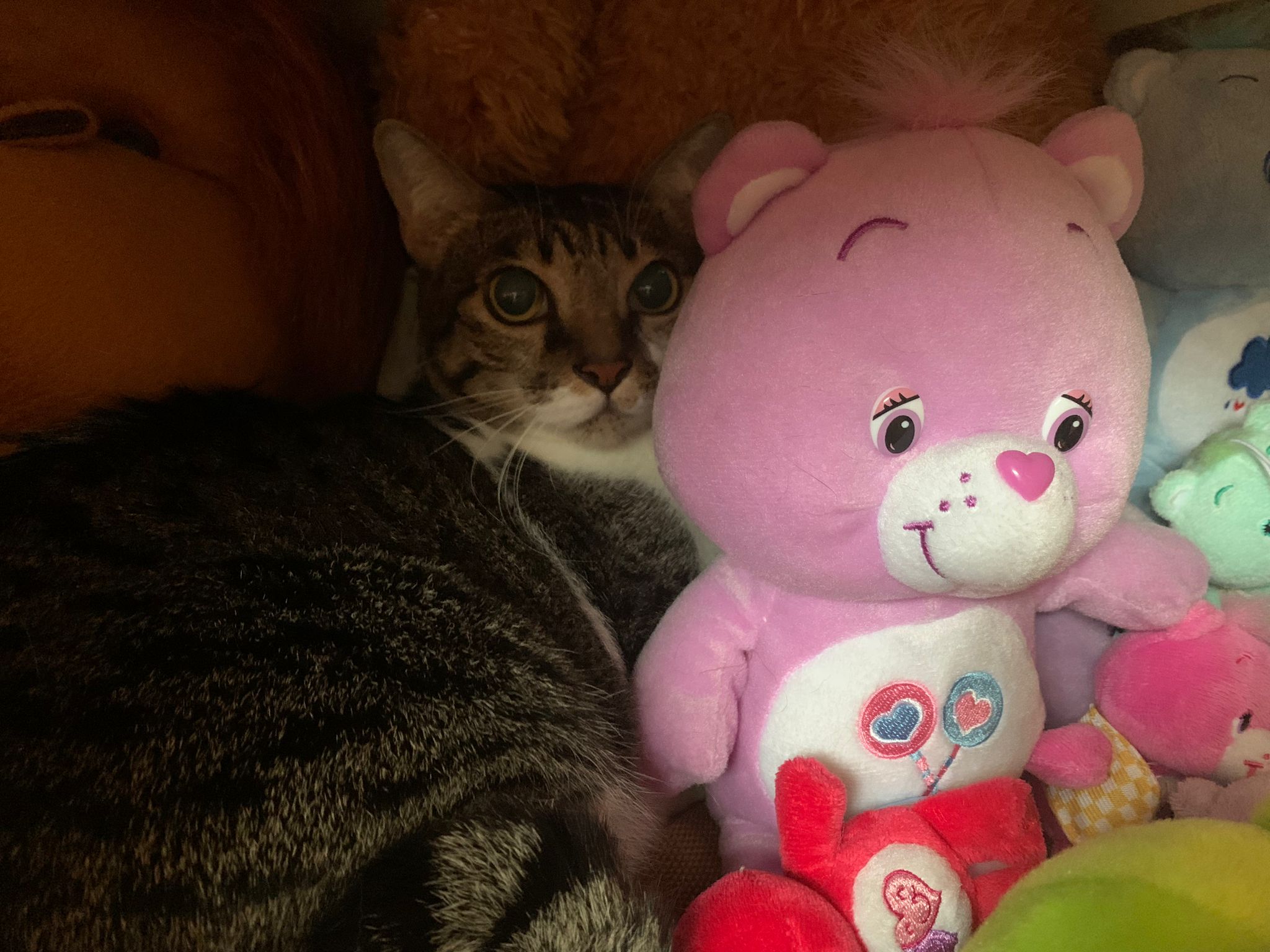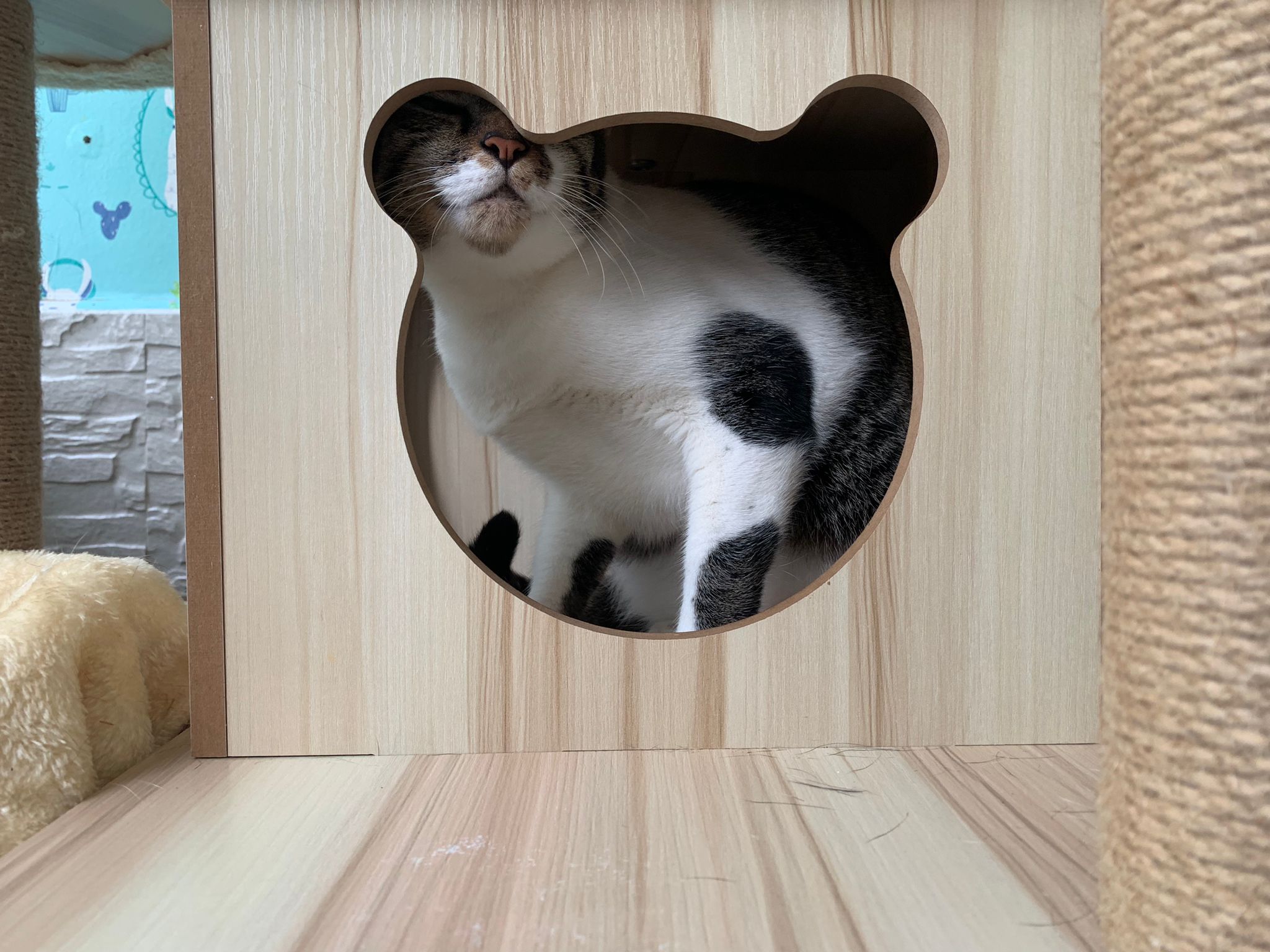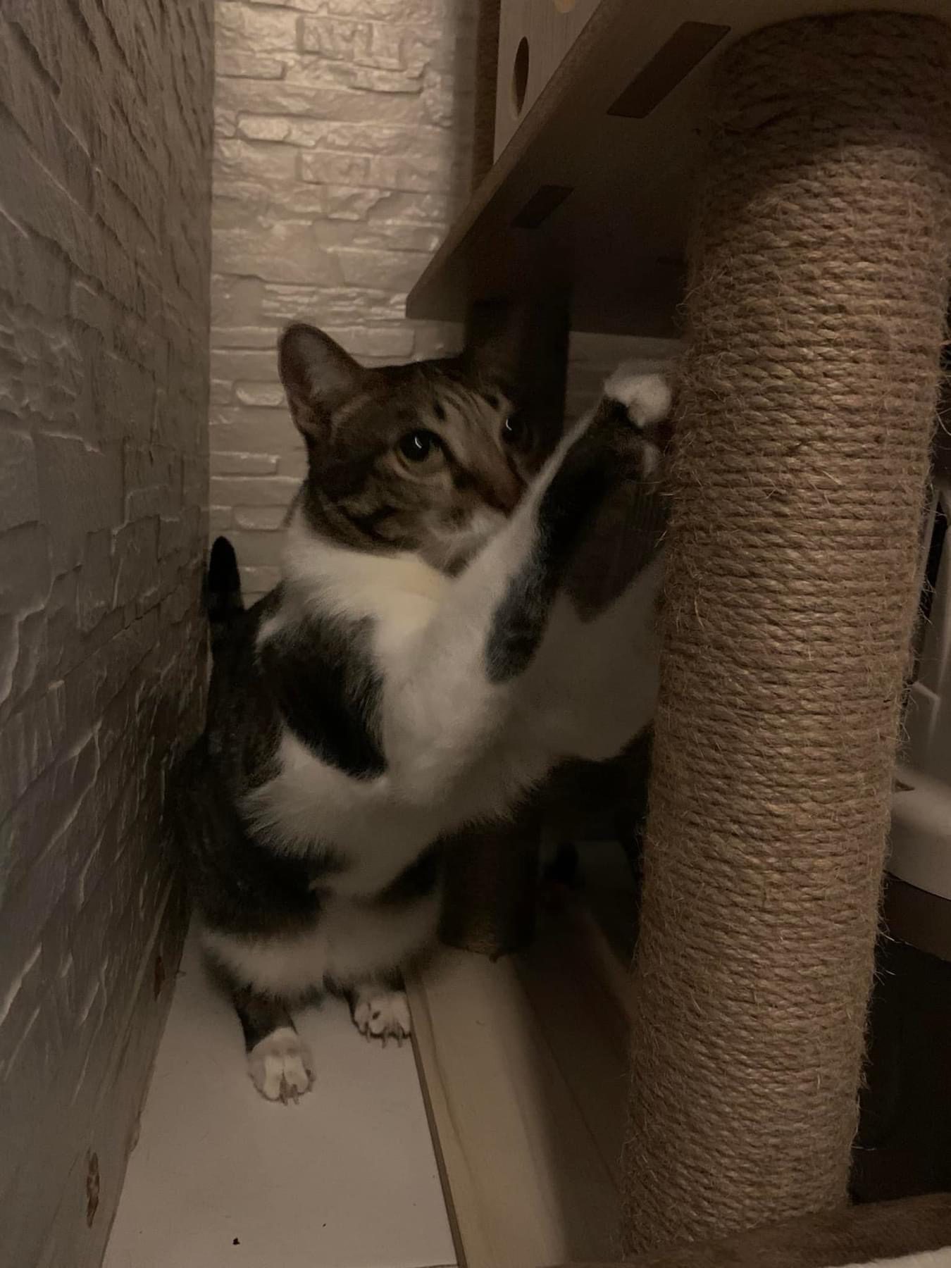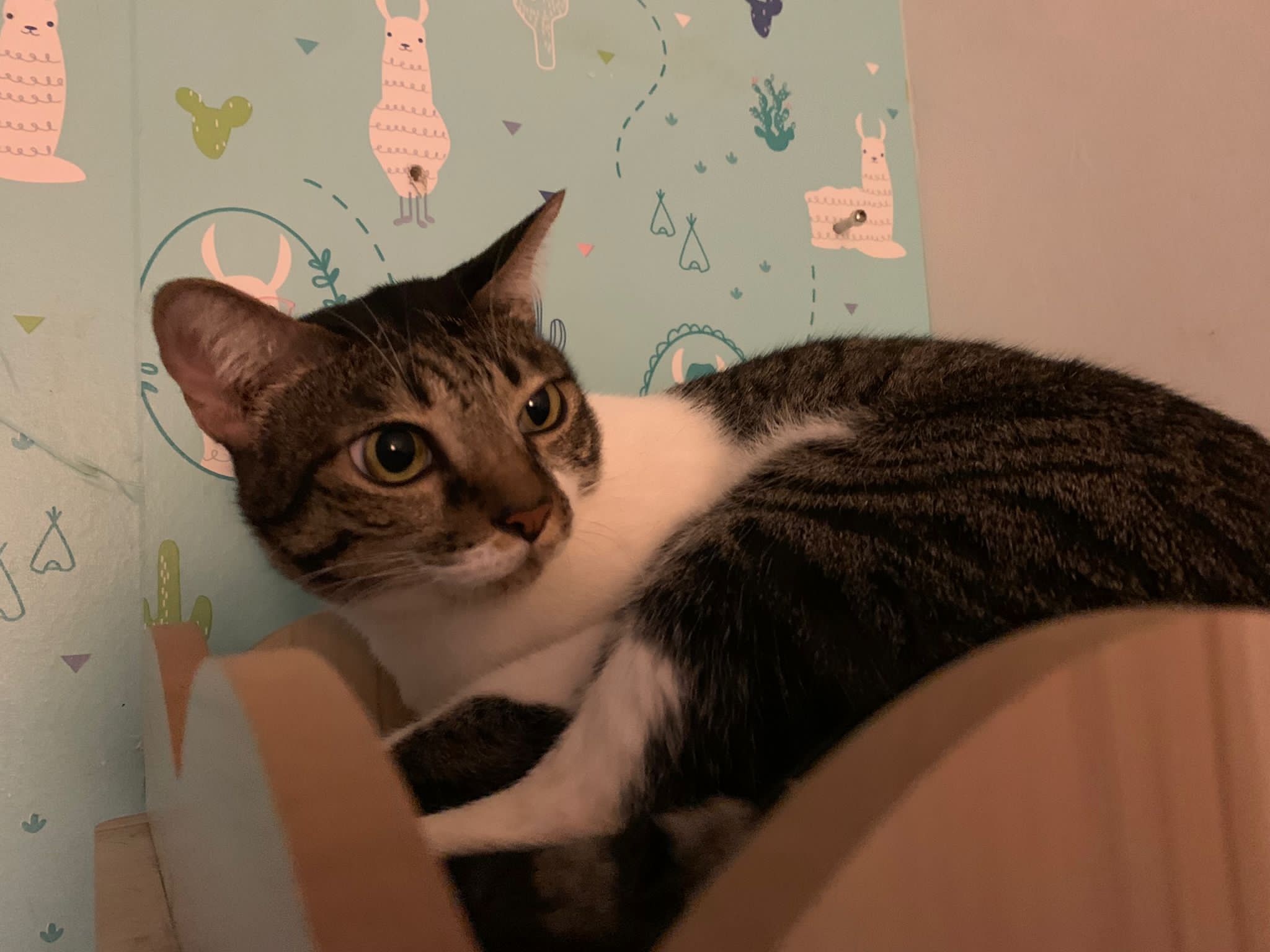 • 10pm: make peace w her since she don’t want leave the room, let her rest in the cupboard and give her a new paw toy