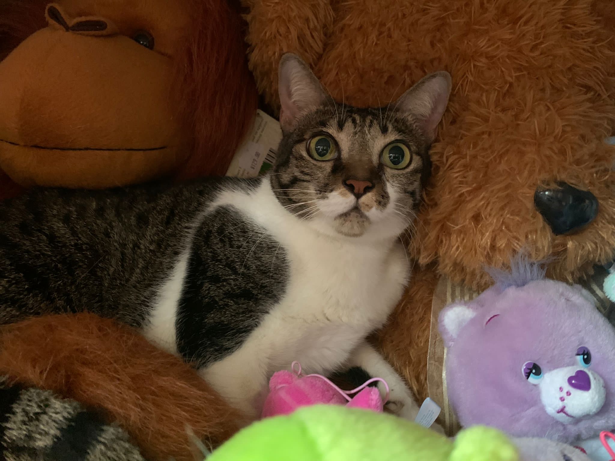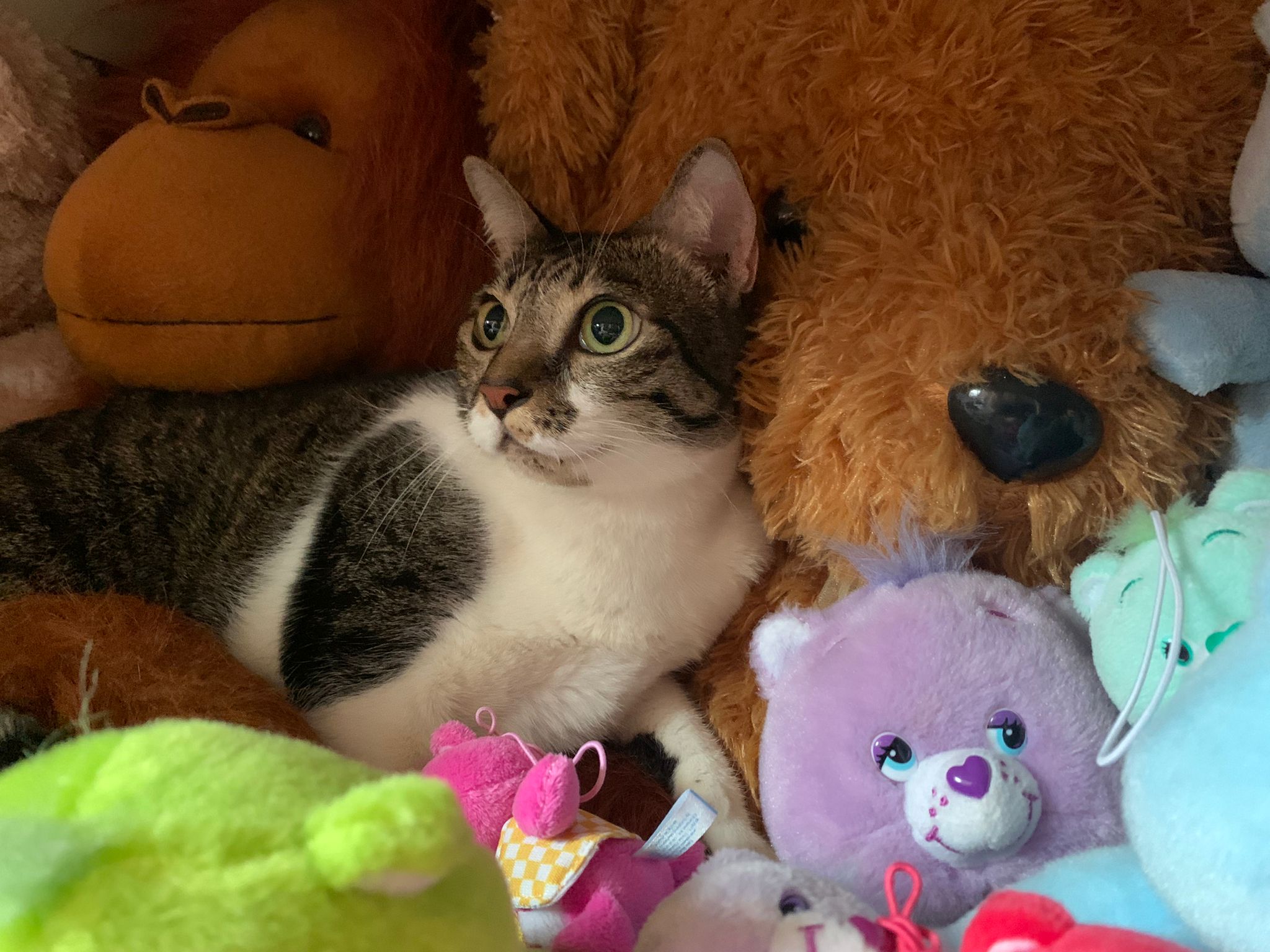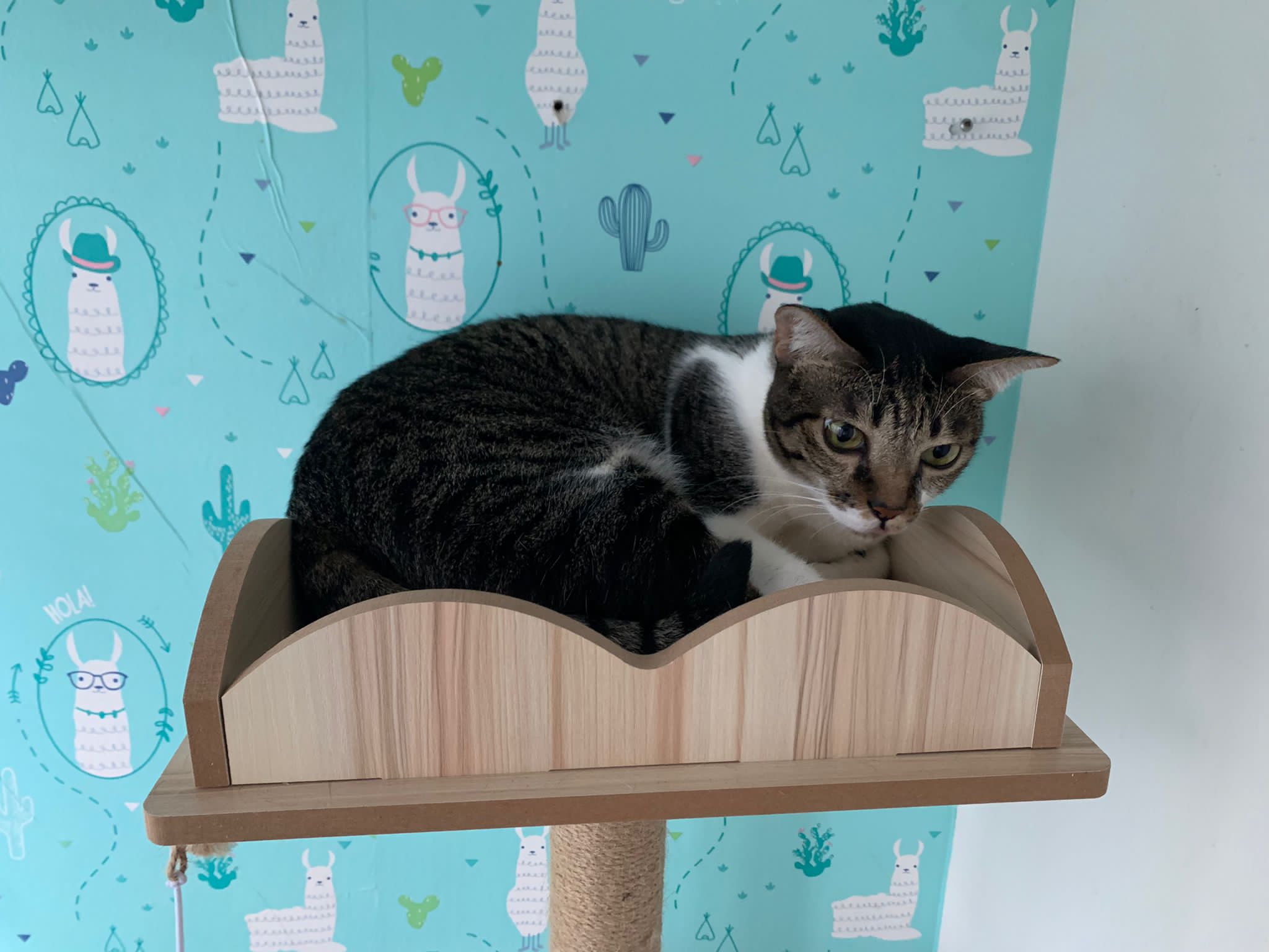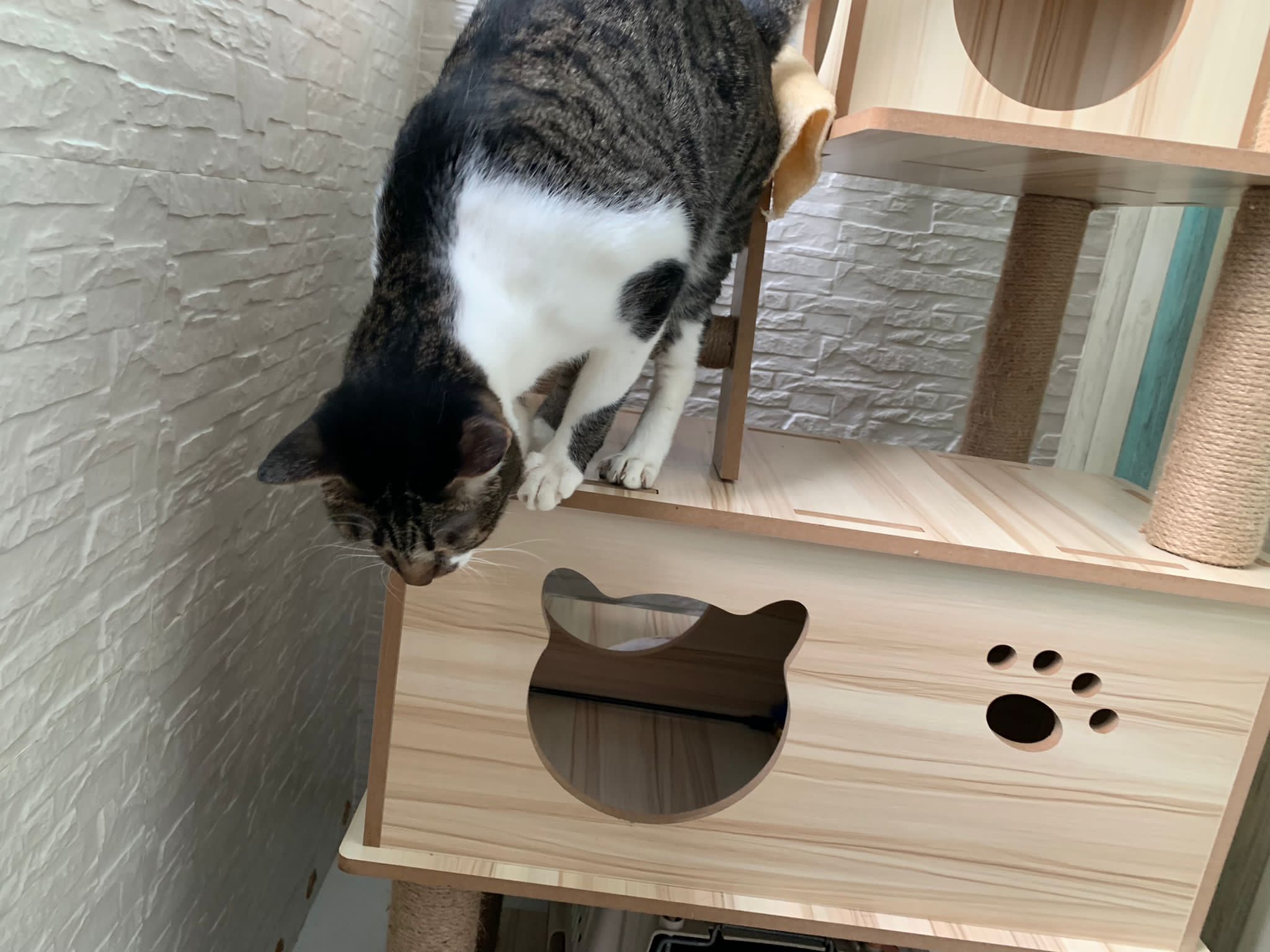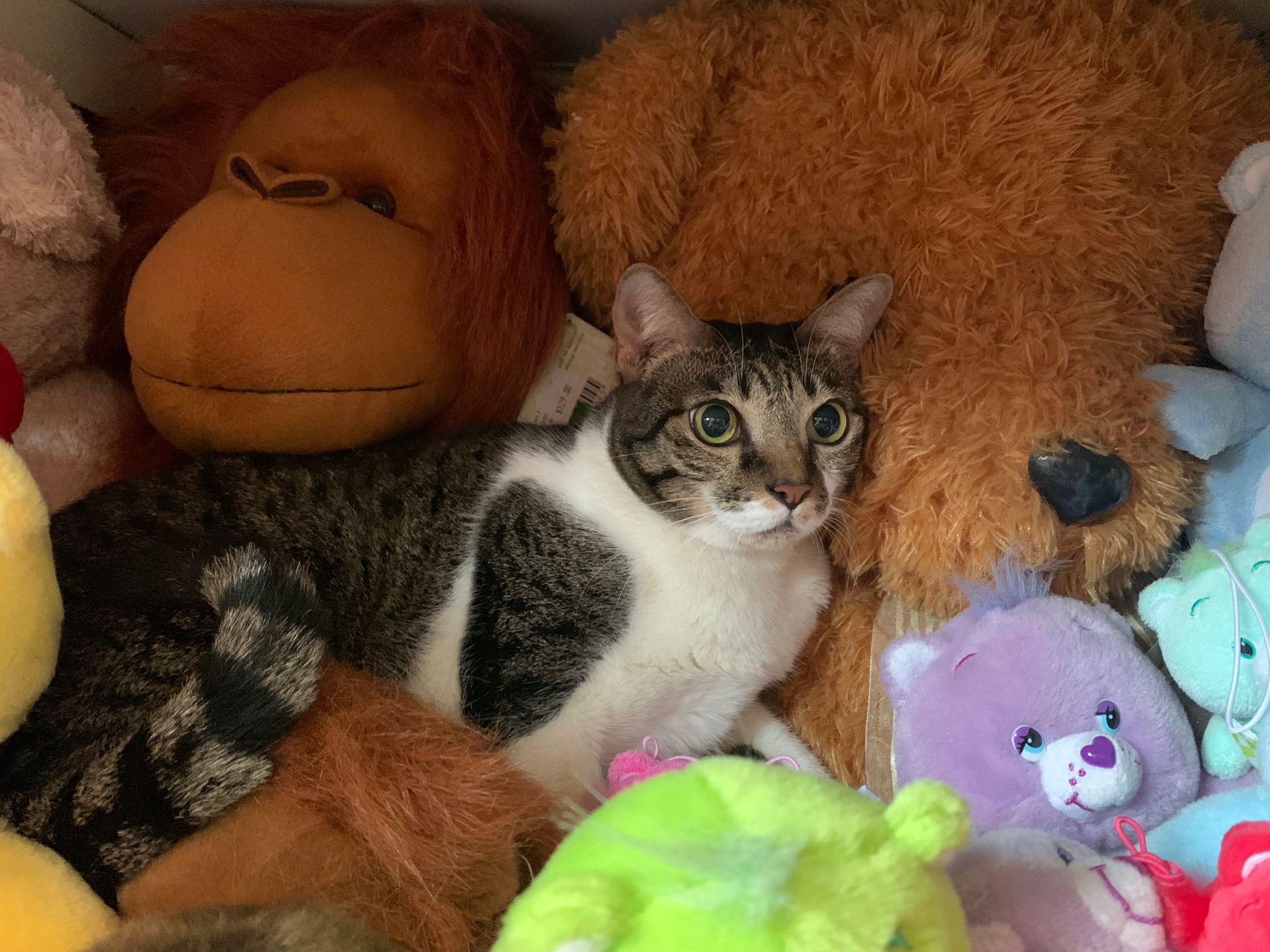 • 10pm: make peace w her since she don’t want leave the room, let her rest in the cupboard and give her a new paw toy