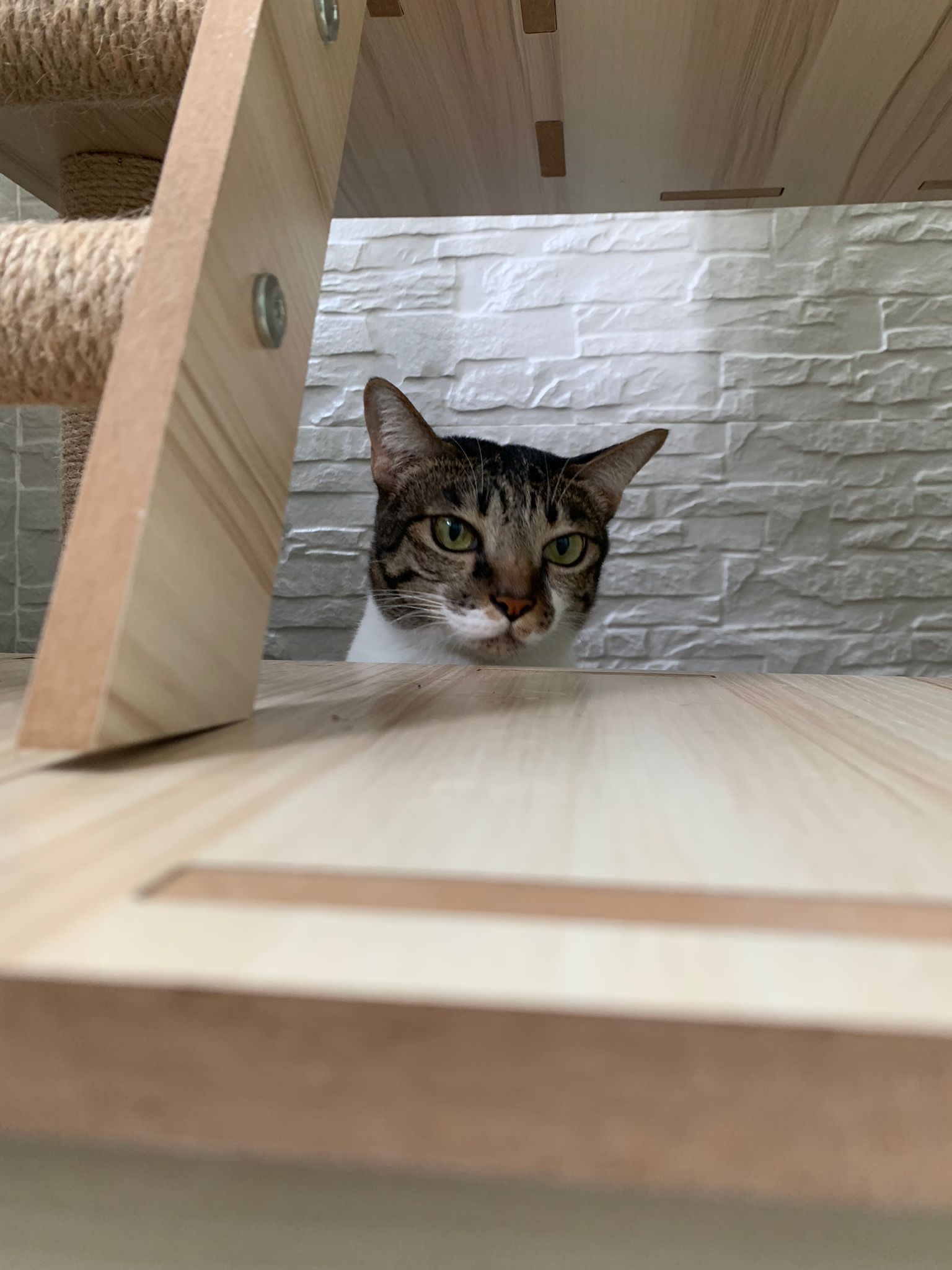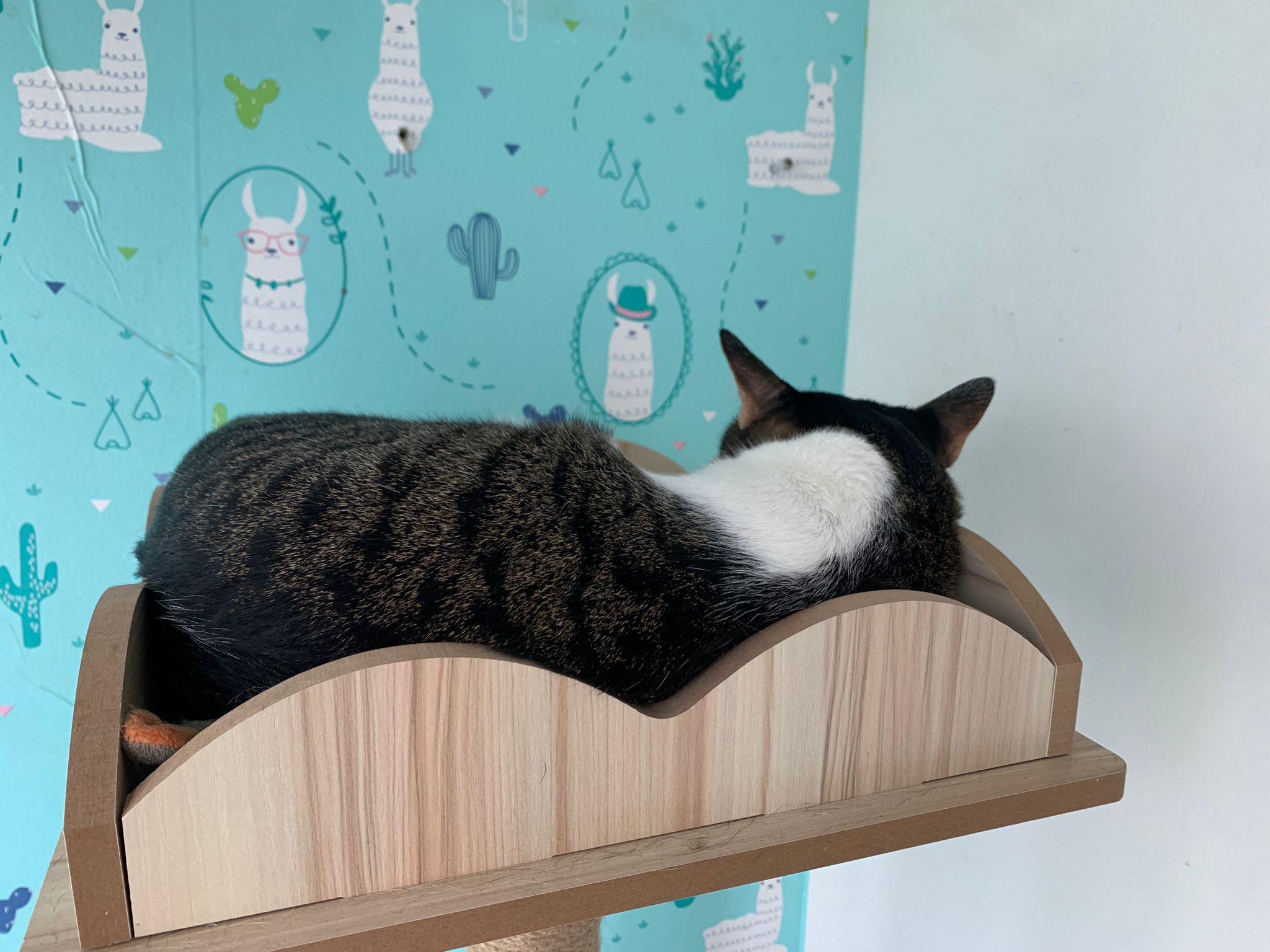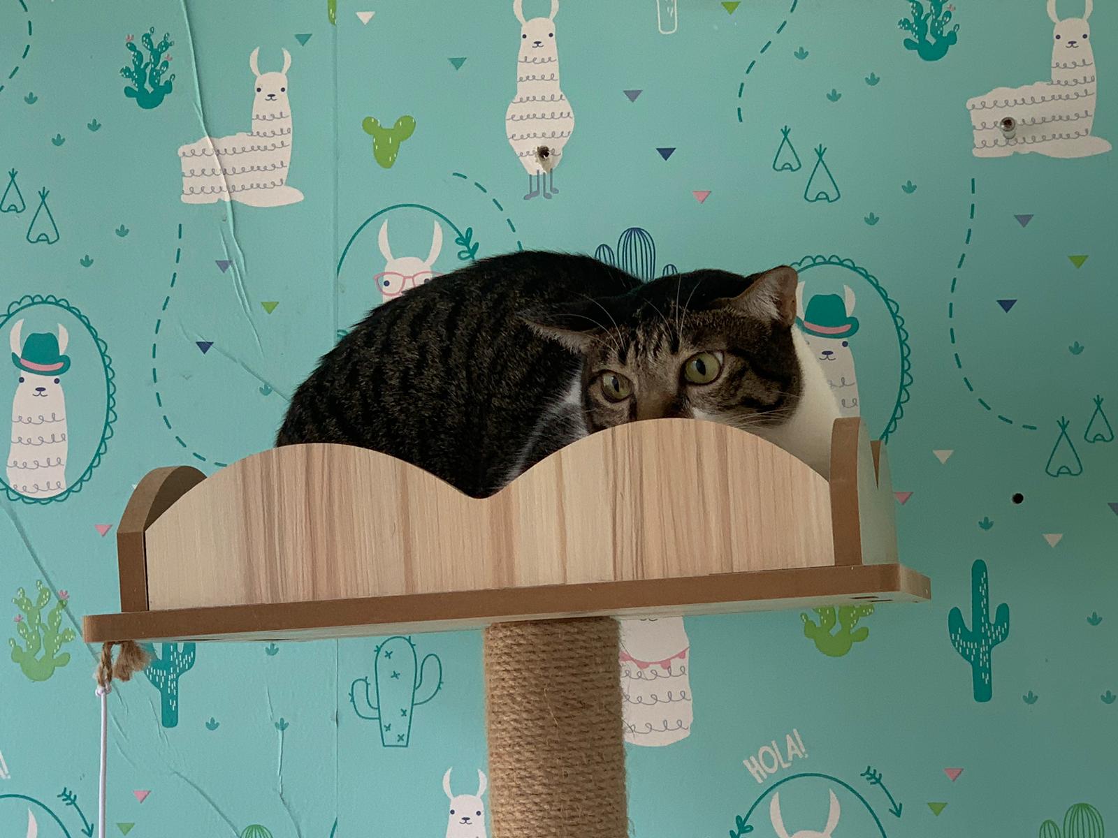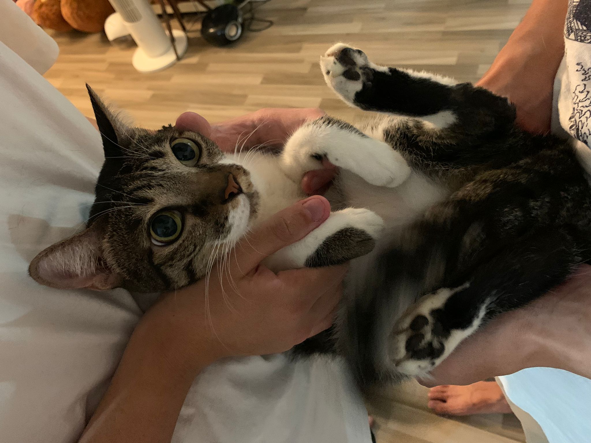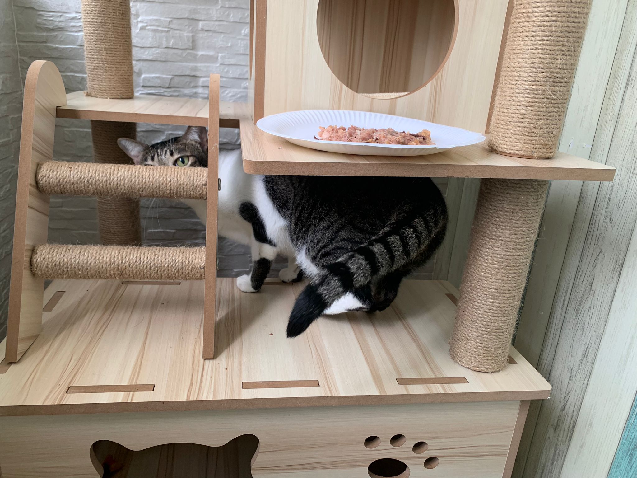 • 10pm: make peace w her since she don’t want leave the room, let her rest in the cupboard and give her a new paw toy