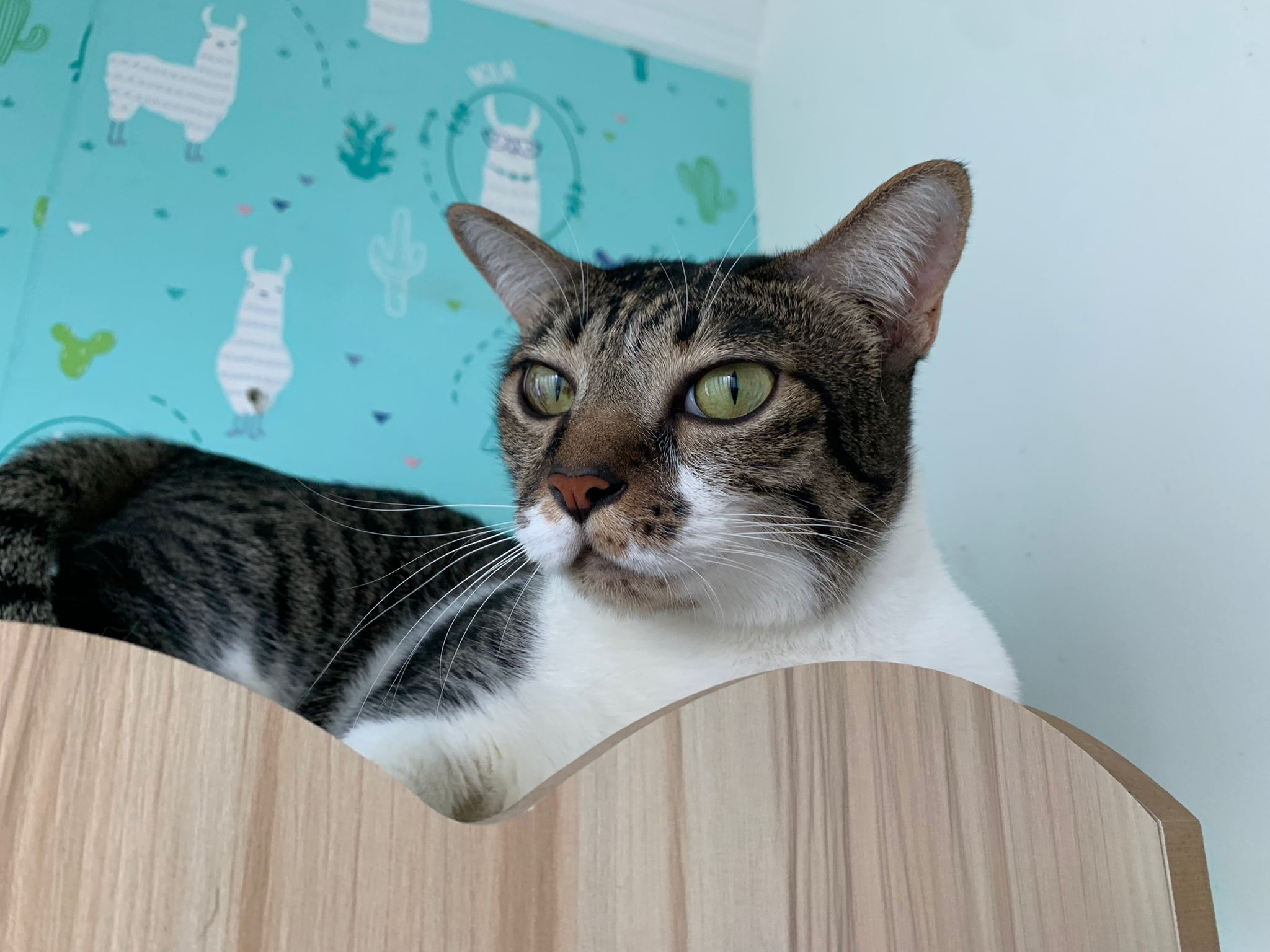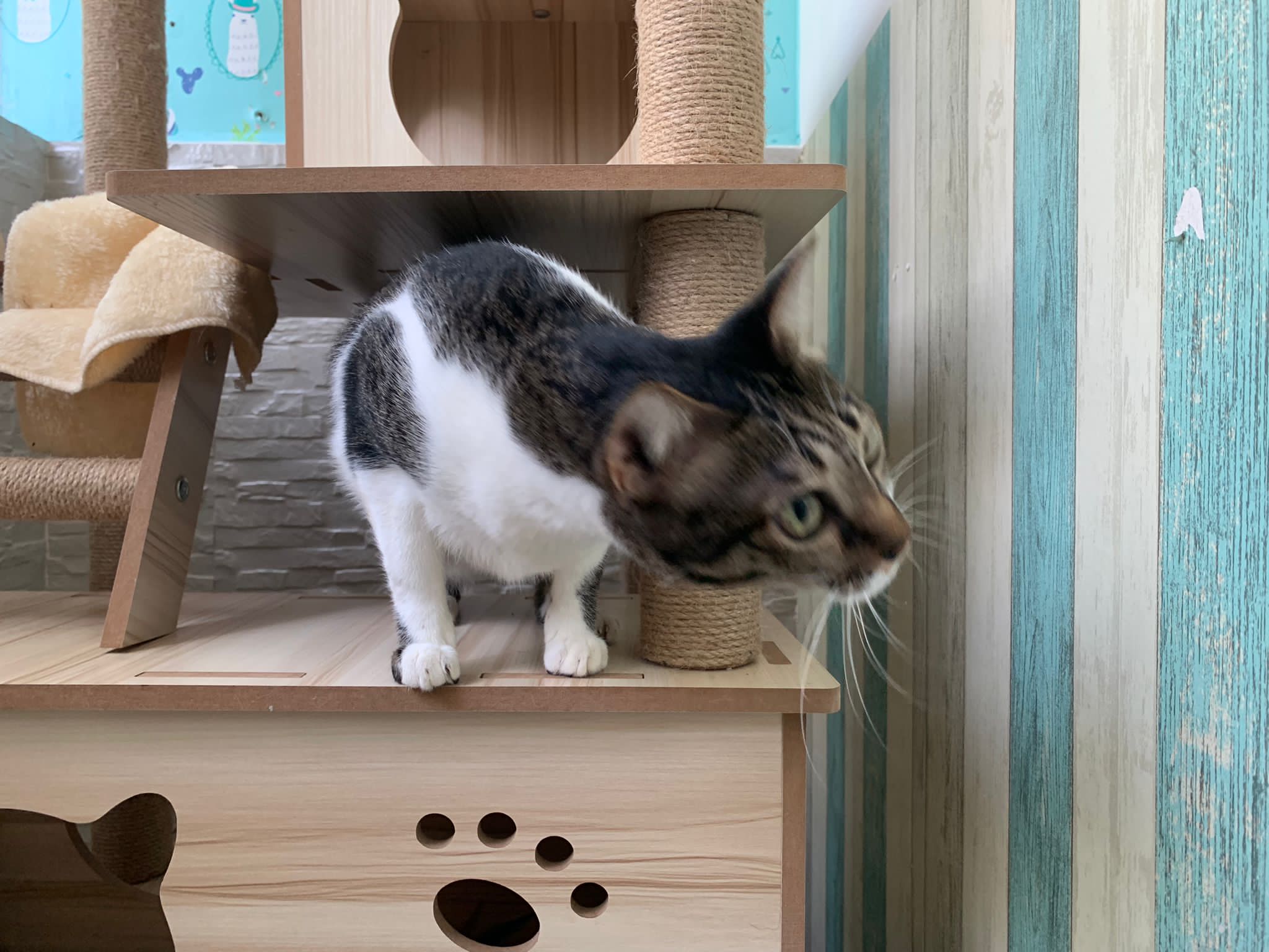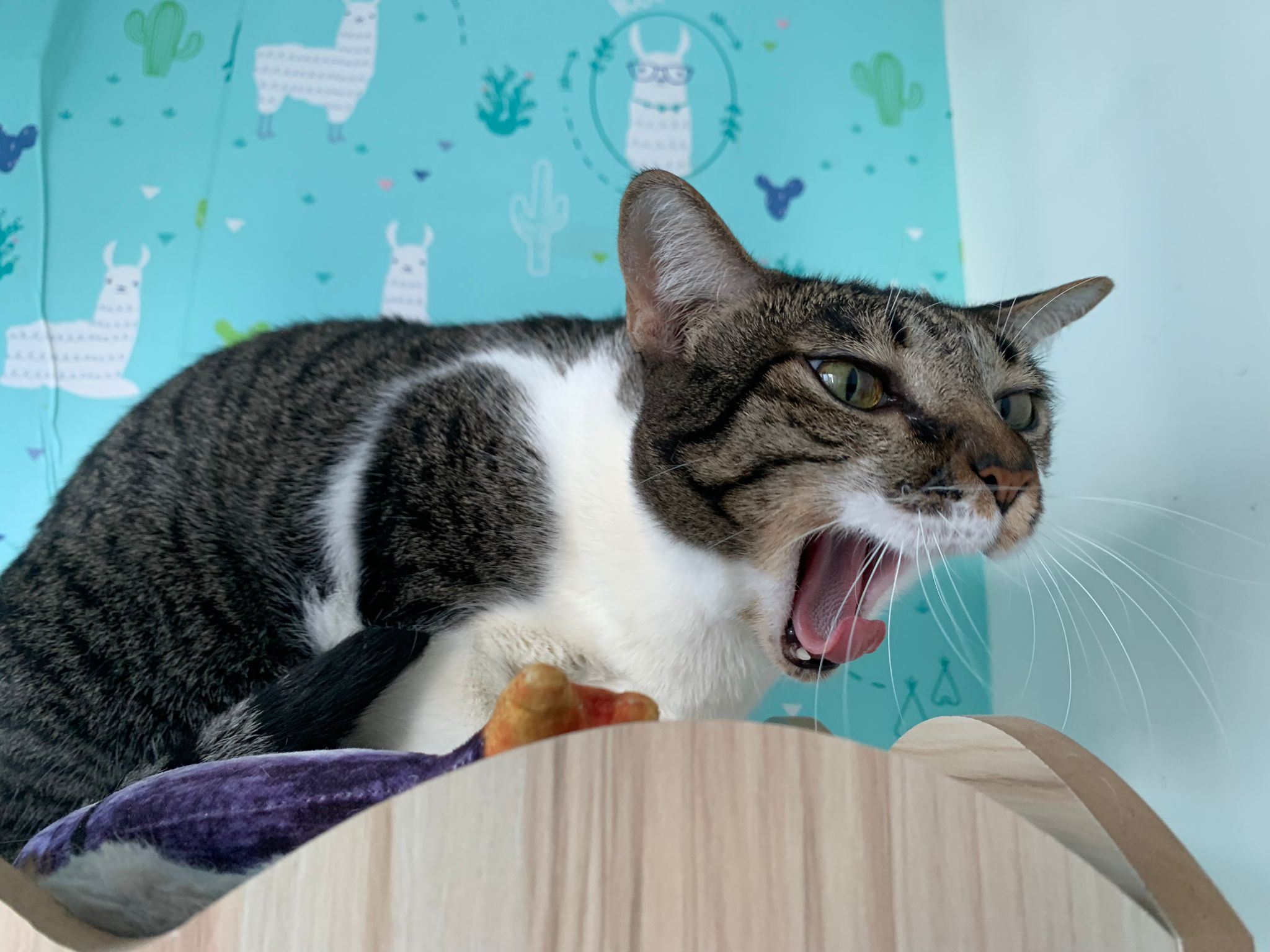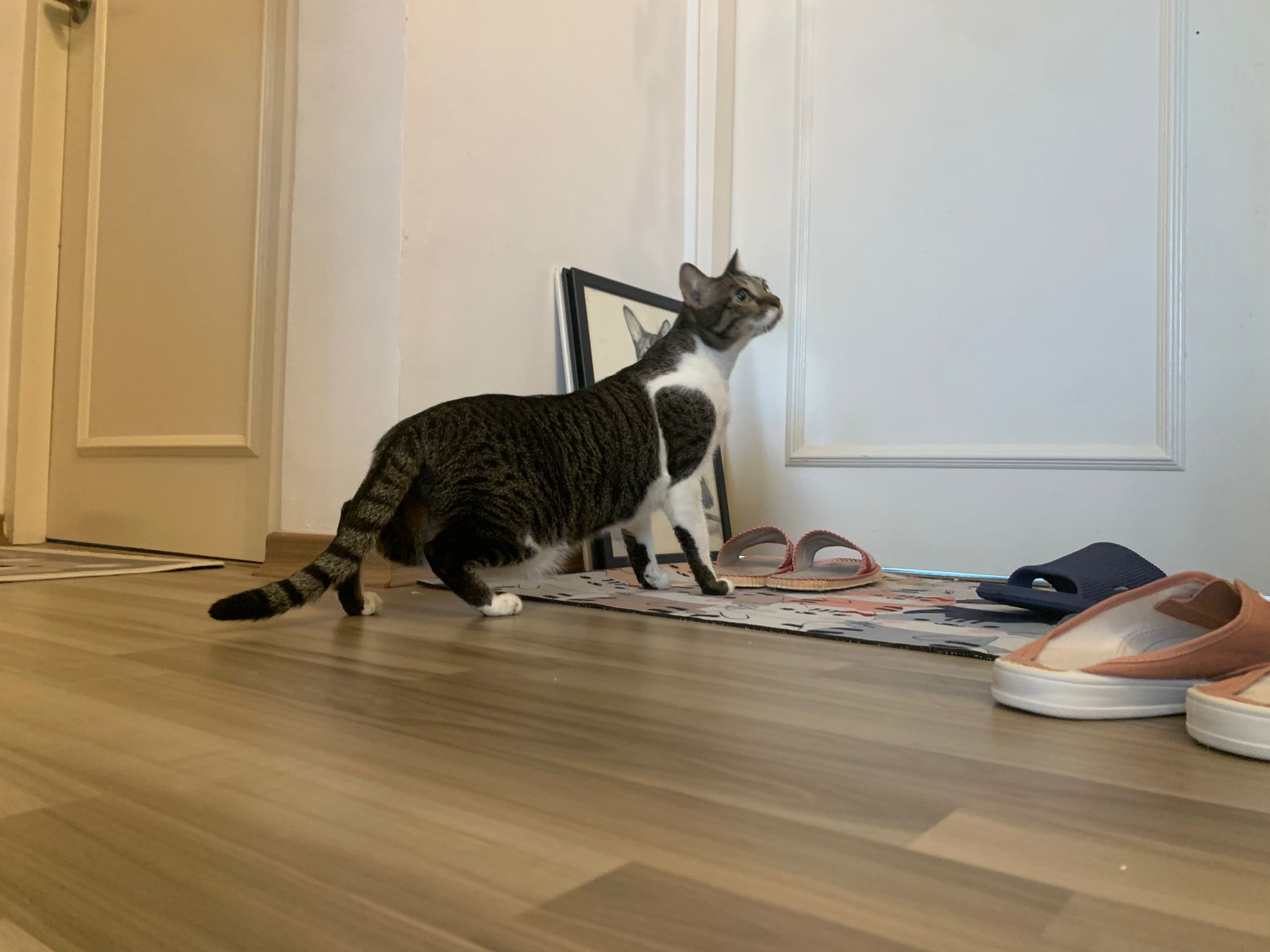 8.26am: wa i clearing her room back facing her, she come bite my leg – ha like latte. But I know latte is hungry tell me hurry up serve food. Jingles? Her food alr serve, so hers must be telling me hurry siam don’t block her dining table.