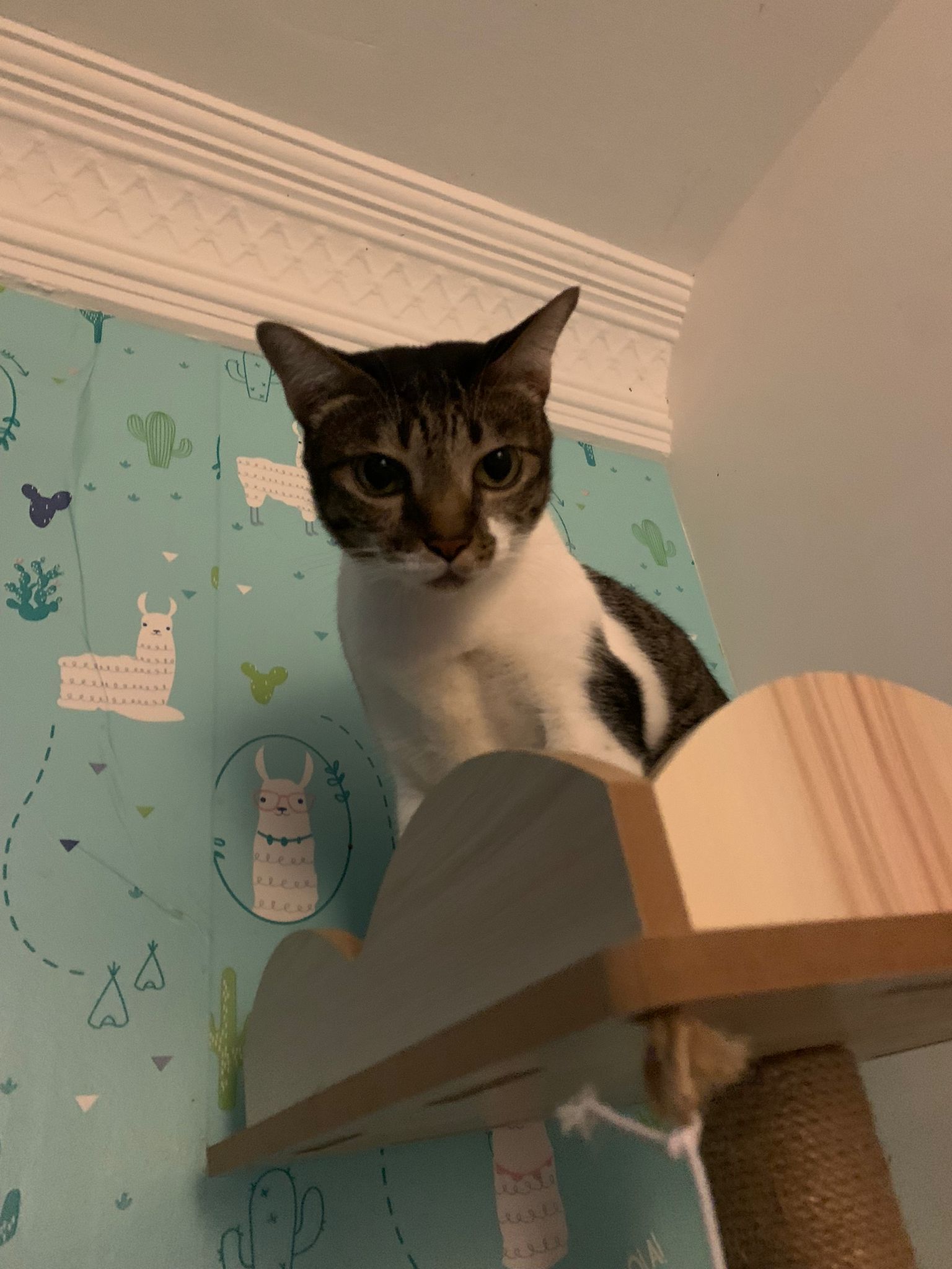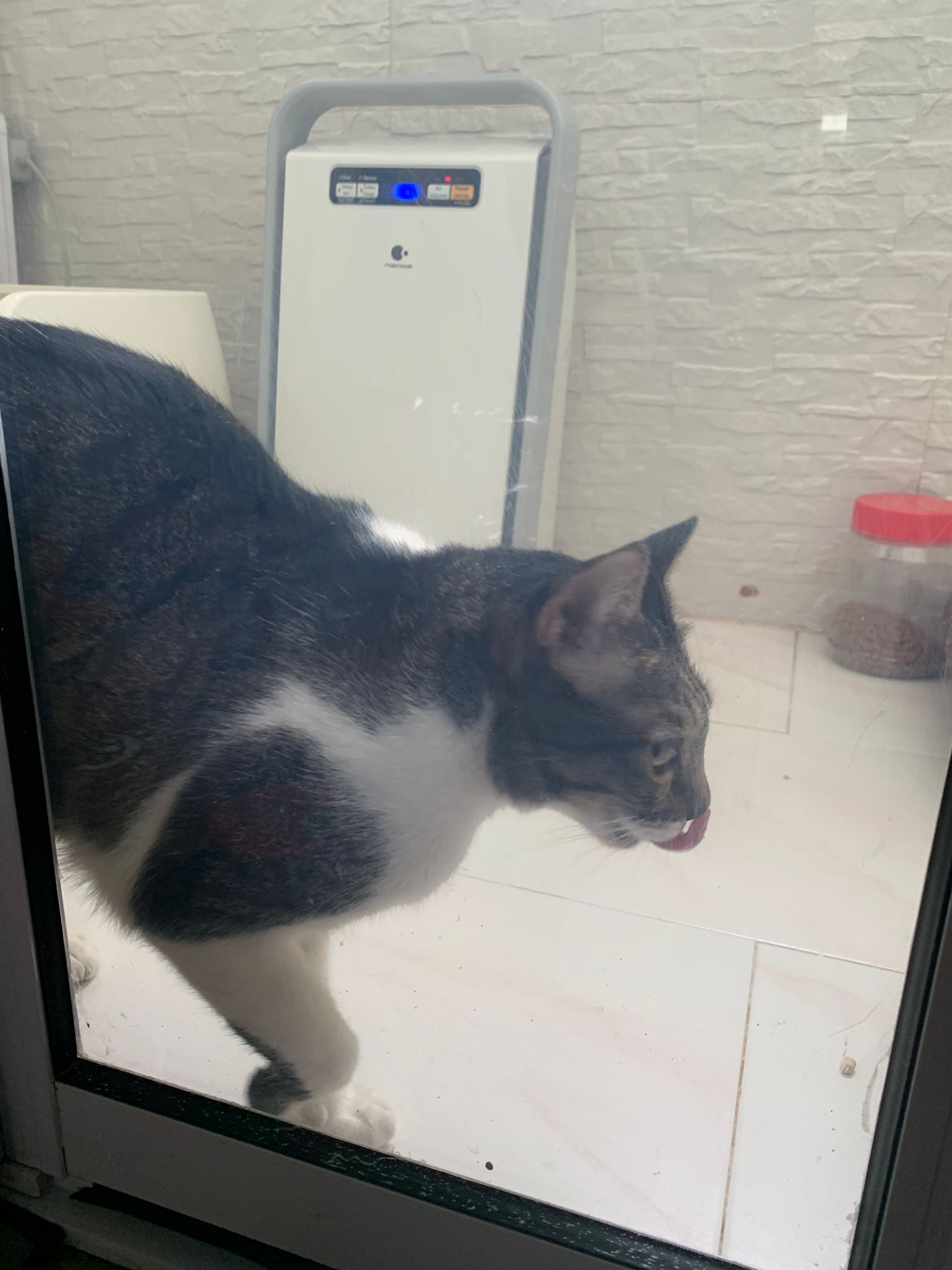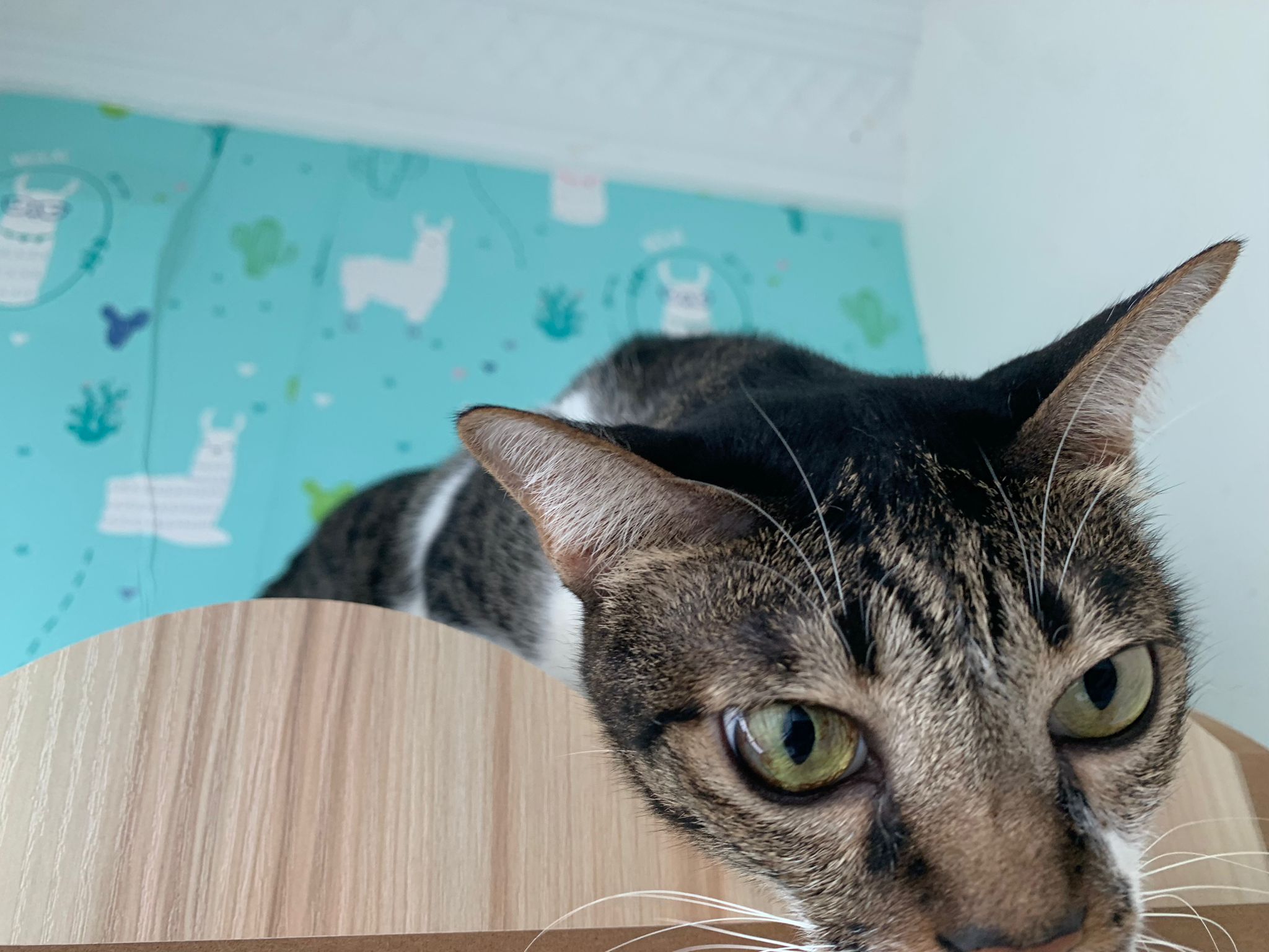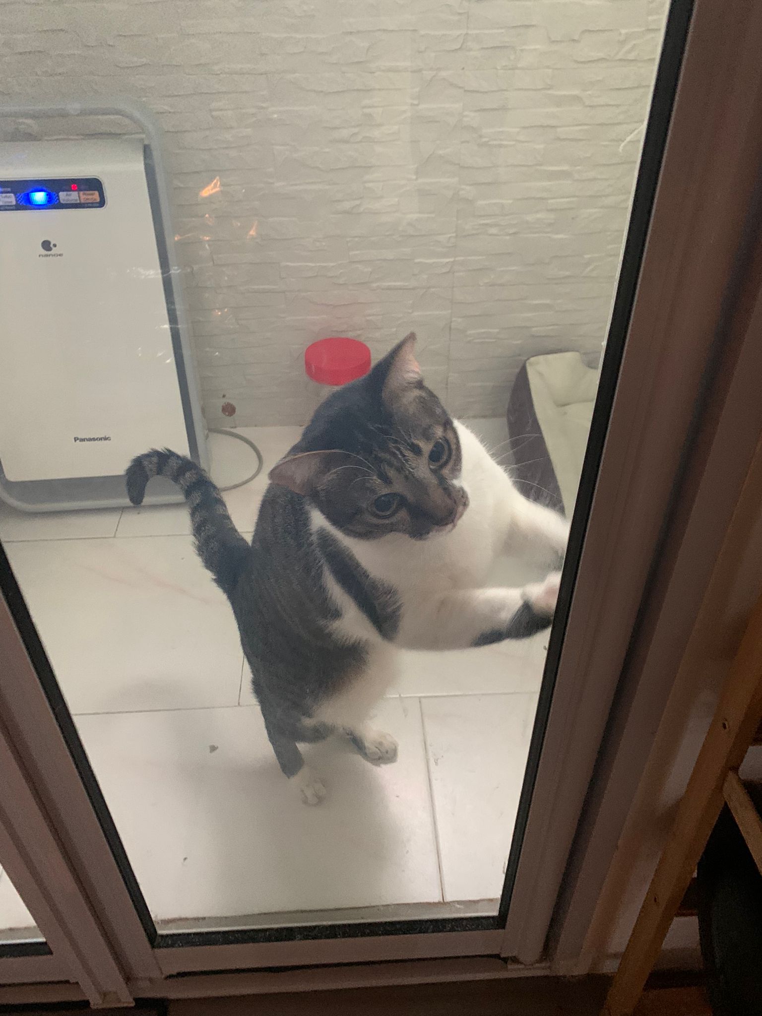 Keep meowing at me. Still that bad behaviour. If she is on the floor I can sayang her, she gave me I’ll be in danger cos she Duno how to control paw one
