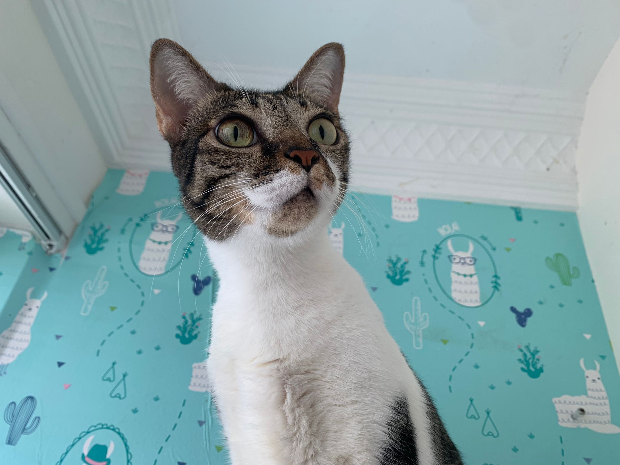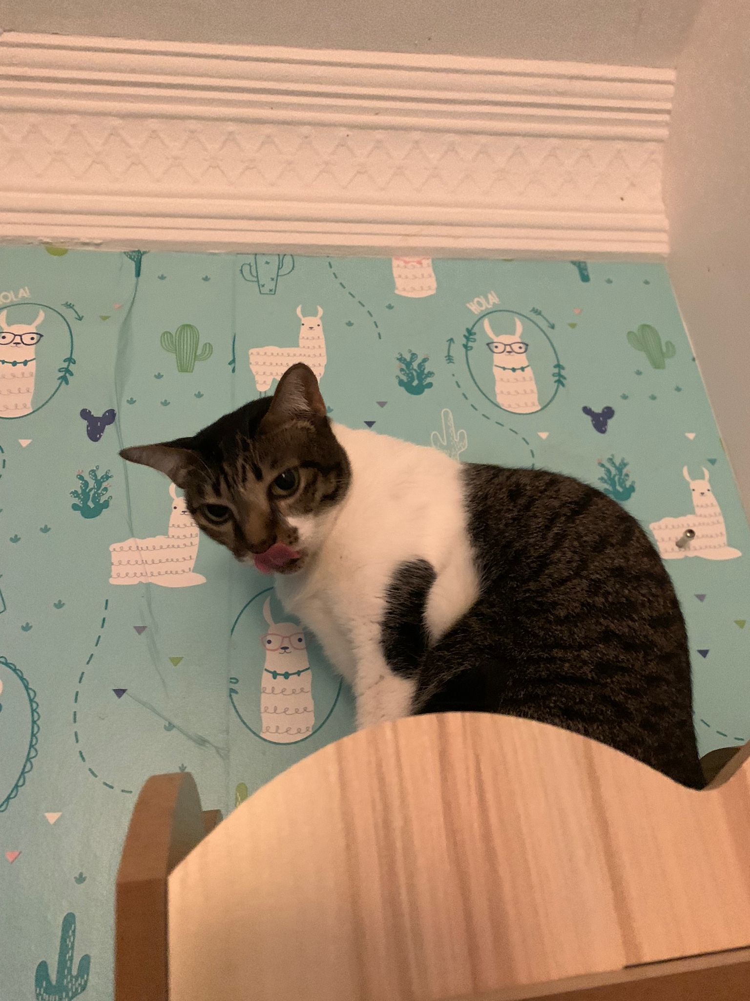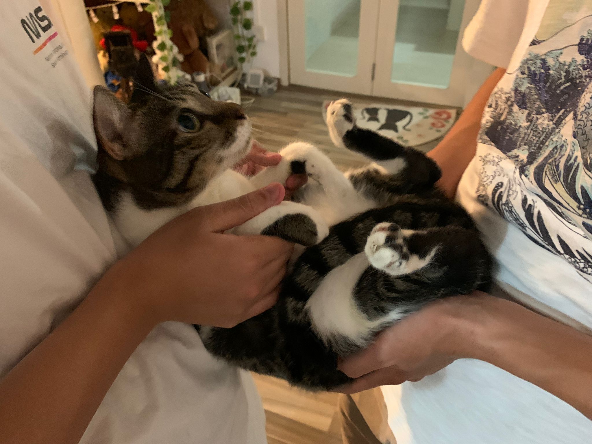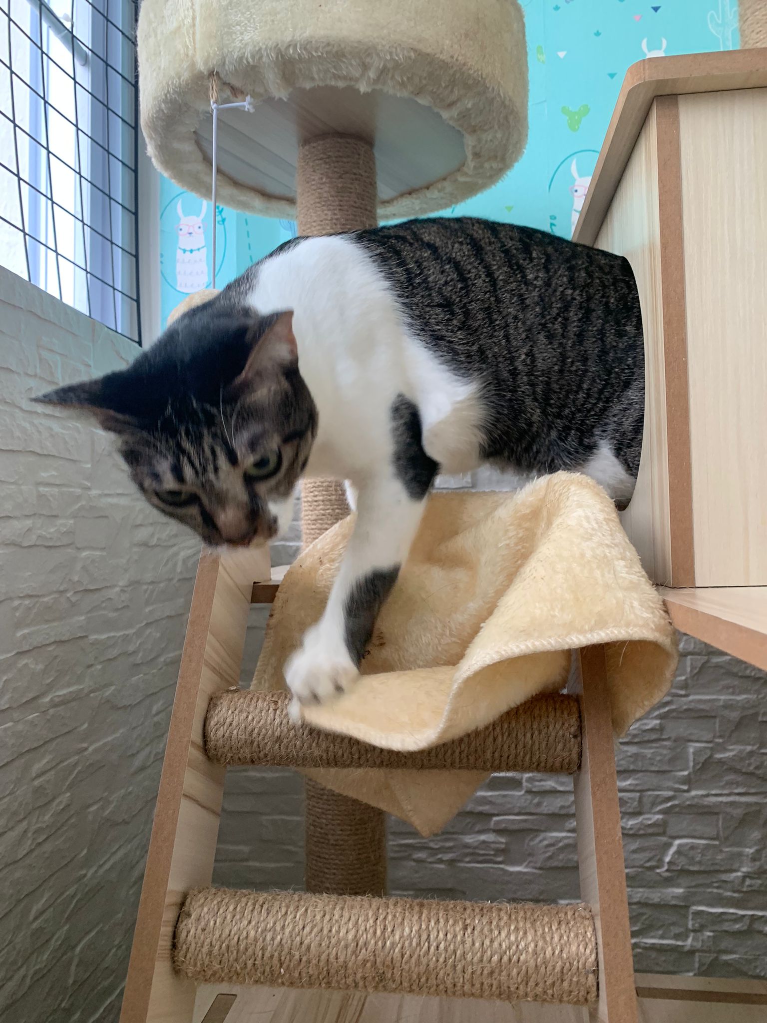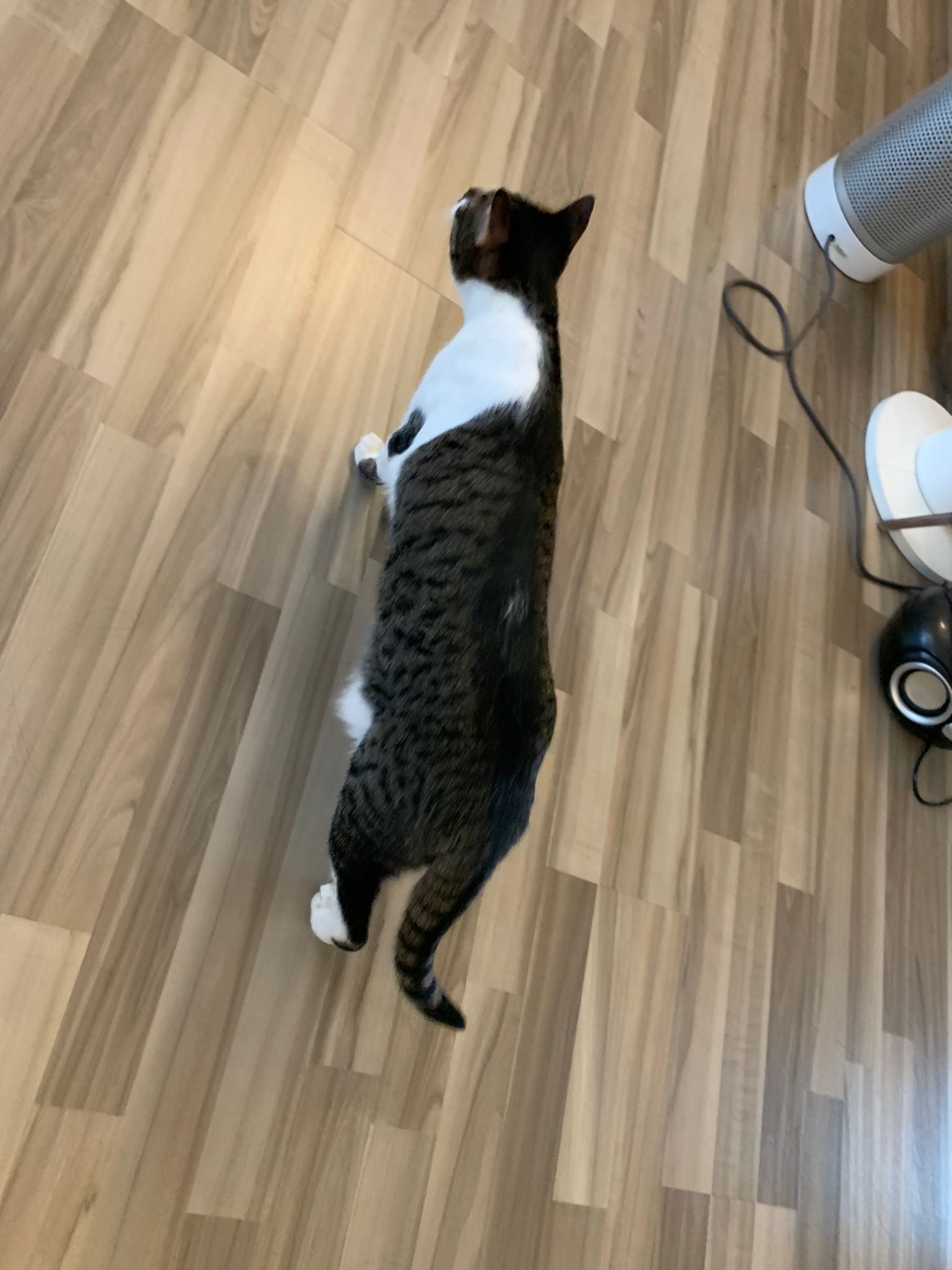 Keep meowing at me. Still that bad behaviour. If she is on the floor I can sayang her, she gave me I’ll be in danger cos she Duno how to control paw one