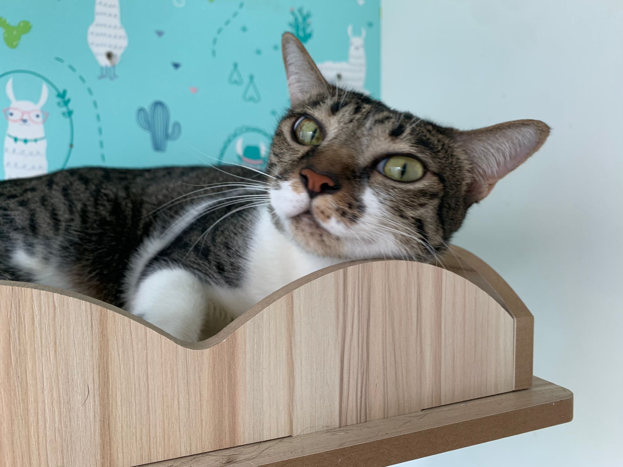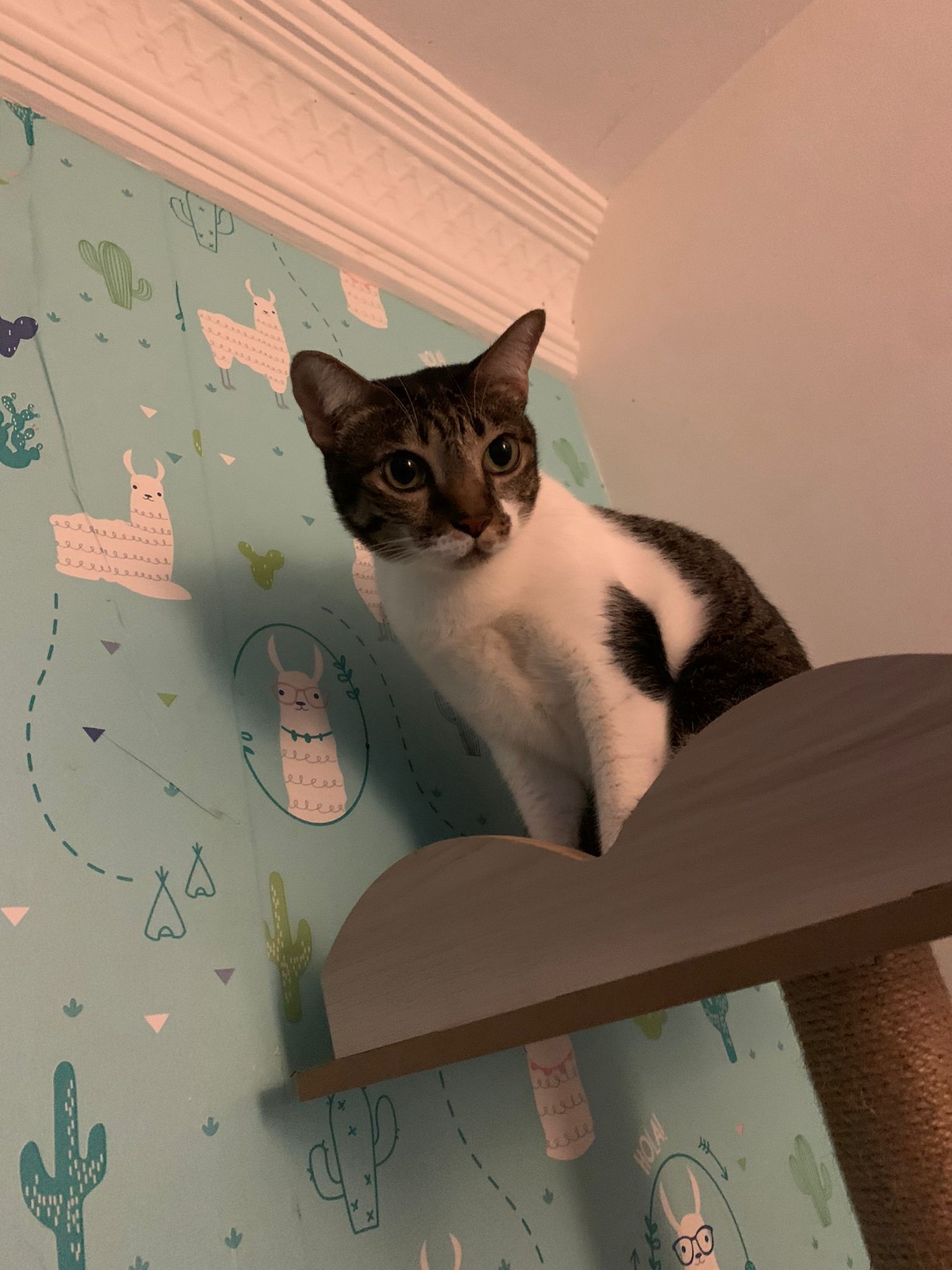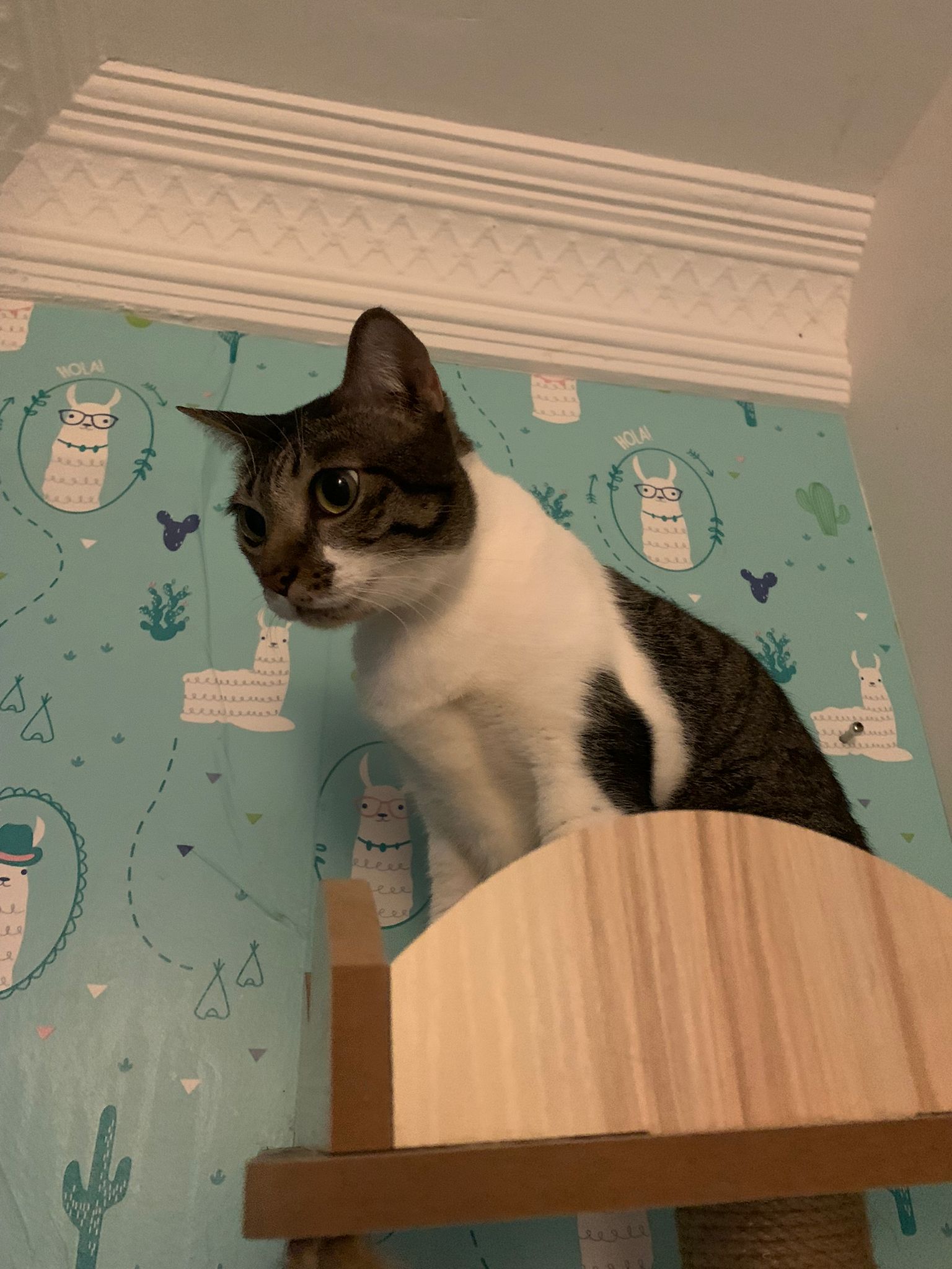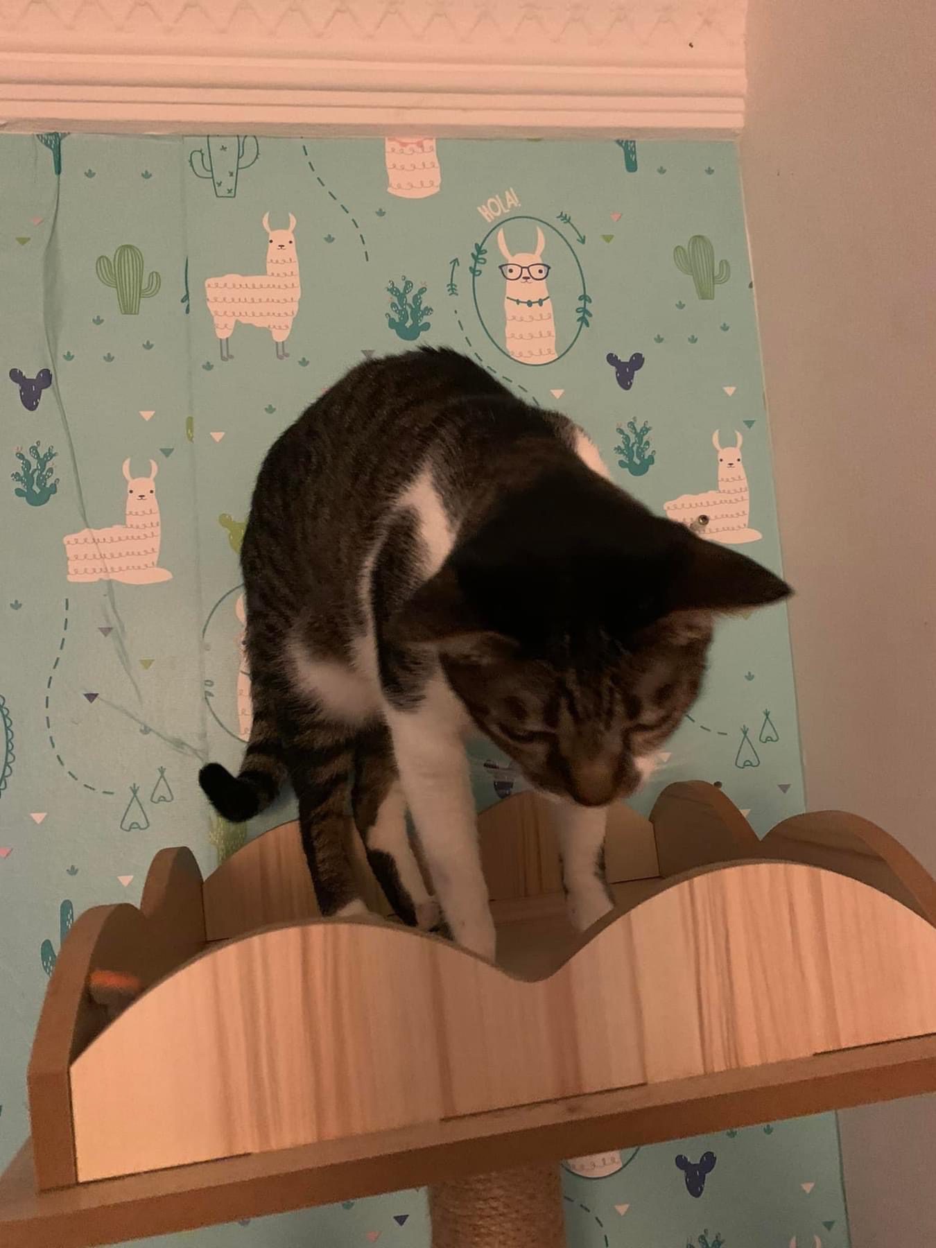 Keep meowing at me. Still that bad behaviour. If she is on the floor I can sayang her, she gave me I’ll be in danger cos she Duno how to control paw one
