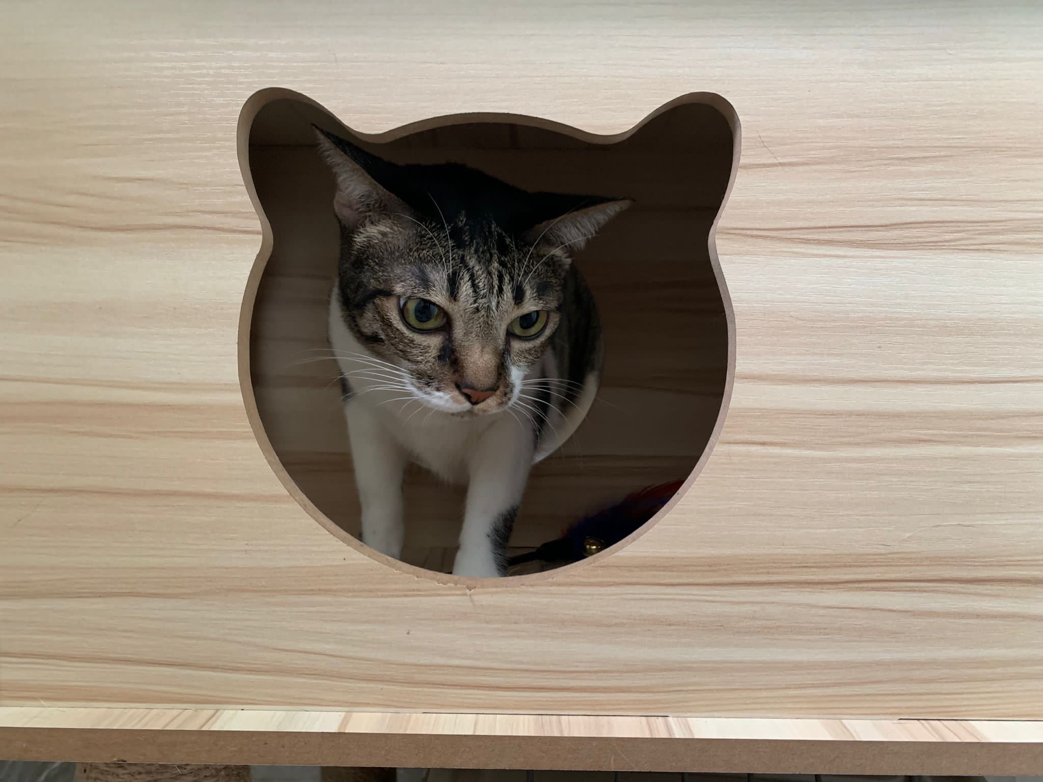 • found her new spot – she open the drawer! And hide inside n pop out her head curiously when she know I’m back