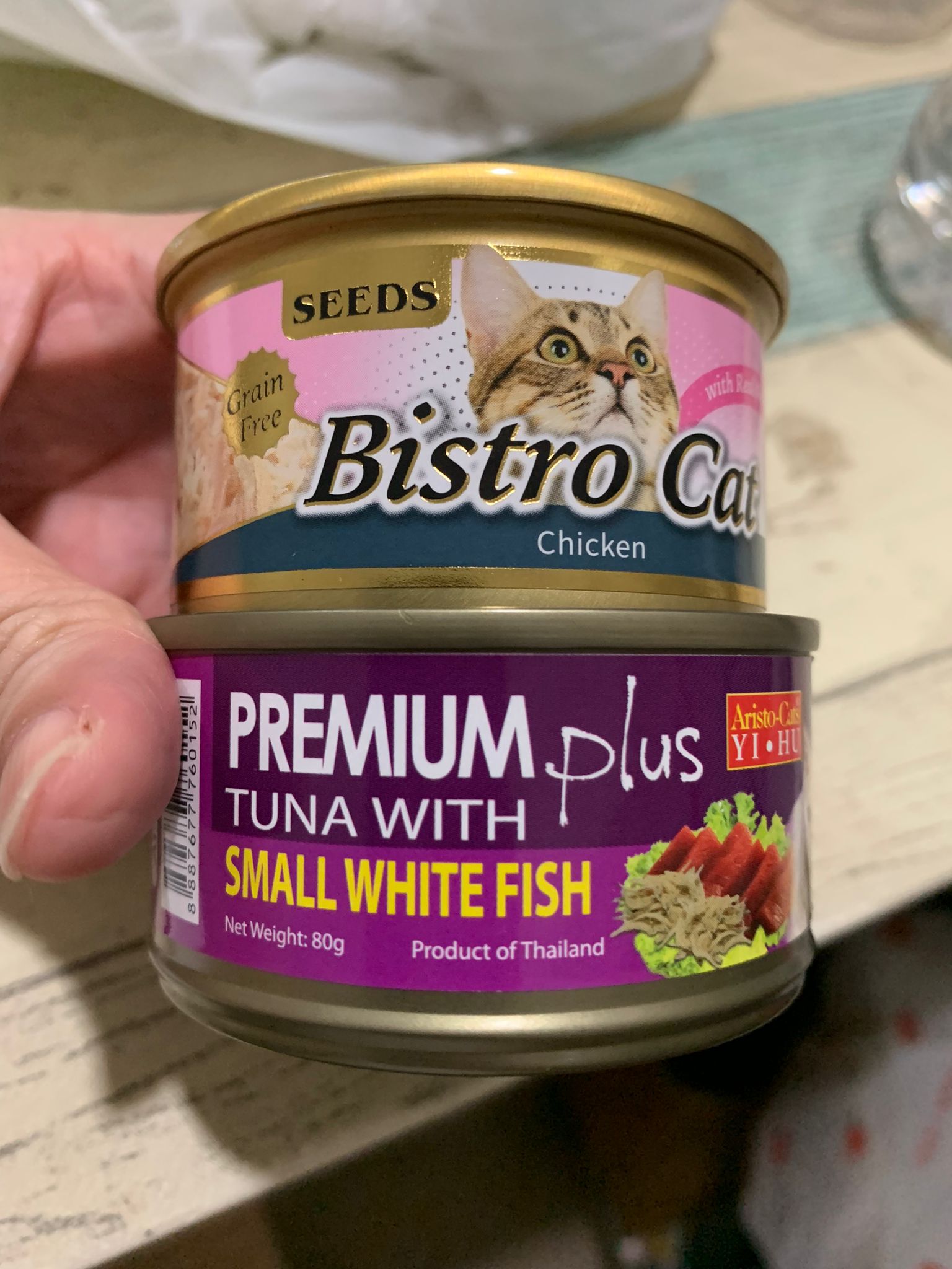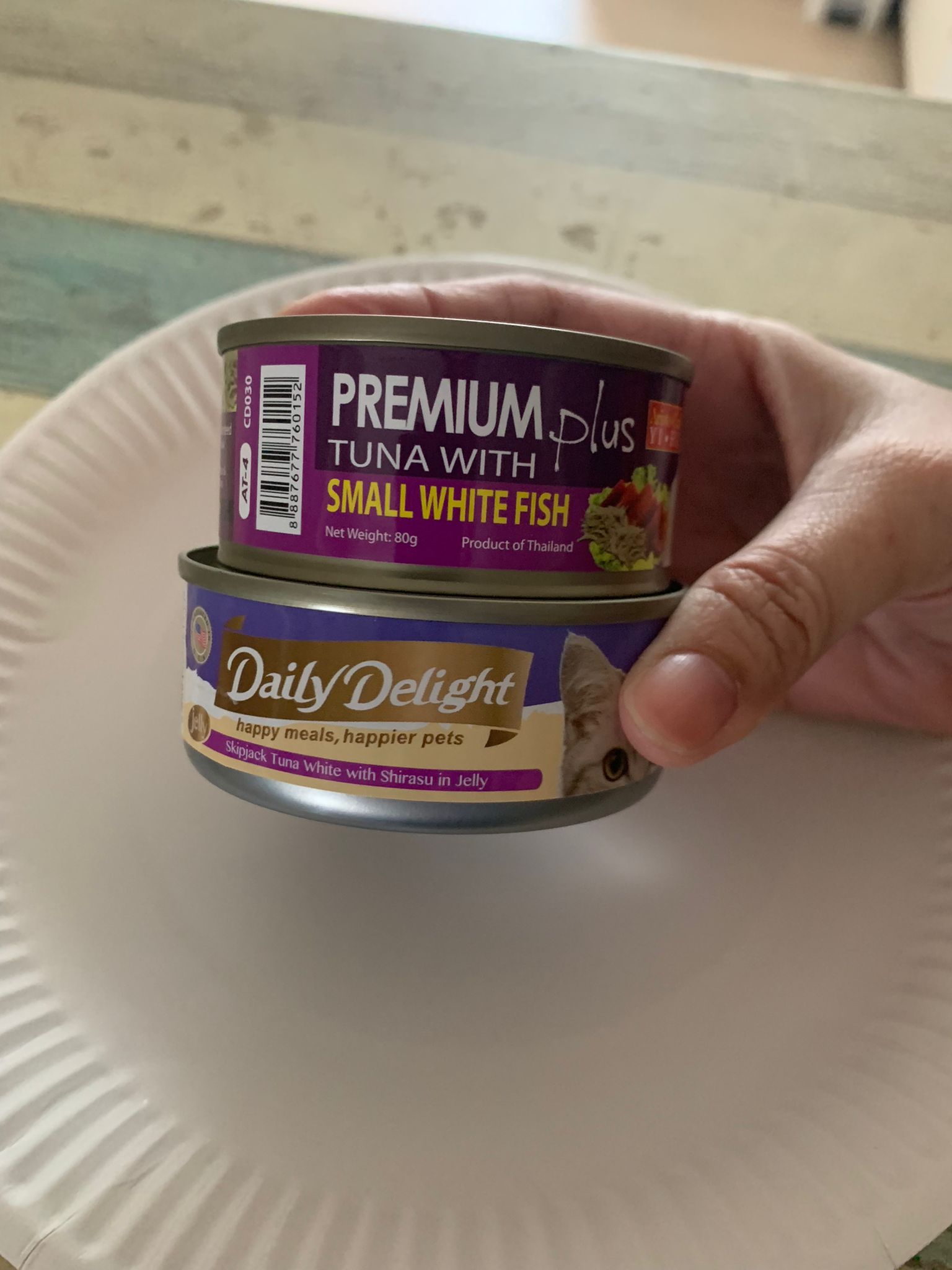 • serve her another can of fc tuna n chicken and daily delight pure blue