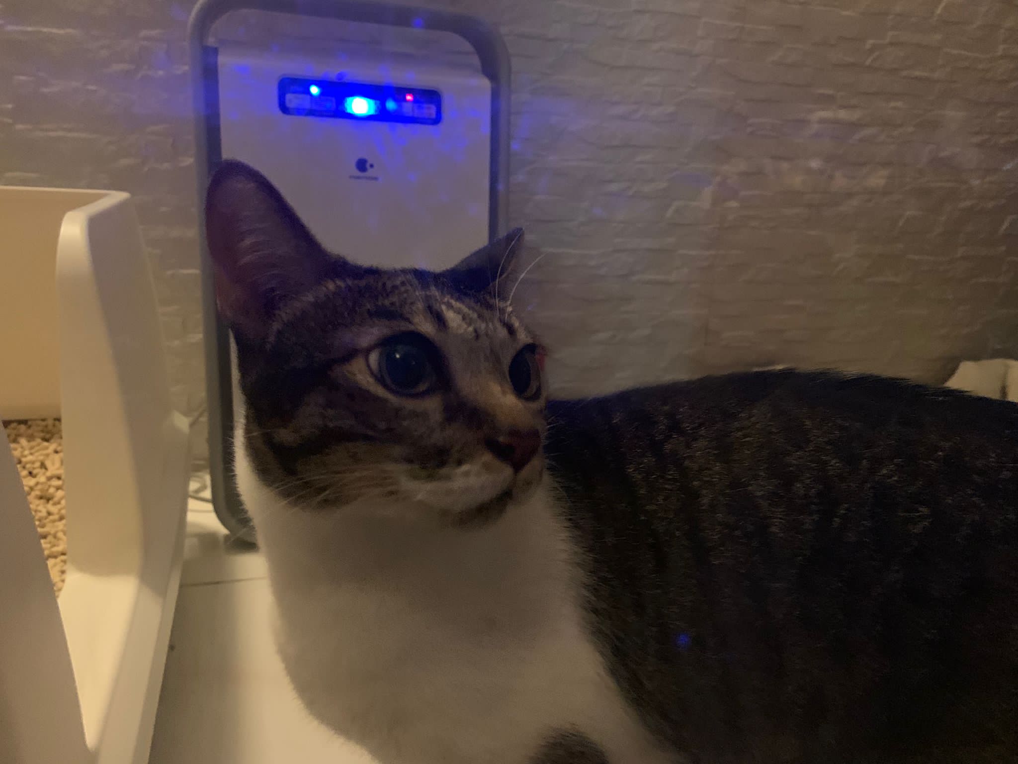 948pm: Serve tuna w white fish and think she likes the new top up of earthmade mackeral kibble as well. Keep jumping about n getting closer to me, can’t take her photos. All blur