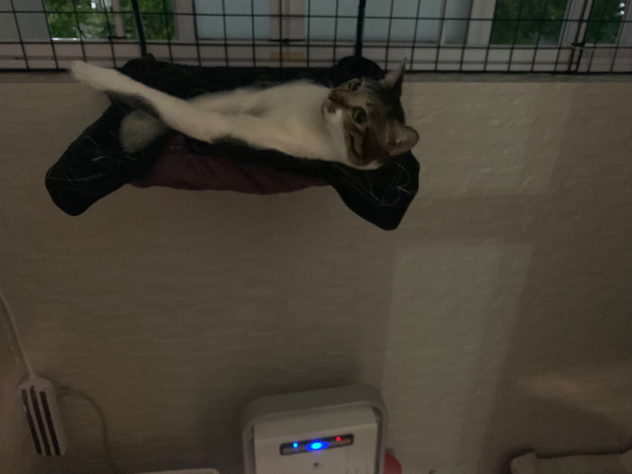 710-840pm: v active, keep lying on hanging bed and wanna come near me – is it the power of the chicken tenderloin or the Pidan quail egg? Not sure but she is v excited