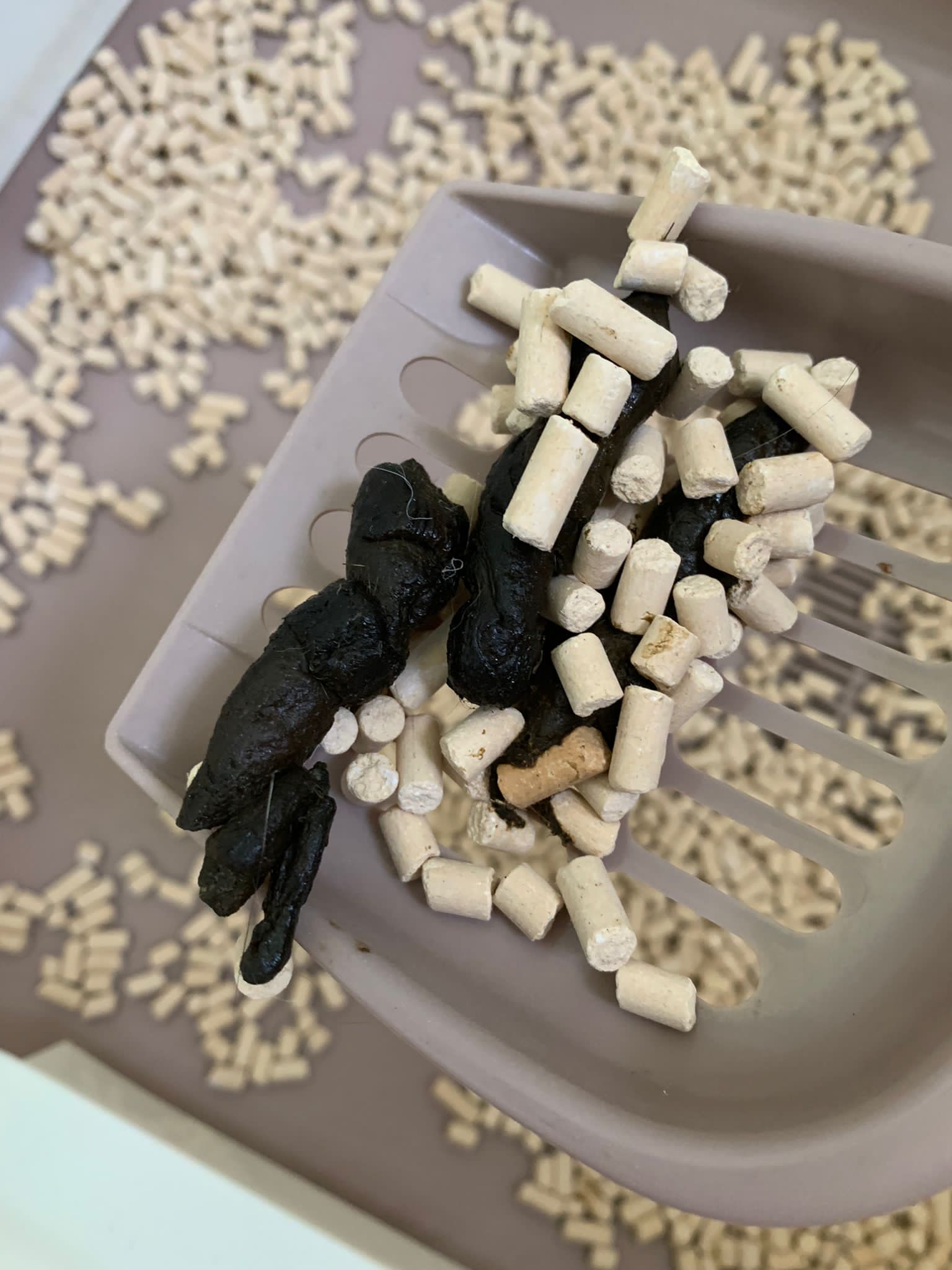 730am: poo after I clear bin. Formed and size of poo looks so much more normal. Last week the poo so thin loh