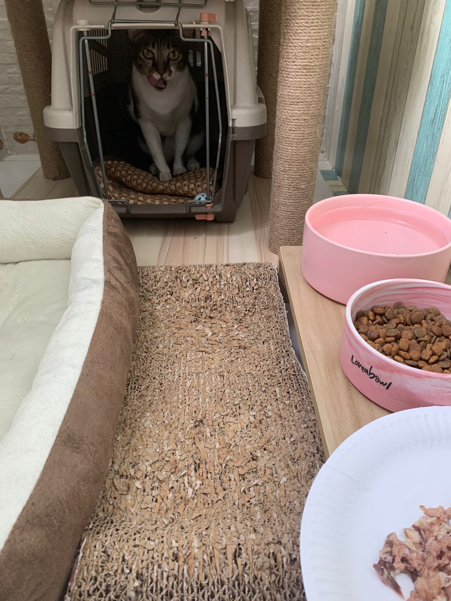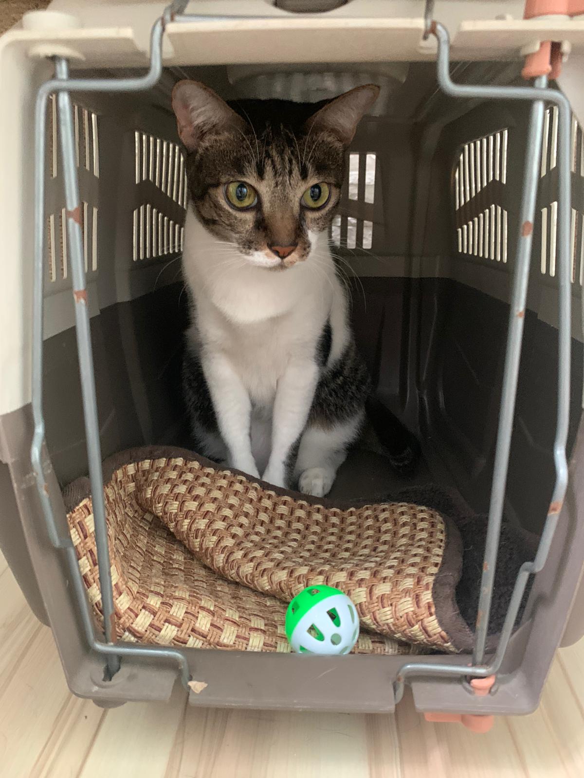 915pm: her bros come can sayang, can touch loh. Then I can touch also, she don’t try scratch me or bite me anymore, but she didn’t want to go home, I got to put a strong pack of catnip sachet into her carrier then she walk in.