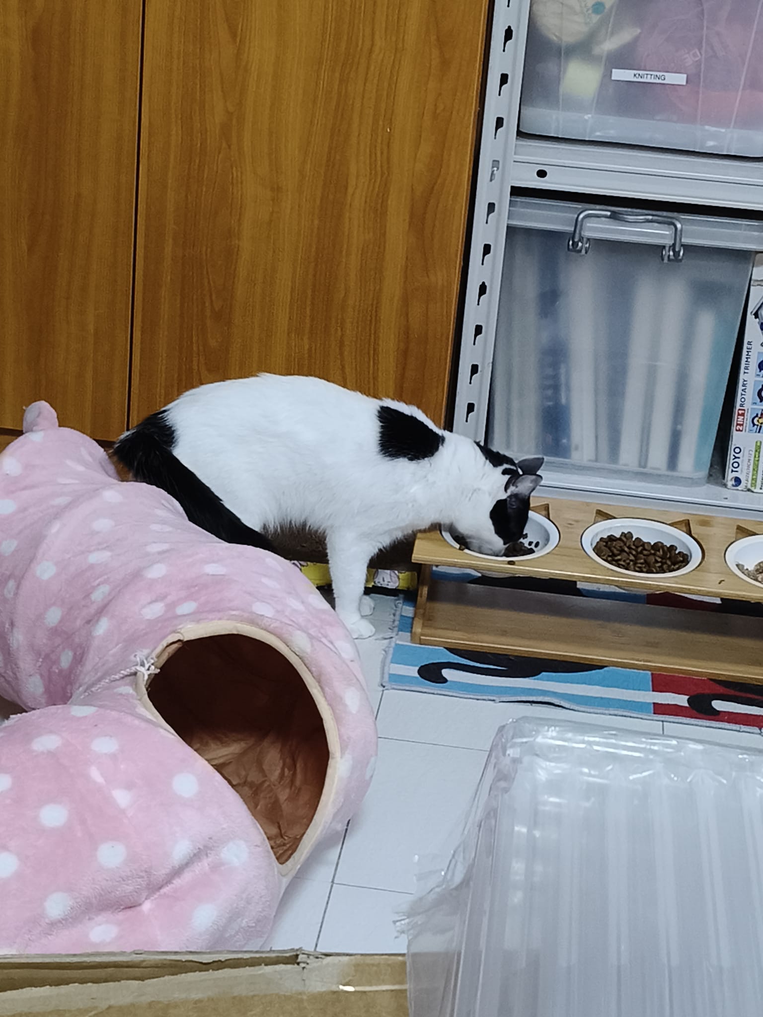 Morning: Serve food – got eat. Today i open door when I’m ard, aircon not on yet, all windows open to air the house. She went missing a few times when I sayang the other 3 and out of nowhere she reappear again.
