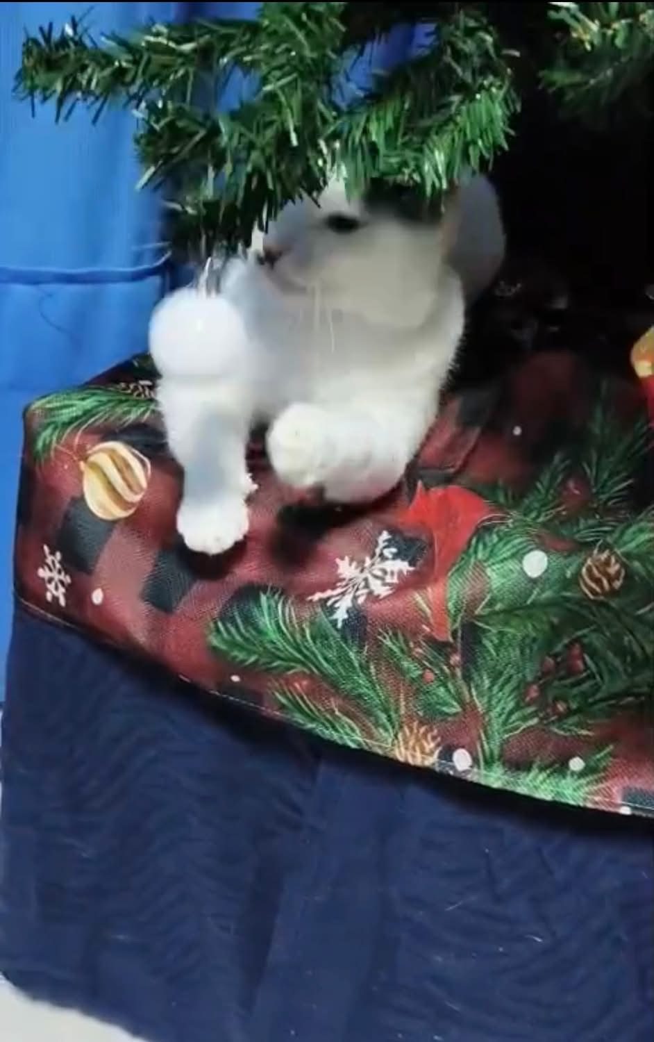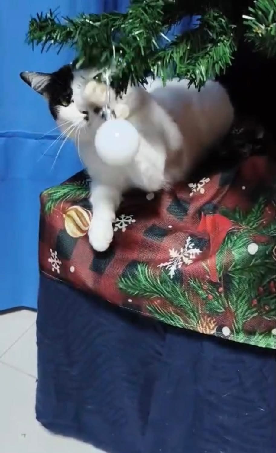 10.55pm: xmas tree is up n joy playing w the ping pong ball deco