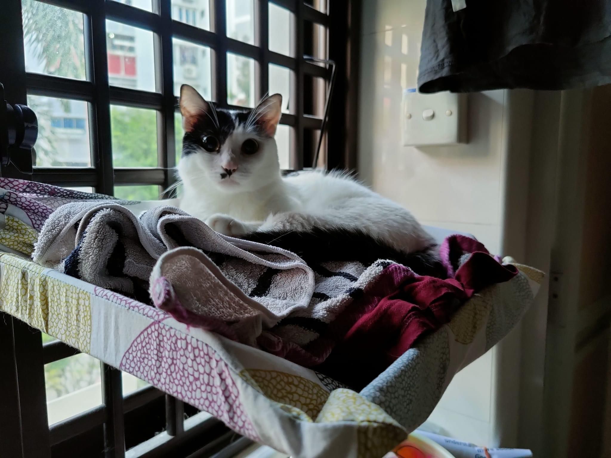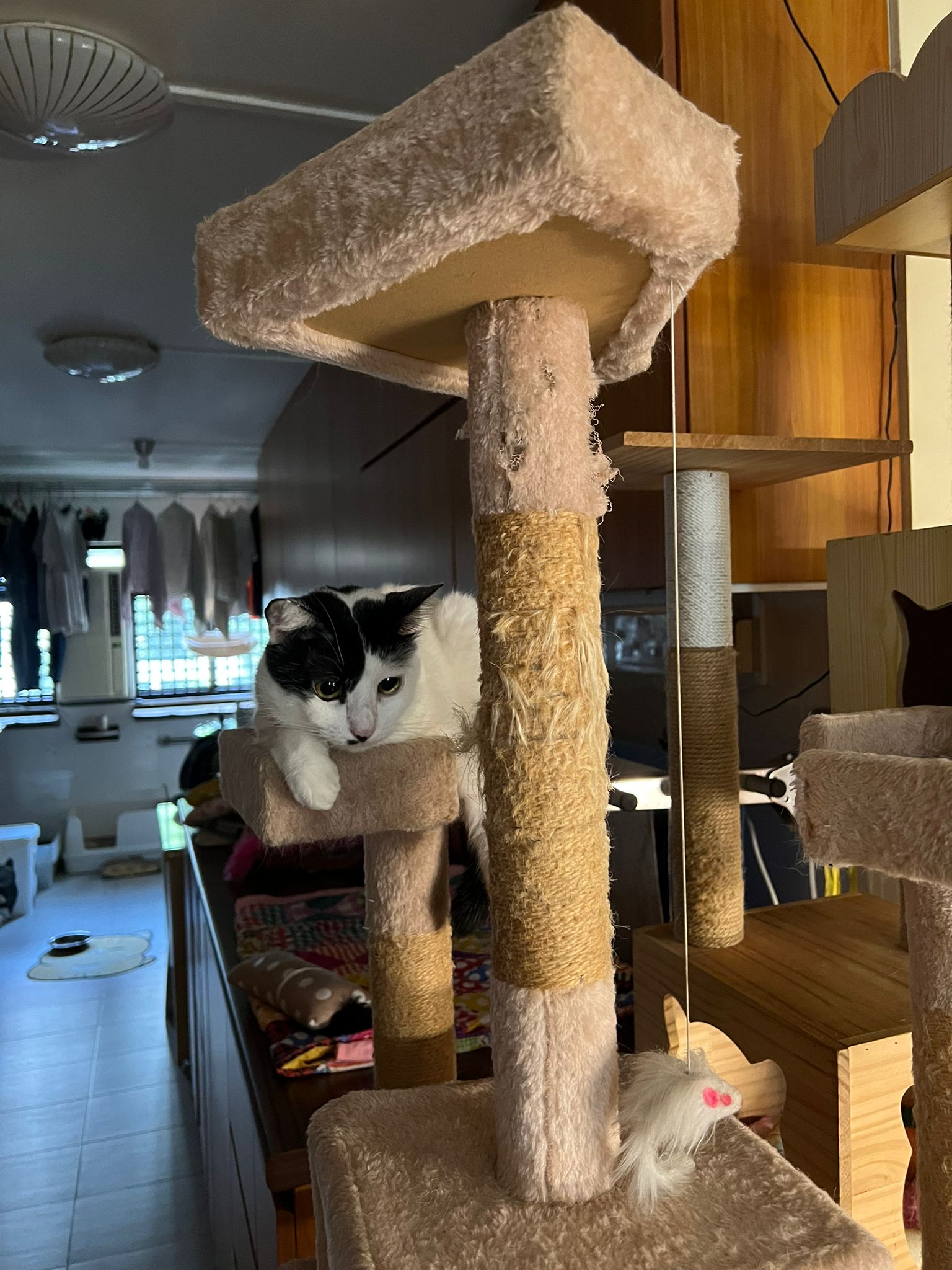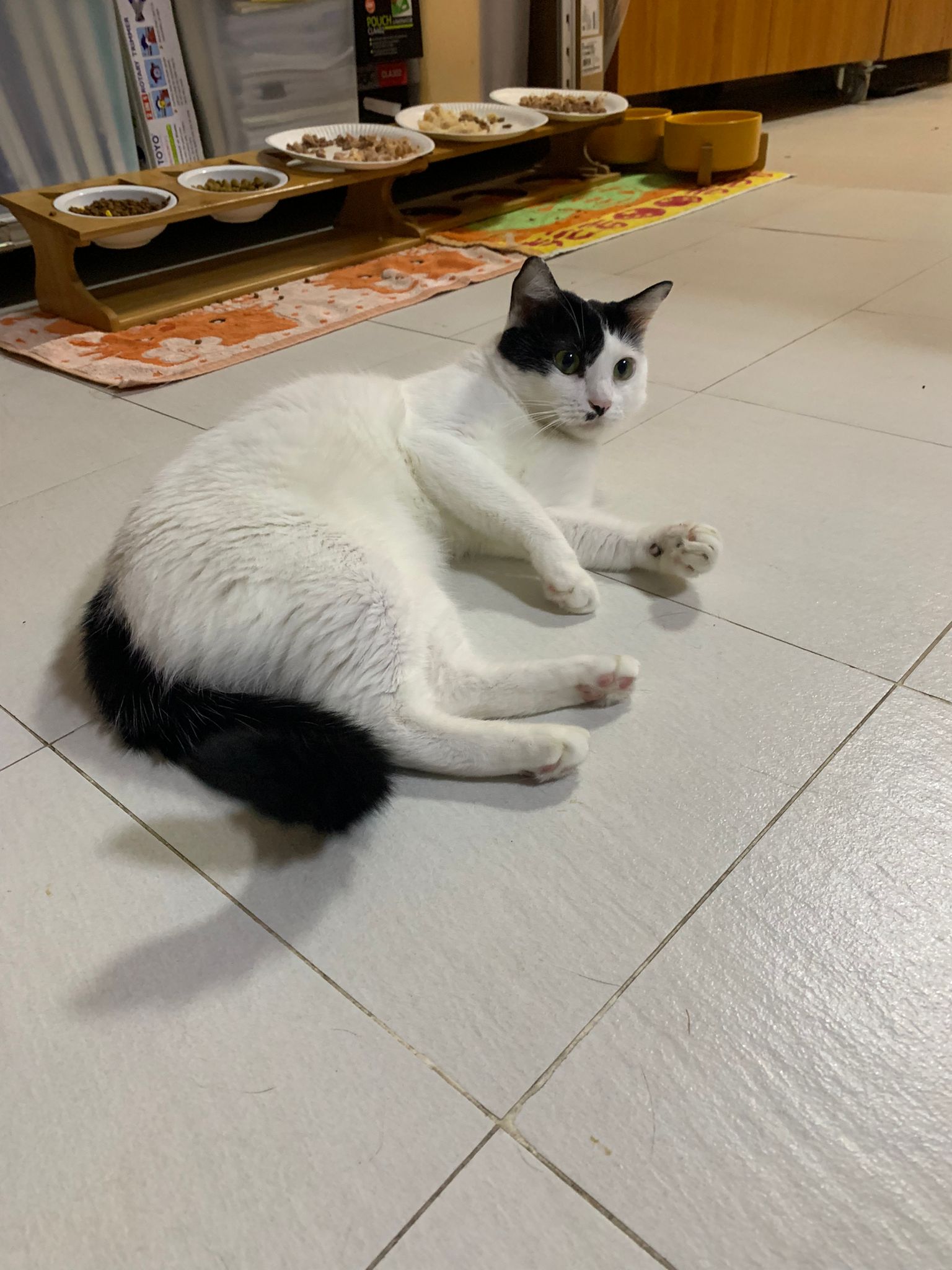 Morning: Serve food – got eat. Today i open door when I’m ard, aircon not on yet, all windows open to air the house. She went missing a few times when I sayang the other 3 and out of nowhere she reappear again.