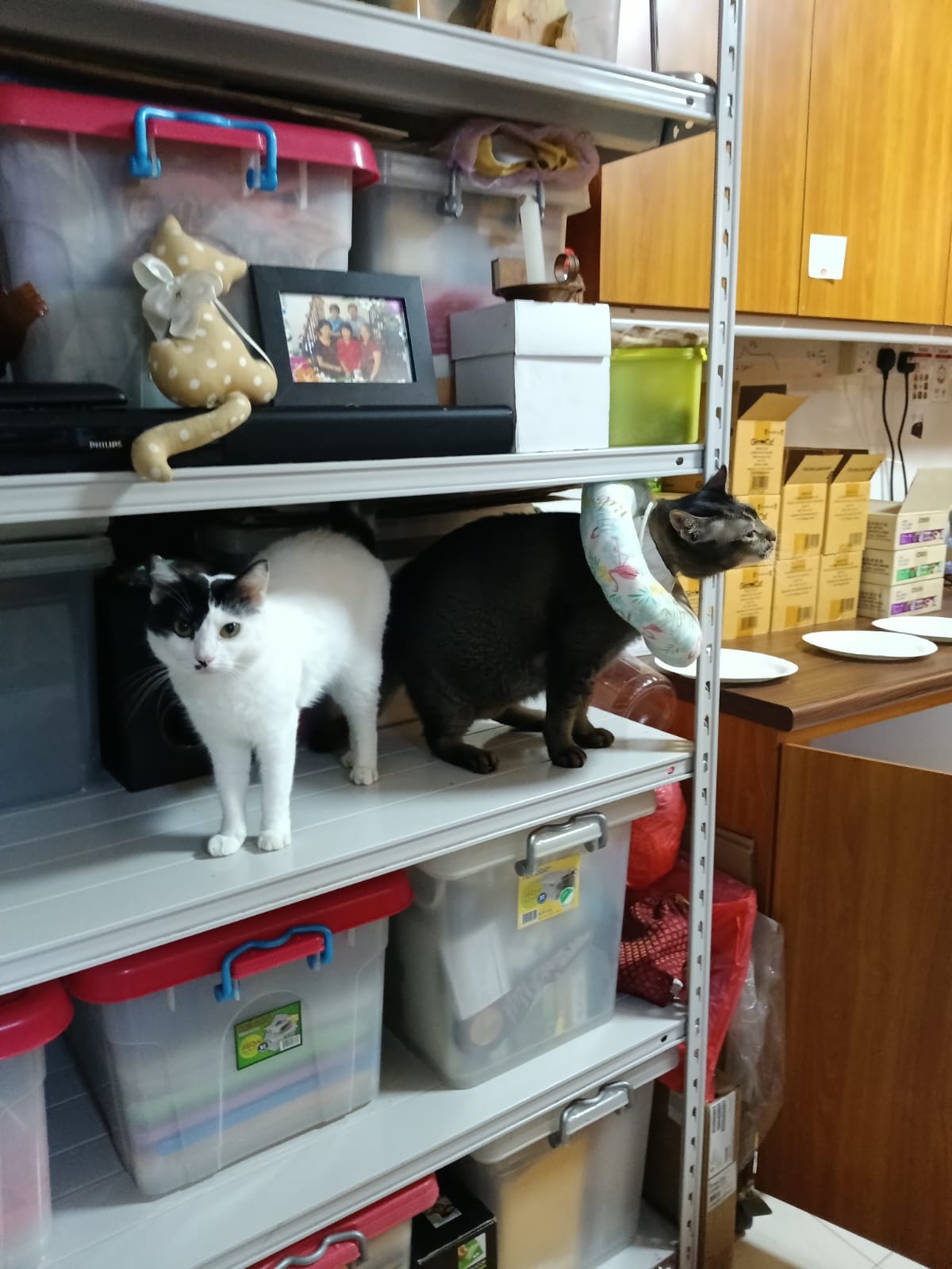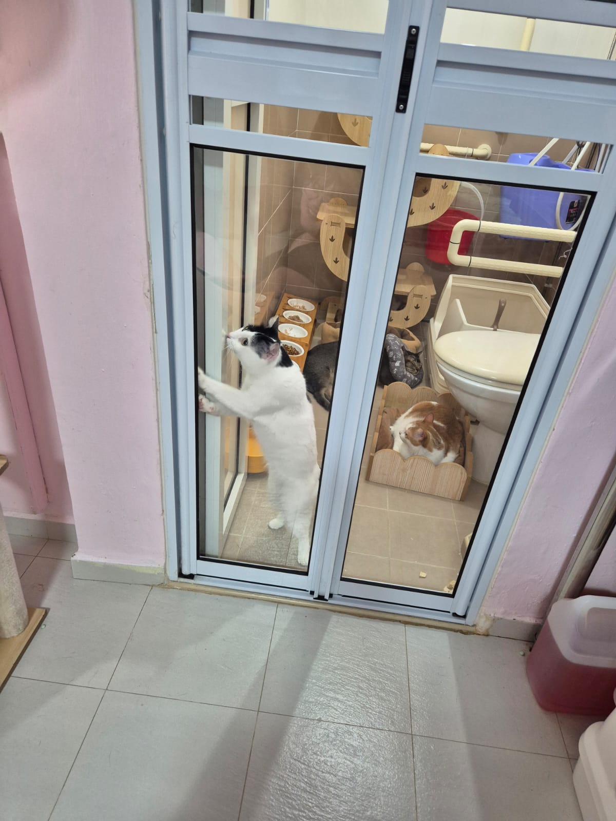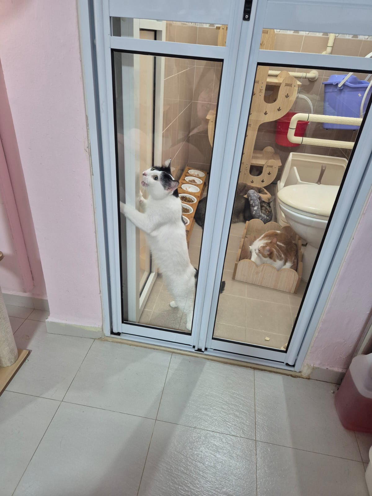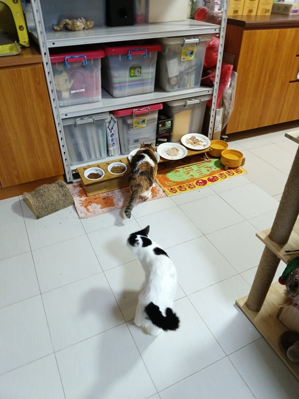 9.00am: I enter 猫房 and both joy and rufus right there. But they Waited for me to throw plates. Scoop poo n I go into 猫房 take new plates n they stare at me, so long then serve food.