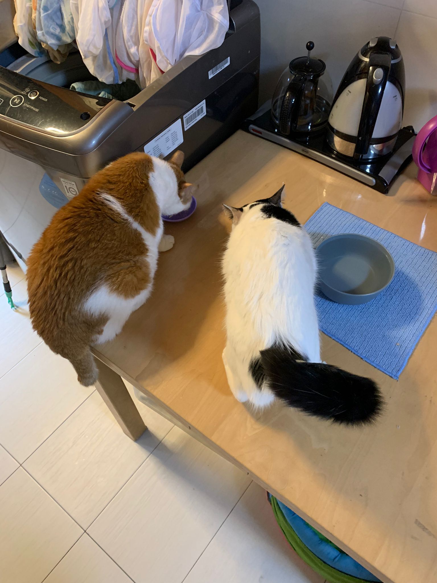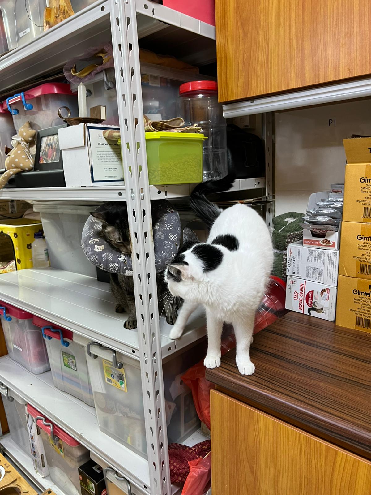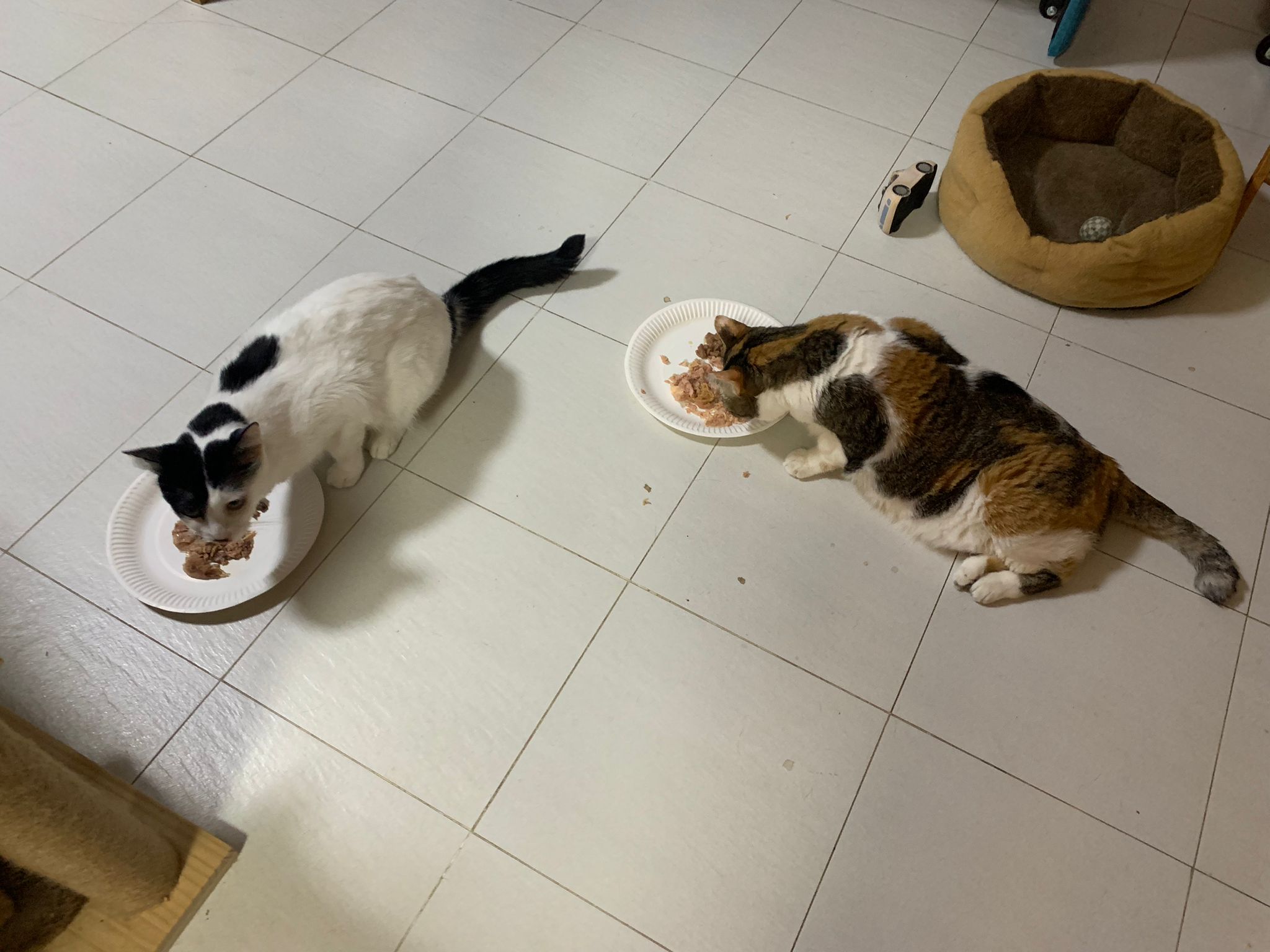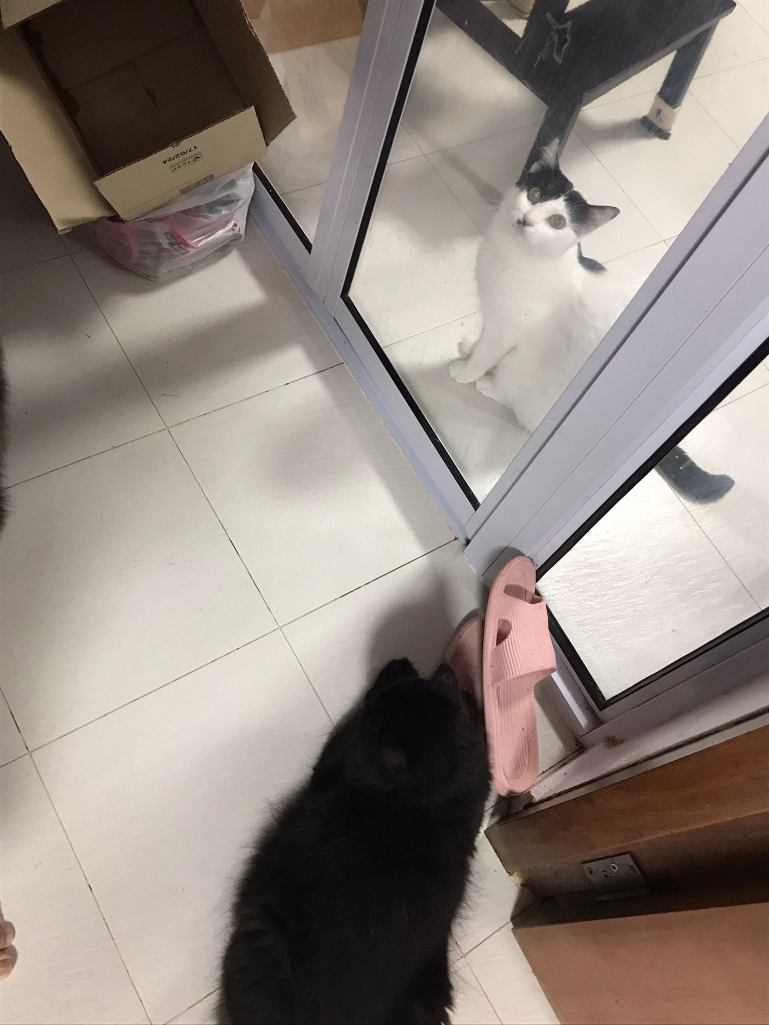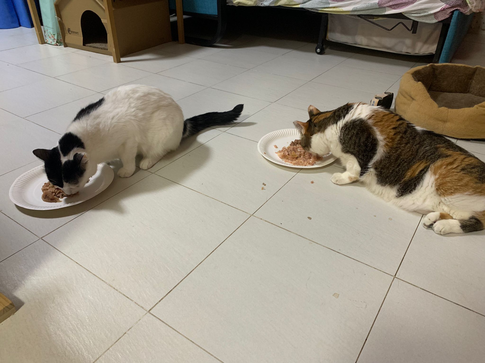 9.00am: I enter 猫房 and both joy and rufus right there. But they Waited for me to throw plates. Scoop poo n I go into 猫房 take new plates n they stare at me, so long then serve food.